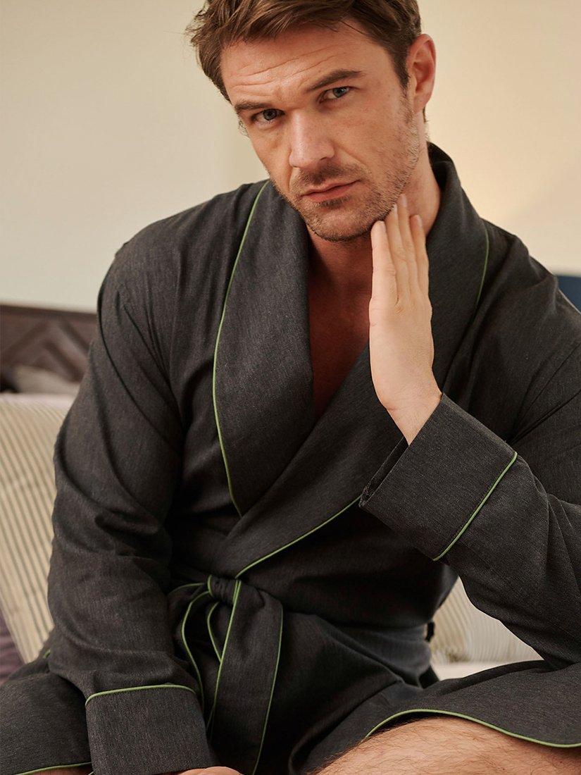 Designed with two pockets at the front, inside ties, a shawl collar and a belt tie, all with contrast-colour piping along the edges, it's a must-own for the discerning gent.