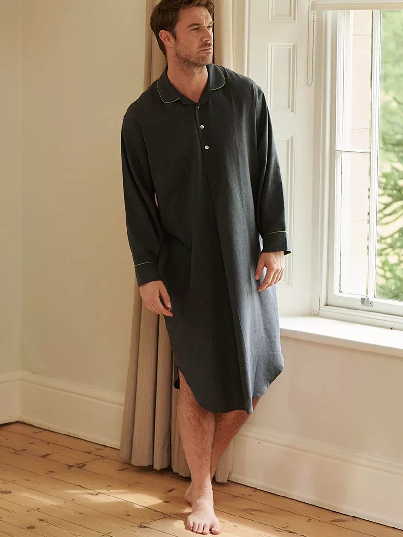 British BoxersHerringbone Cotton Twill Nightshirt, Slate