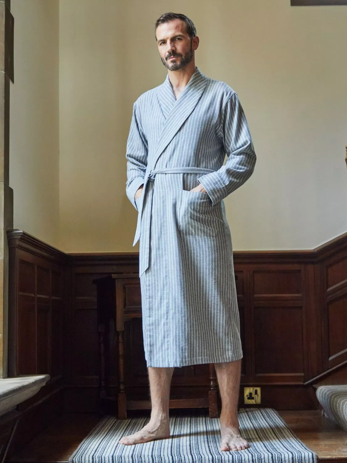 From leisurely mornings to cosy nights in, this exquisite dressing gown has you covered. It's crafted from the softest brushed cotton, which is woven to our exact specifications and the fibres brushed repeatedly for an utterly luxurious feel against the skin.