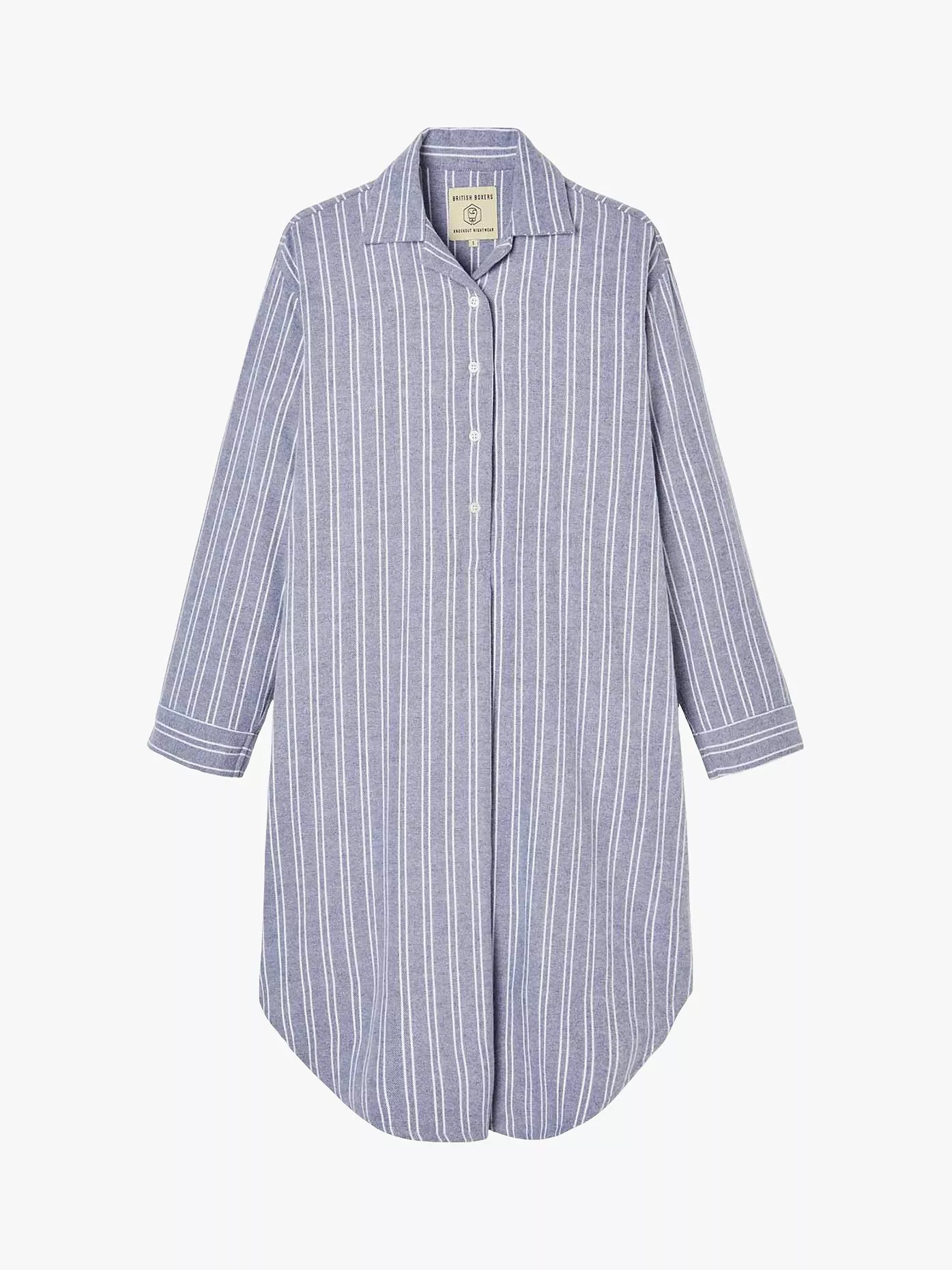 The British Boxers nightshirt is made from the softest brushed two-fold cotton flannel in the brand's smart Westwood stripe. It's the perfect garment for lounging all year round. The fabric is woven with care to the in-house design and the fibres are brushed repeatedly to feel wonderfully luxurious against the skin. It's the brushing process that creates the ultimate in soft cotton flannel.