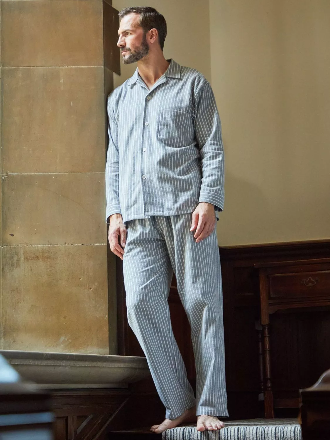 These stripe pyjamas are made from luxuriously soft brushed cotton - A.K.A., perfect apparel for lounging all year round, day or night.