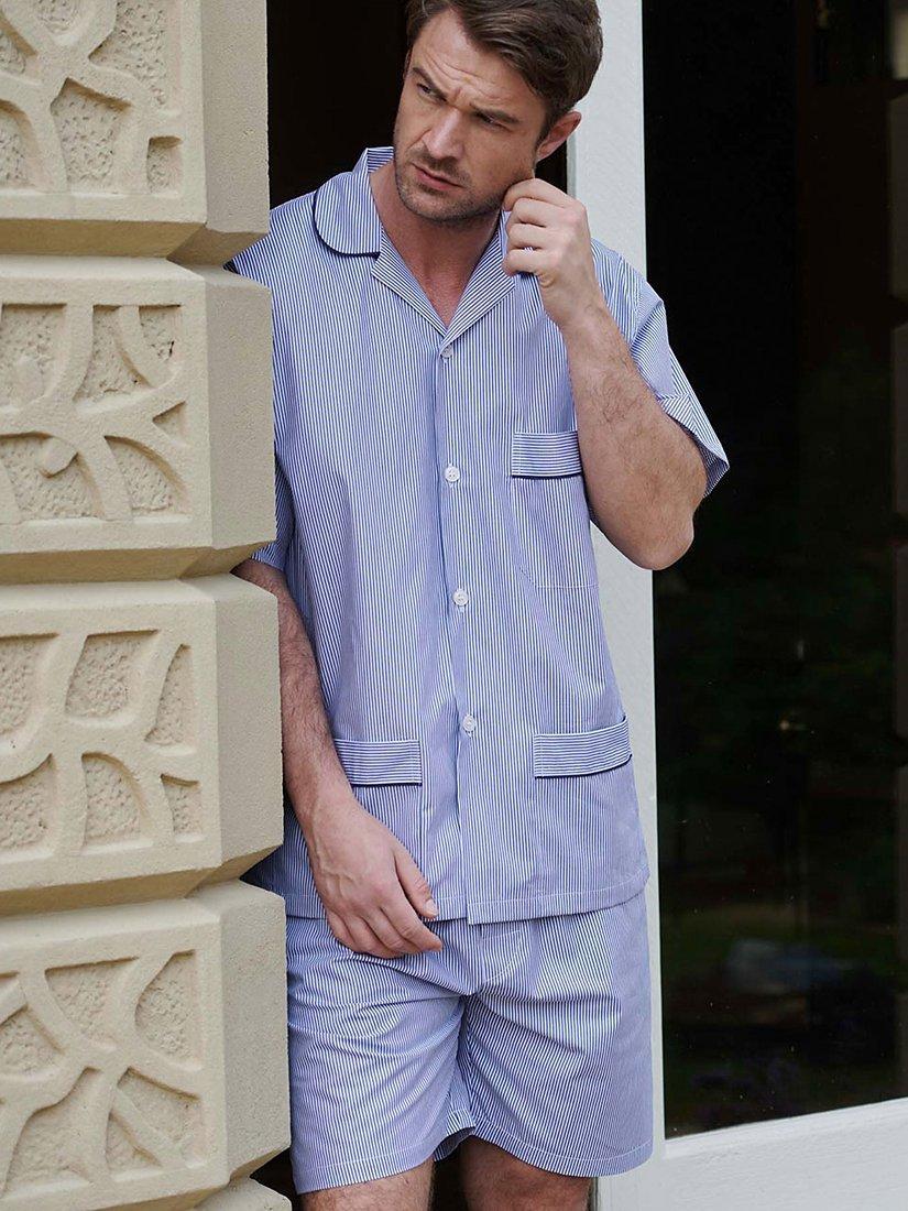 Keep your cool with this warm-weather pyjama set. Crafted from a smooth and breathable cotton, it's just the ticket for when you're travelling somewhere exotic, or simply relaxing at home in the summer months. Offered in a timelessly stylish design, the shirt is finished with elegant contrast-colour red piping and three pockets, while the shorts feature a soft elastic waist, back pockets and a self-fabric tie. 100% cotton. Shirt length: 30" (76cm). Machine washable to 40 degrees. Machine washable to 40 degrees.