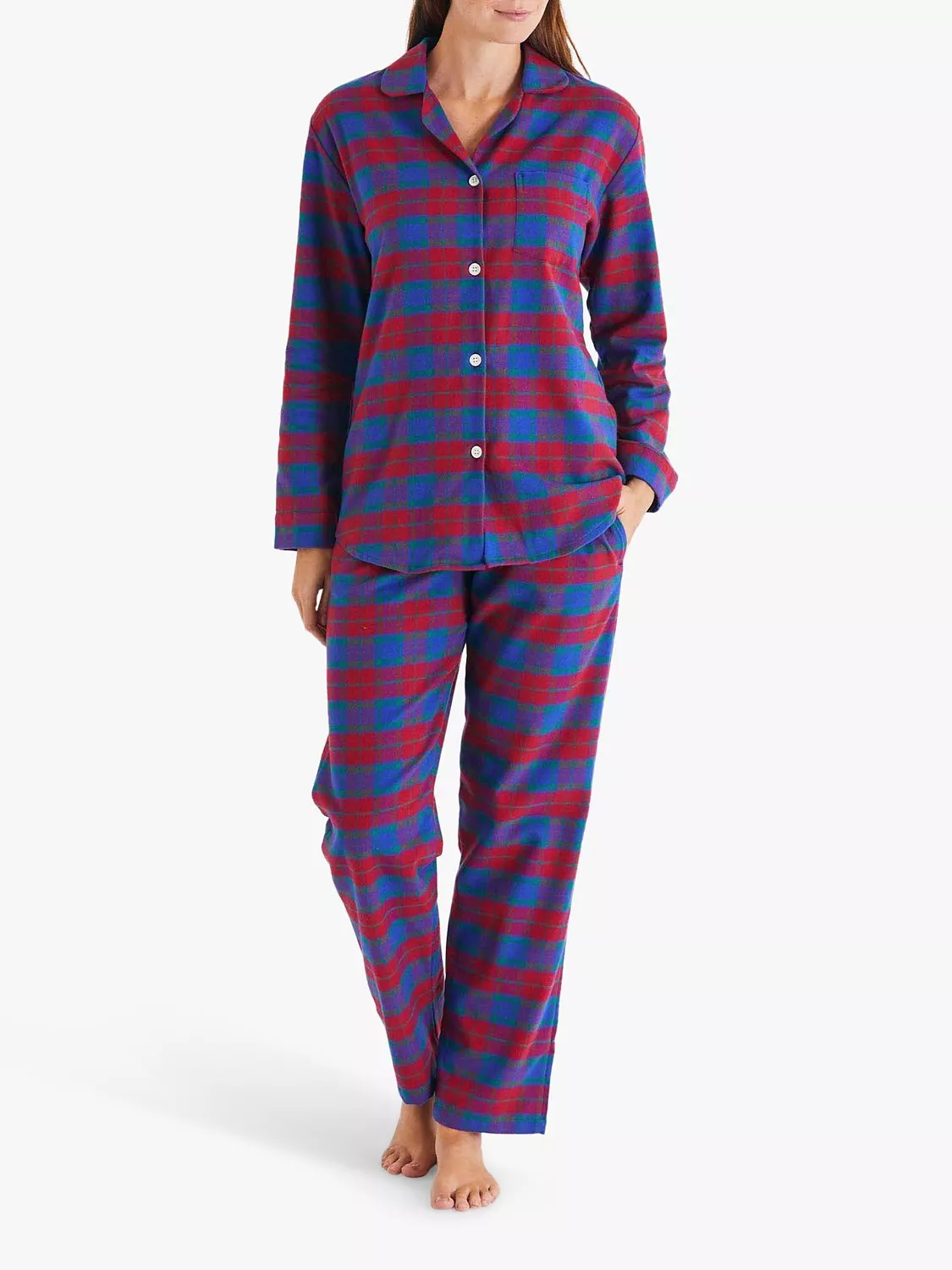 Made from brushed cotton for a super-soft and cosy handle, these British Boxers pyjamas are finished with a traditional jacket with a rounded collar and a handy breast pocket. Perfect for nighttime wear and lazy Sundays, the set is complete with matching trousers that boast a tie waist for optimum comfort and fit.