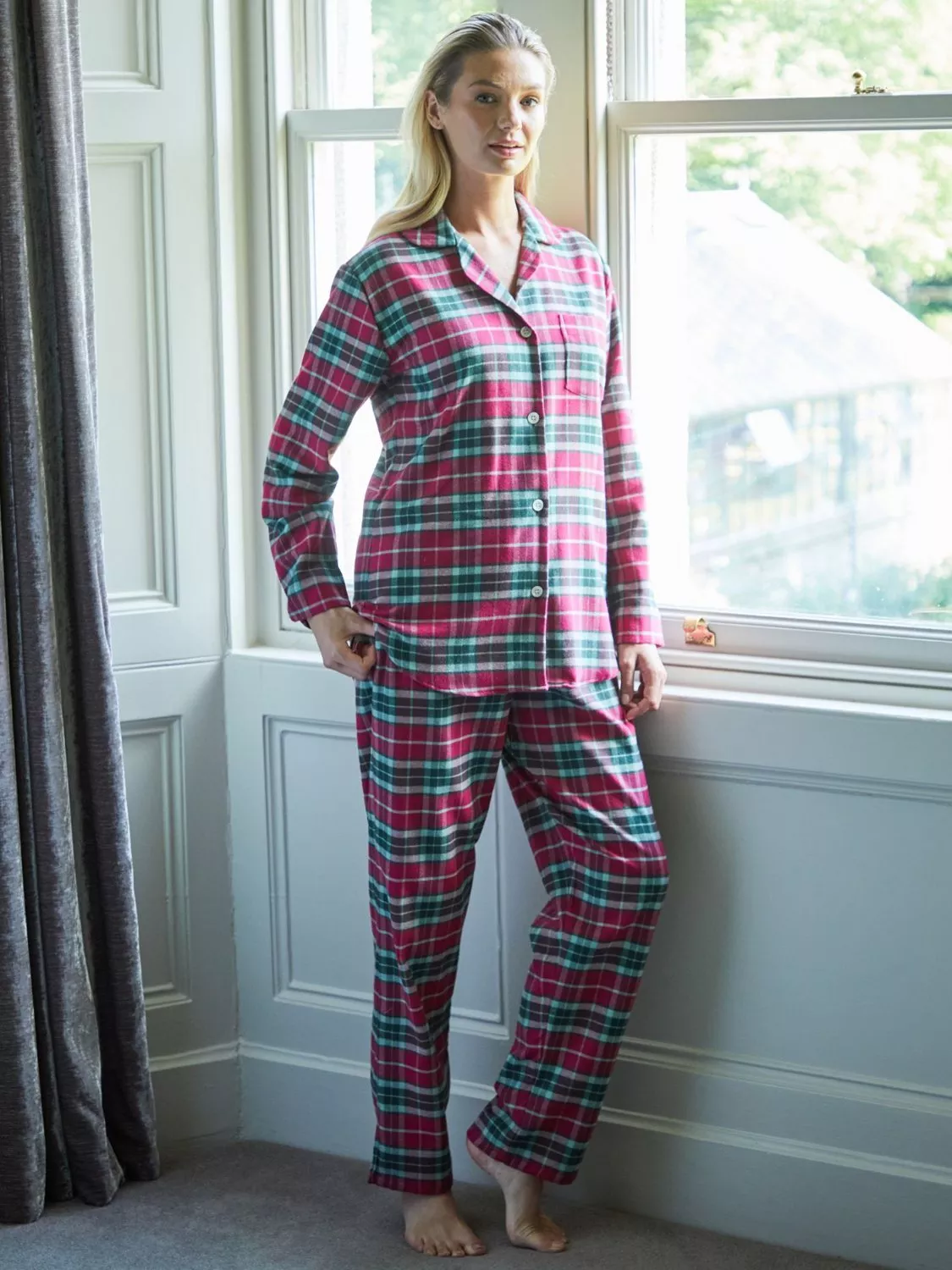 Made from brushed cotton for a super-soft and cosy handle, these British Boxers pyjamas are finished with a traditional jacket with a rounded collar and a handy breast pocket. Perfect for nighttime wear and lazy Sundays, the set is complete with matching trousers that boast a tie waist for optimum comfort and fit.