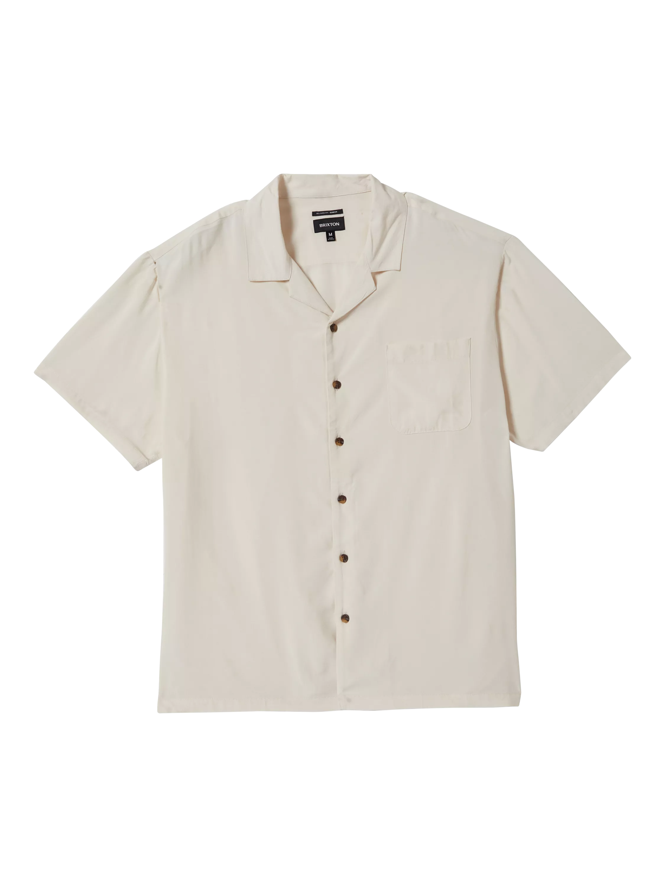 The Bunker is a short-sleeve button-up woven in a breathable linen blend. It has a relaxed fit, straight hem and side vents for mobility. A casual camp collar makes this piece ideal for sitting, sipping and staycations.