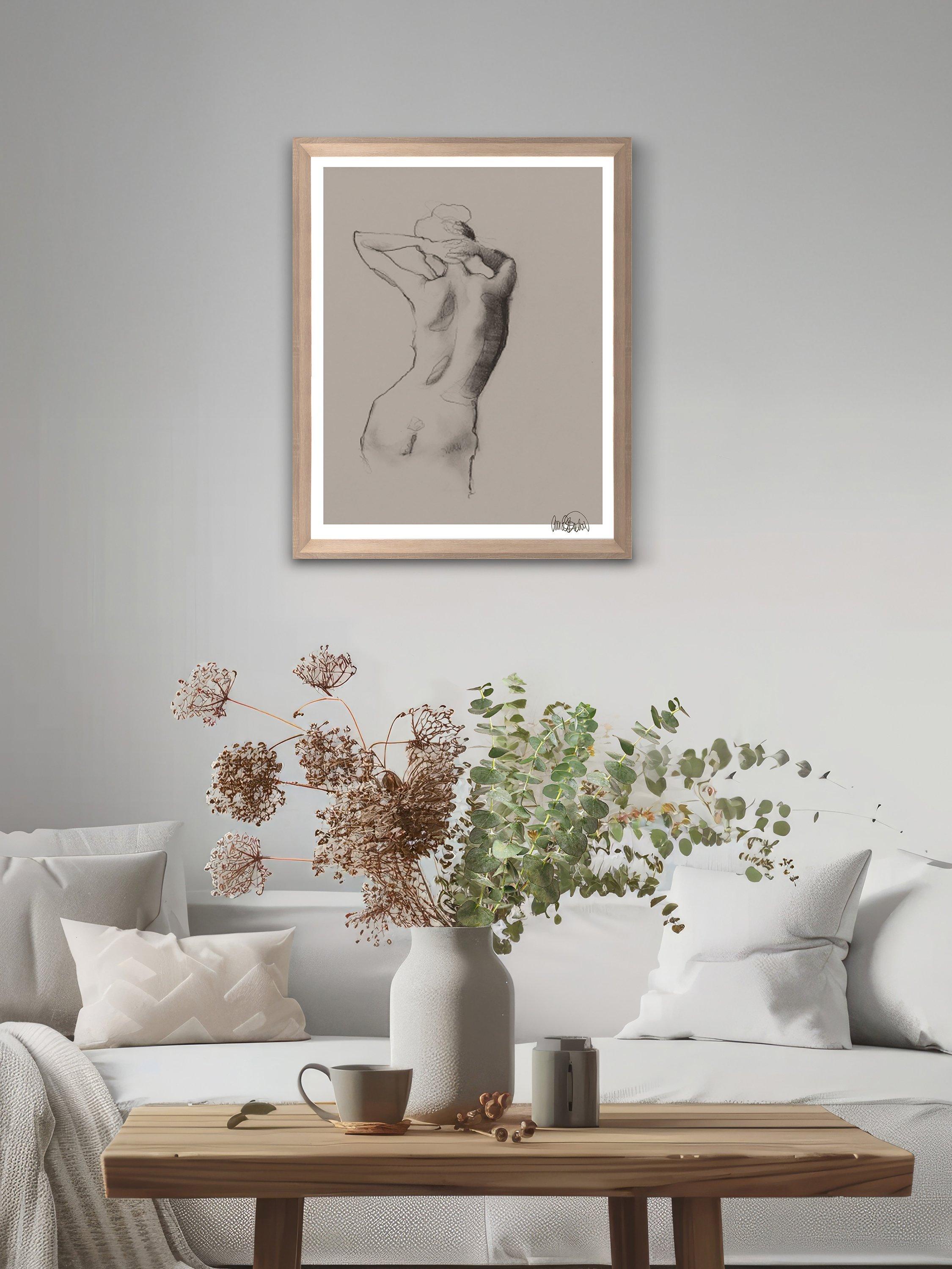 A contemporary figurative limited edition print, on 250GSM high-quality matt paper, numbered and exclusively hand-signed by artist Anna Bulow. Made in the UK and displayed within a 2600-micron thickness mountboard and complete in a modern natural wood aesthetic frame and float glass front. Ready to hang on your wall.