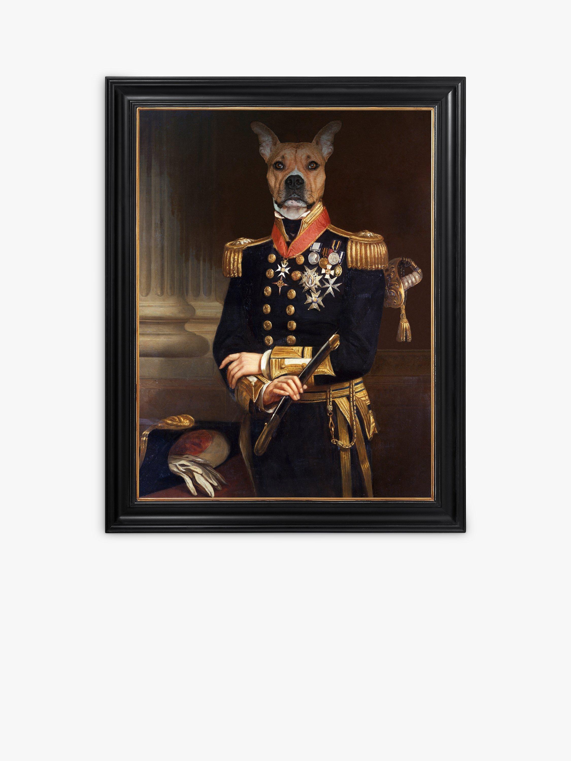 An aristocratic, military-style portrait takes a whimsical turn with this intriguing canvas and its characterful canine subject, Bernard.