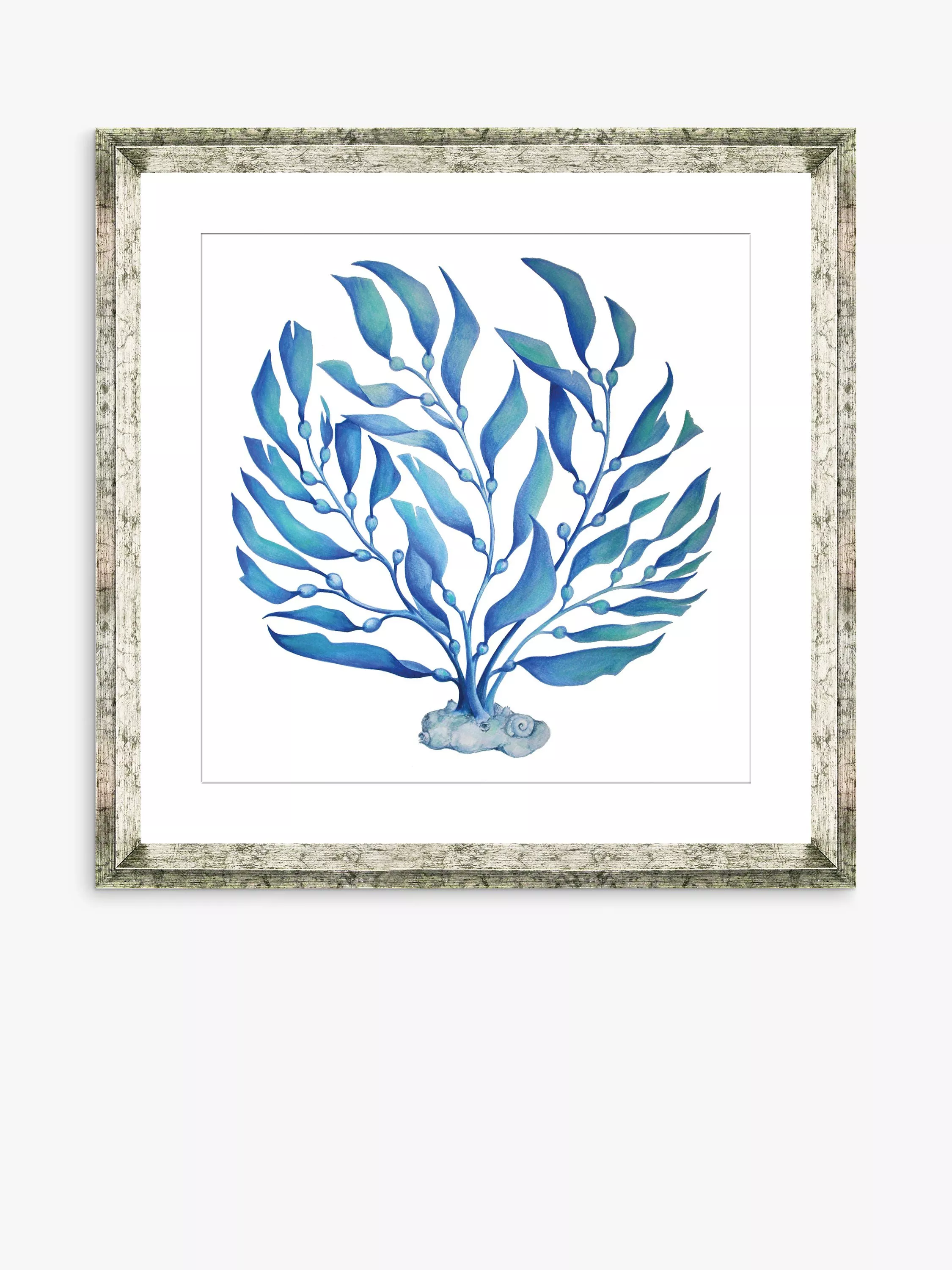 Brookpace Lascelles'Blue Seaweed 2' Framed Print & Mount, 46 x 46cm, Blue