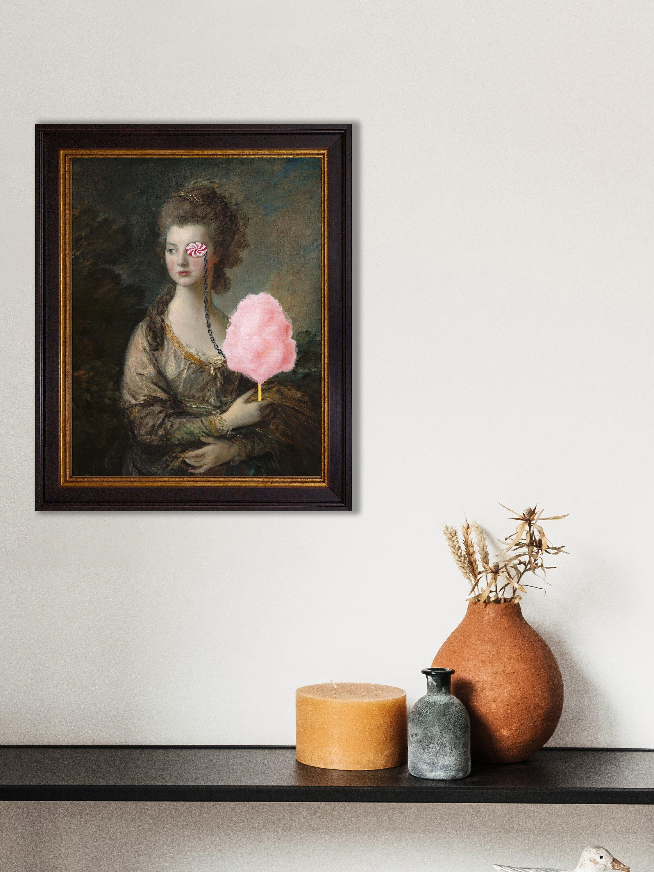 A fun oleograph of 'Candy Floss Lady', capturing all the character, craquelure and texture of an original. Each oleograph is a 'masterpiece' in its own right and carefully hand-finished to recreate that timeless look and appeal. Made in the UK and printed on museum-quality 340GSM cotton canvas with a traditional stepped frame, ready to hang on your wall.