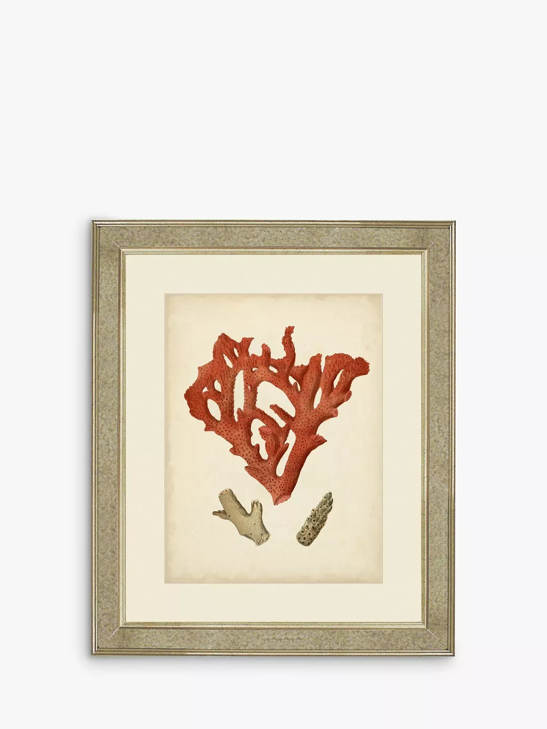 A vintage-style book print illustration of red coral. Presented with a mount and framed in an antiqued mirror glass frame.