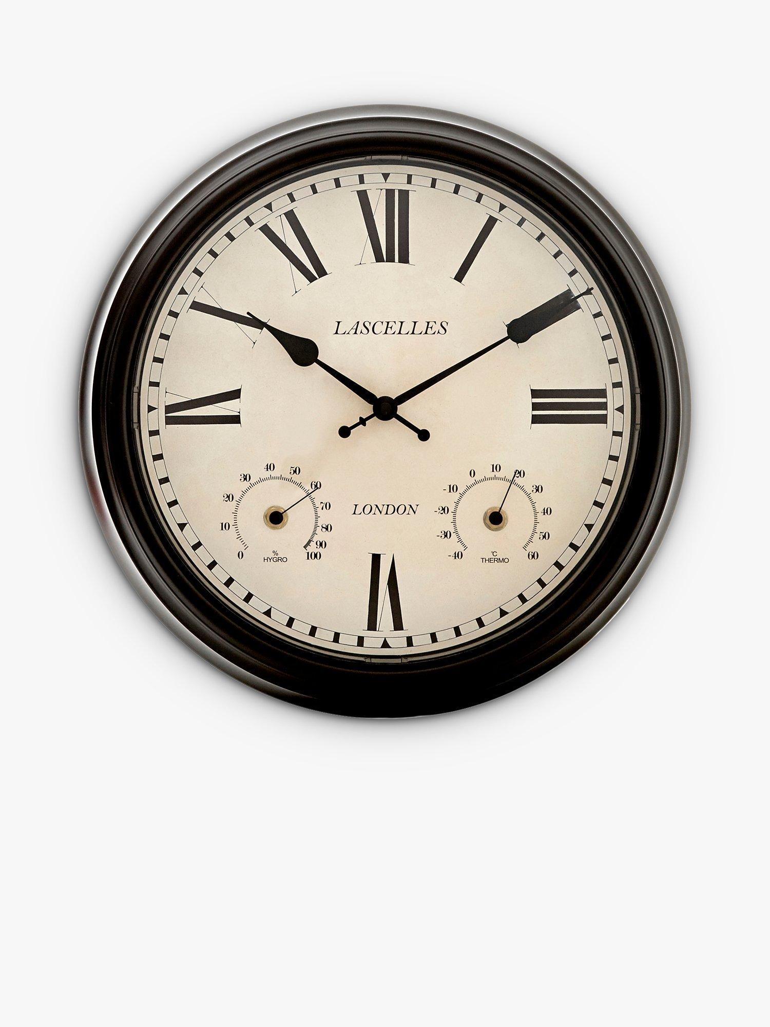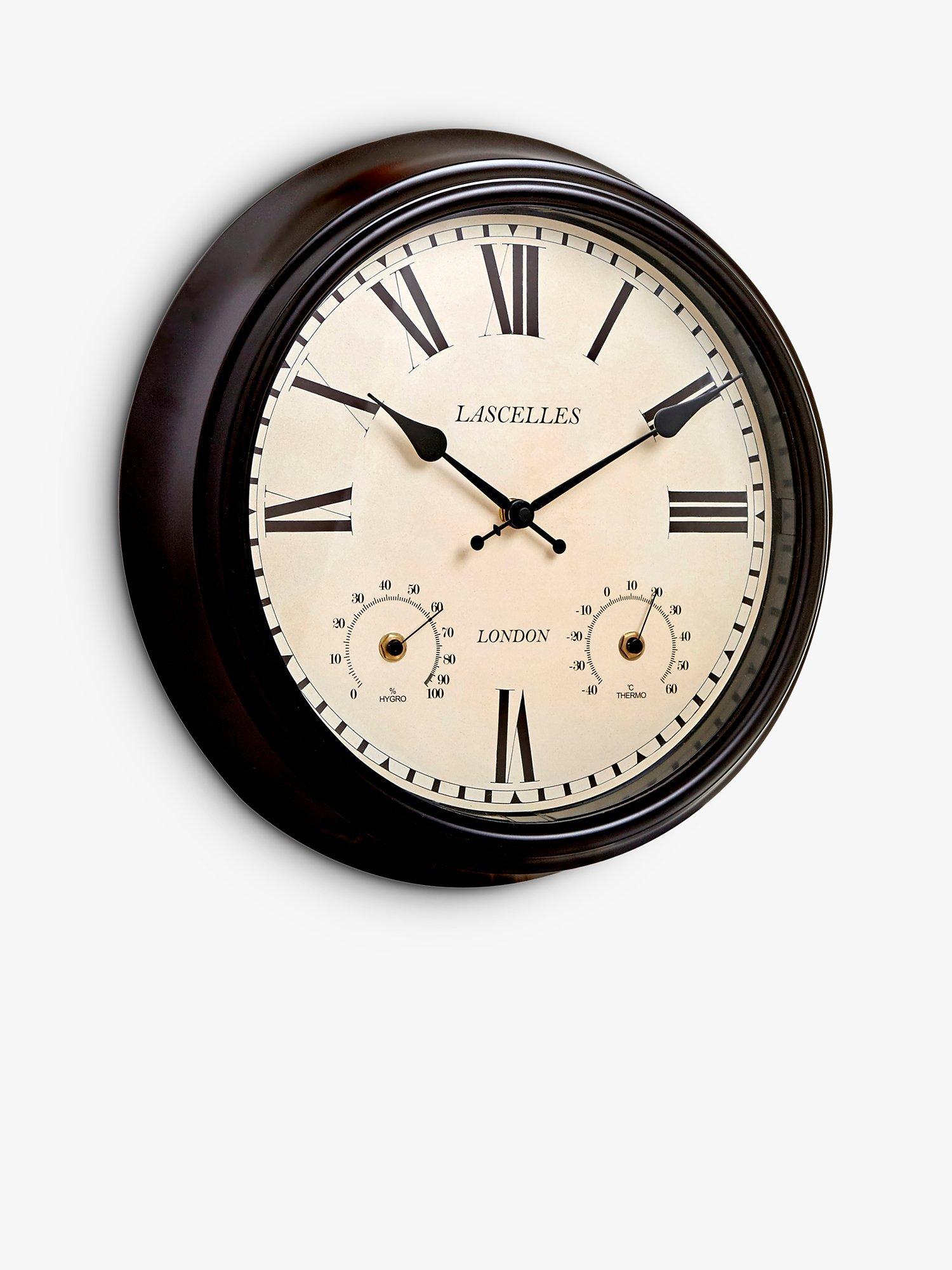 LascellesBrookpace Lascelles Roman Numeral Outdoor Wall Clock with Temperature & Humidity, 36cm, Brown