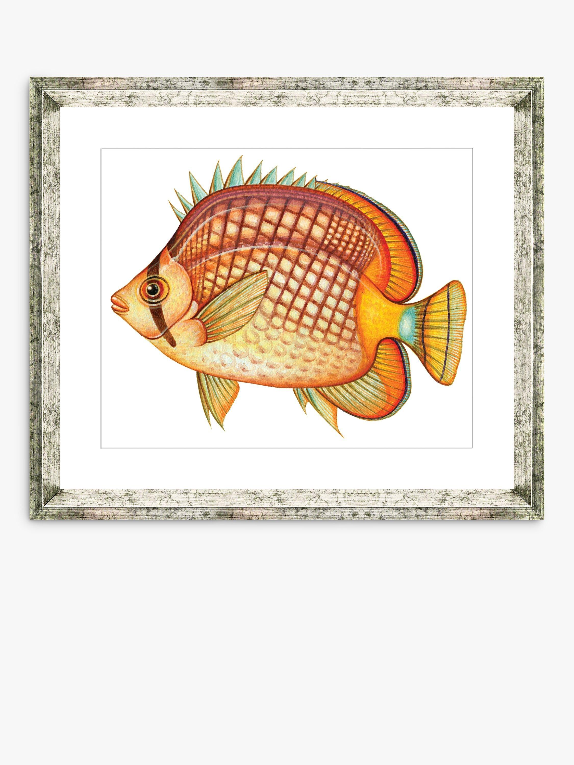 A vintage-style book print illustration of a tropical fish. Framed and printed in the UK on 250gsm satin photo paper, this glazed print is presented in a window mount with an antiqued wood-effect frame, ready to hang on your wall.