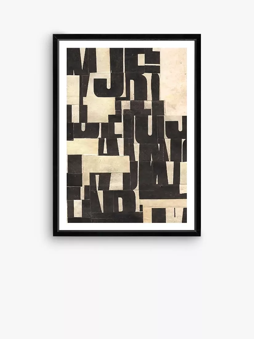An abstract typographic print, Type 1 is framed and printed in the UK on 250gsm satin photo paper. This glazed print is presented in a window mount and is ready to hang on your wall. Try pairing it with the print Type 2.