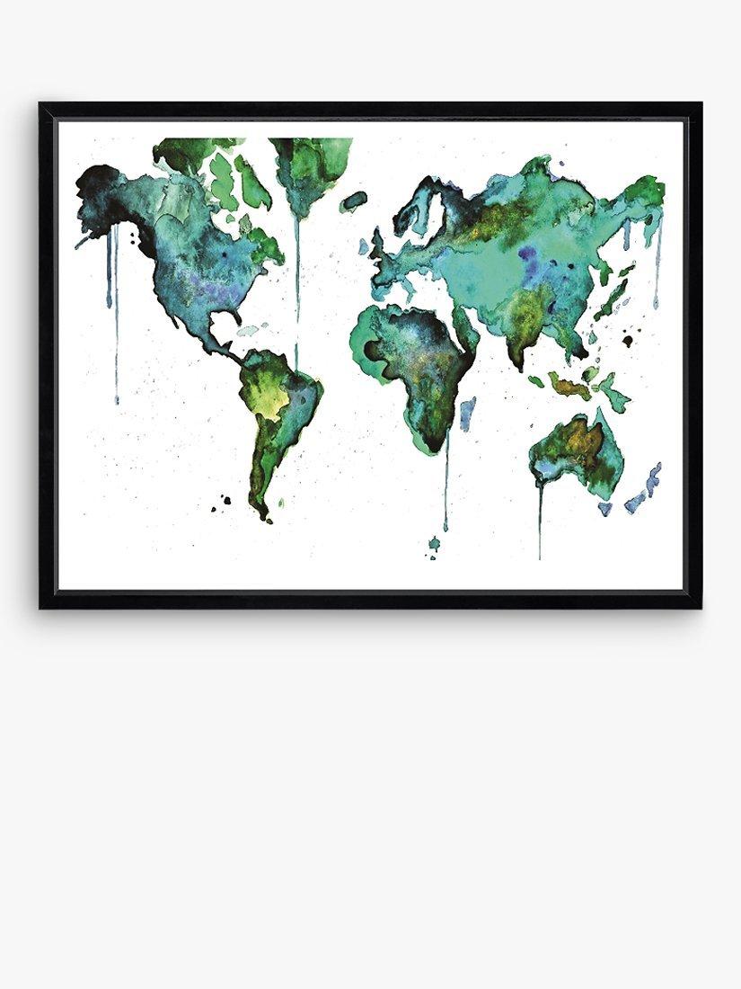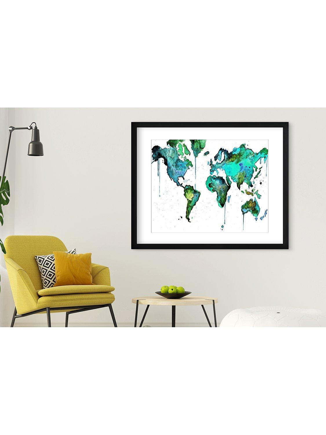 Brookpace Lascelles'World' Abstract Map Framed Print & Mount, 81 x 101.5cm, Green/Blue
