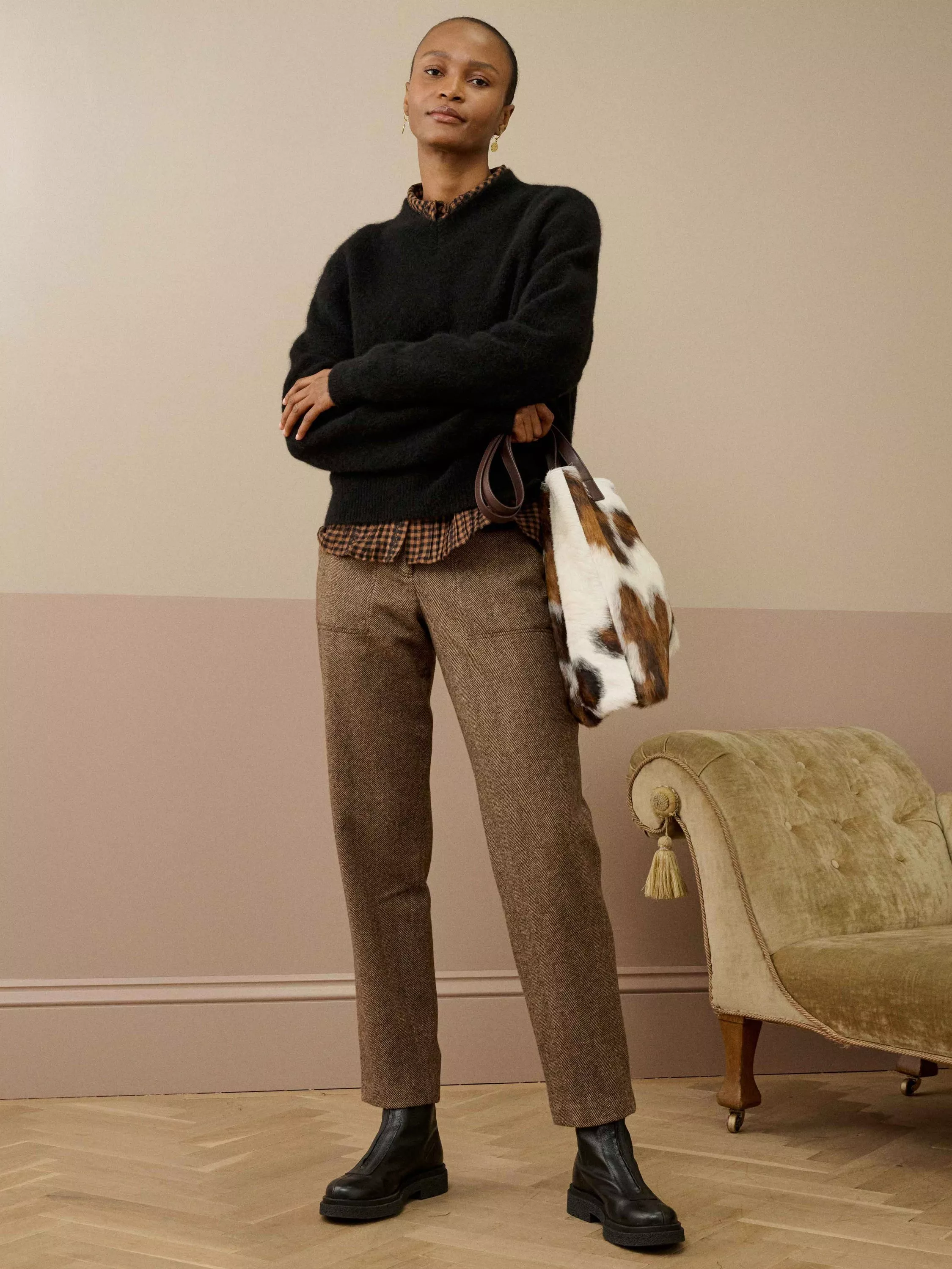 This charming jumper is expertly knitted in Europe from the finest alpaca-merino wool blend and is available in timeless, monochromatic shades. Featuring textural rib trims and a flattering v-neckline that's perfect for layering.
