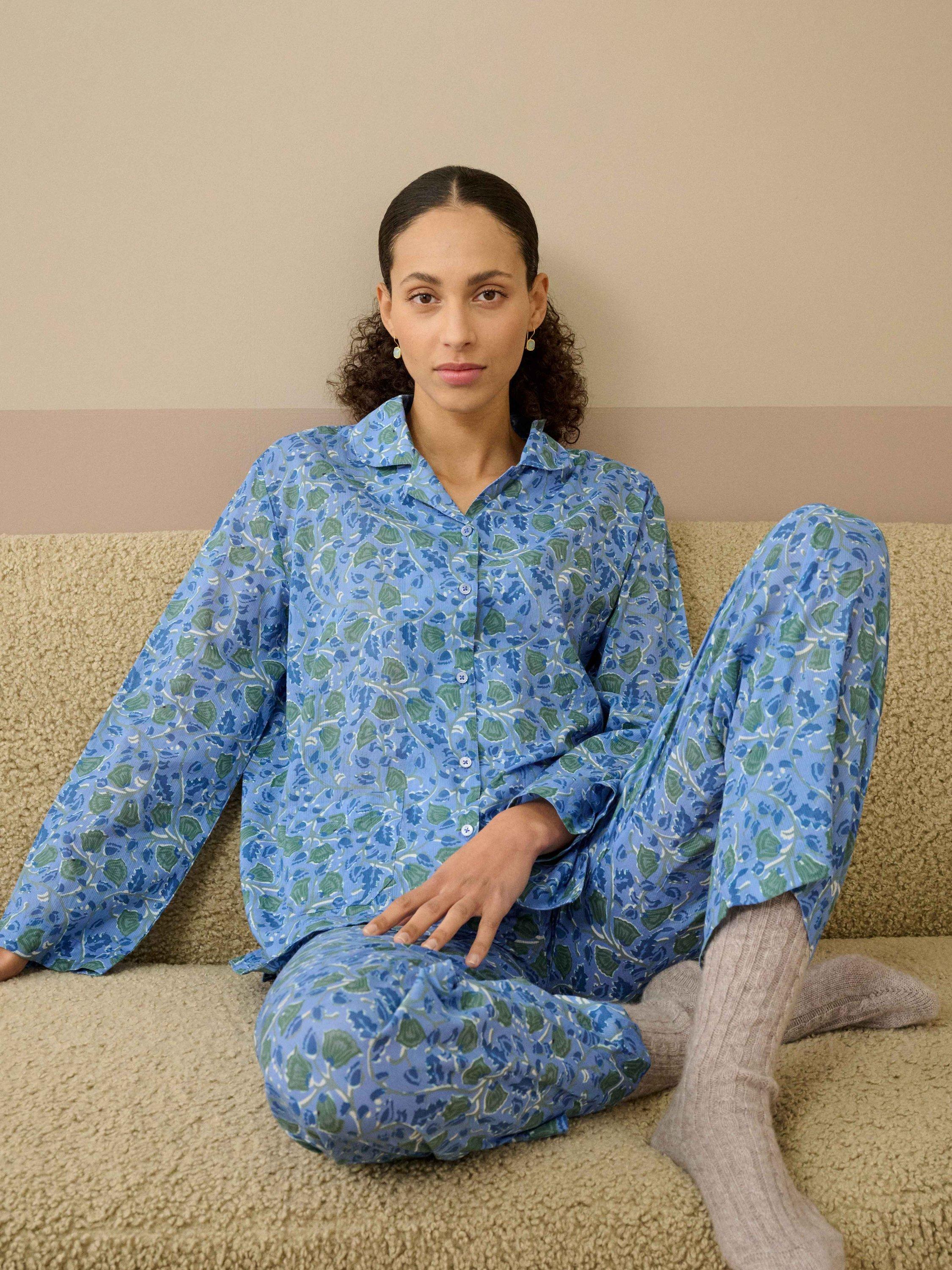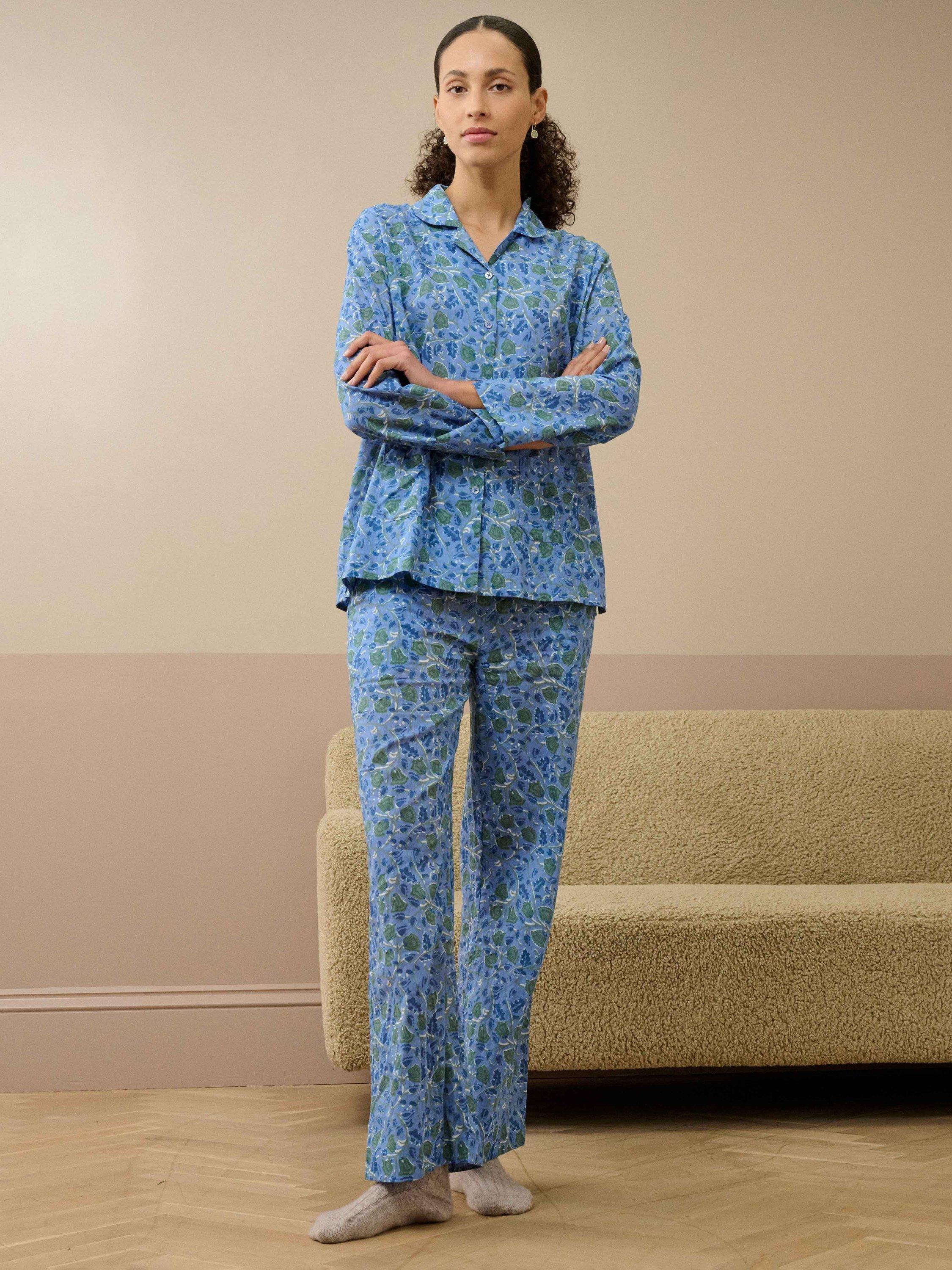These Botanical Print Pyjamas, made from soft, breathable cotton for the dreamiest night's sleep, feature cut-out notches on the cuffs, side splits, patch pockets, a rounded collar and an elasticated drawstring waist.