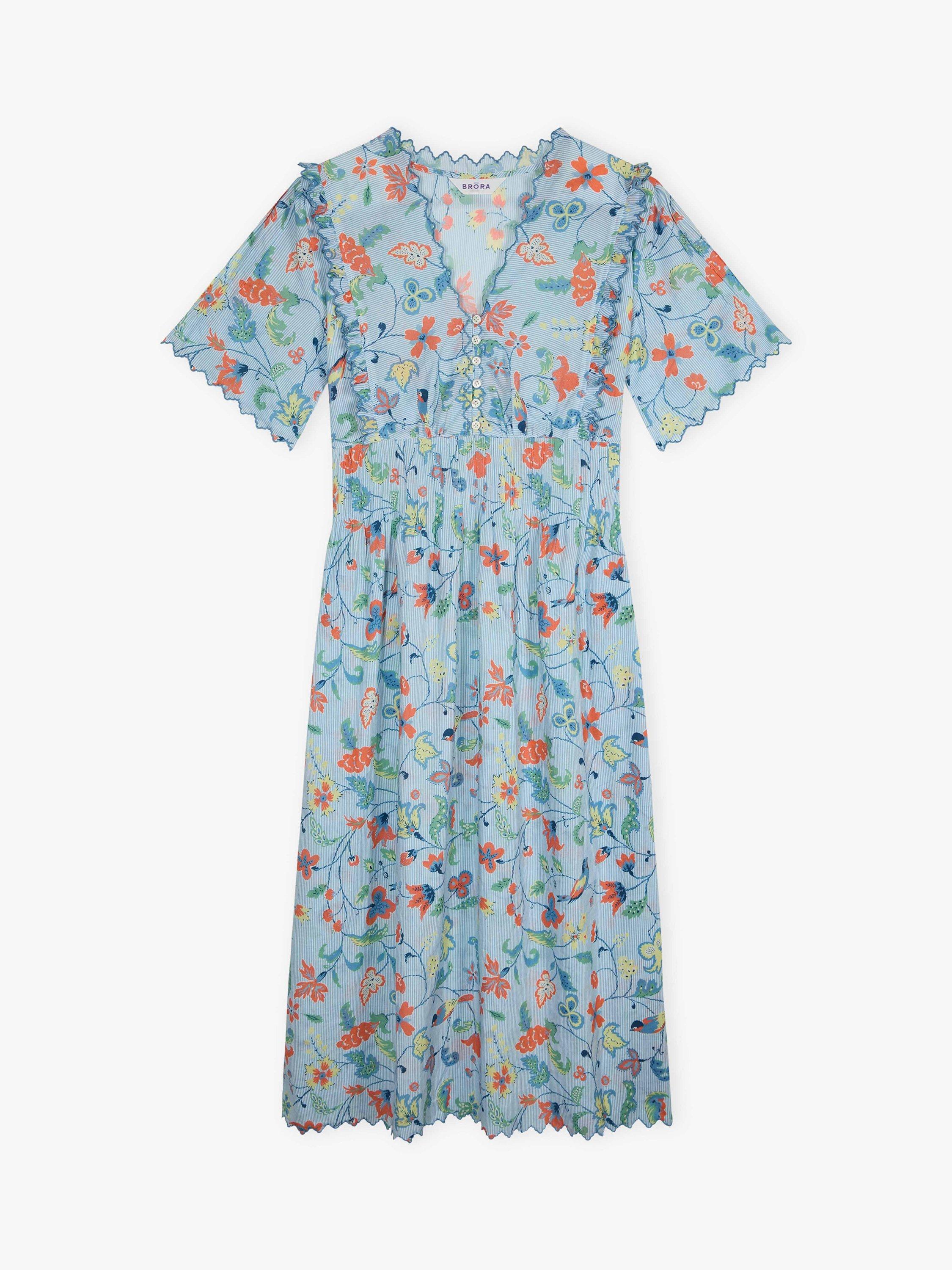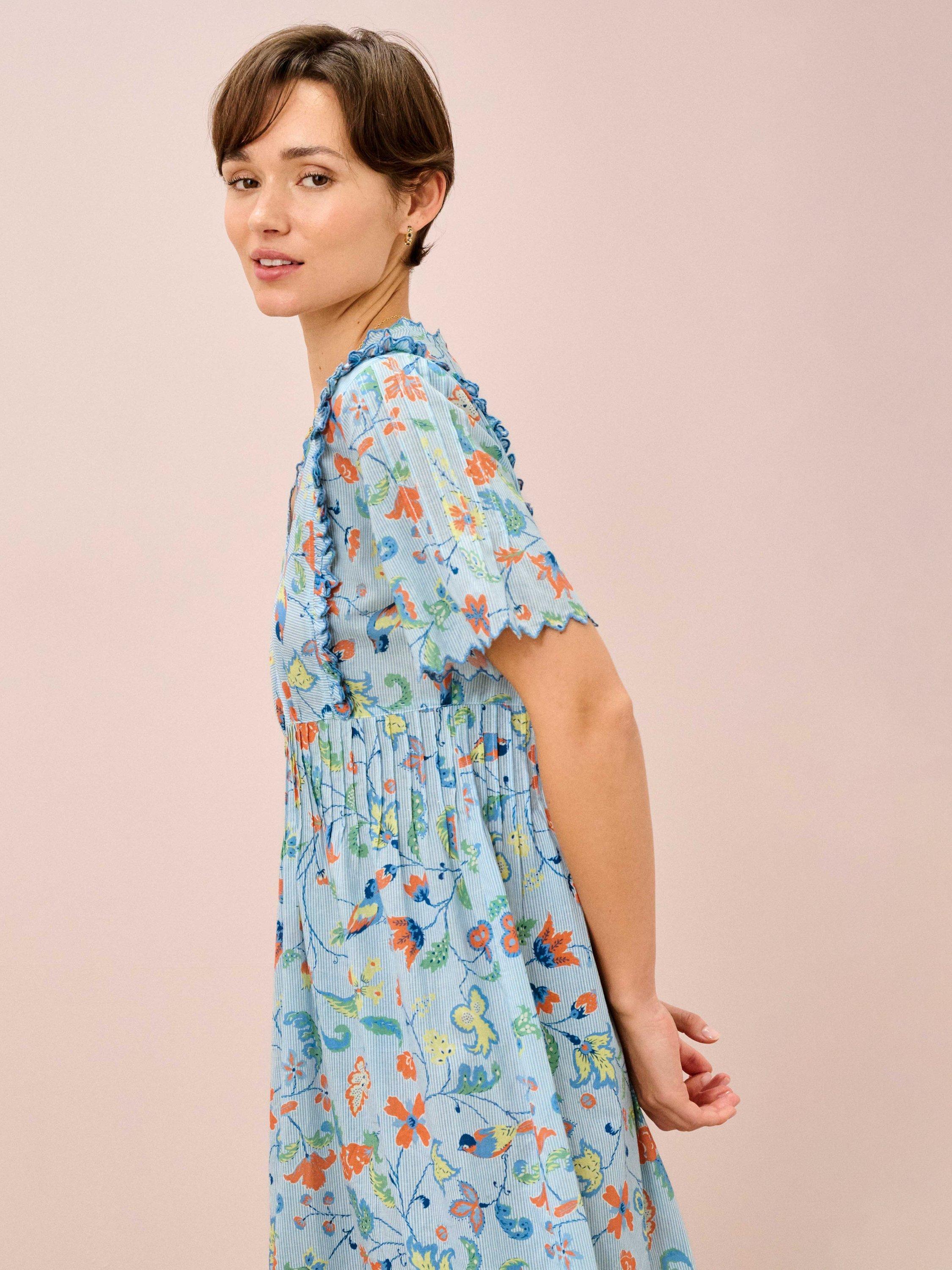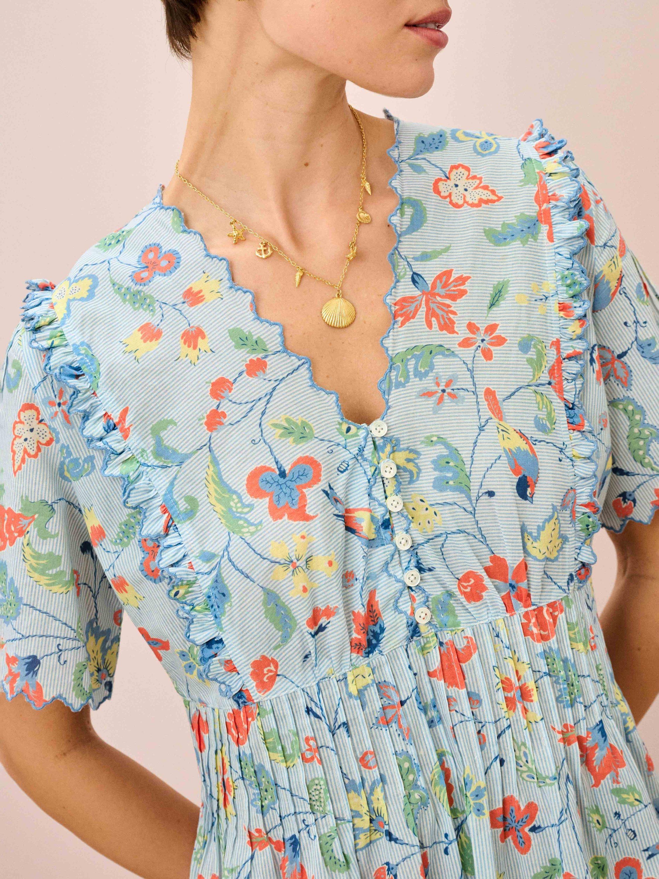 Made from breathable cotton, the mood-boosting Botanical Print Nighty features a scalloped V-neckline with buttons to the waist, intricately stitched pintucks and broderie anglaise frill details to finish.