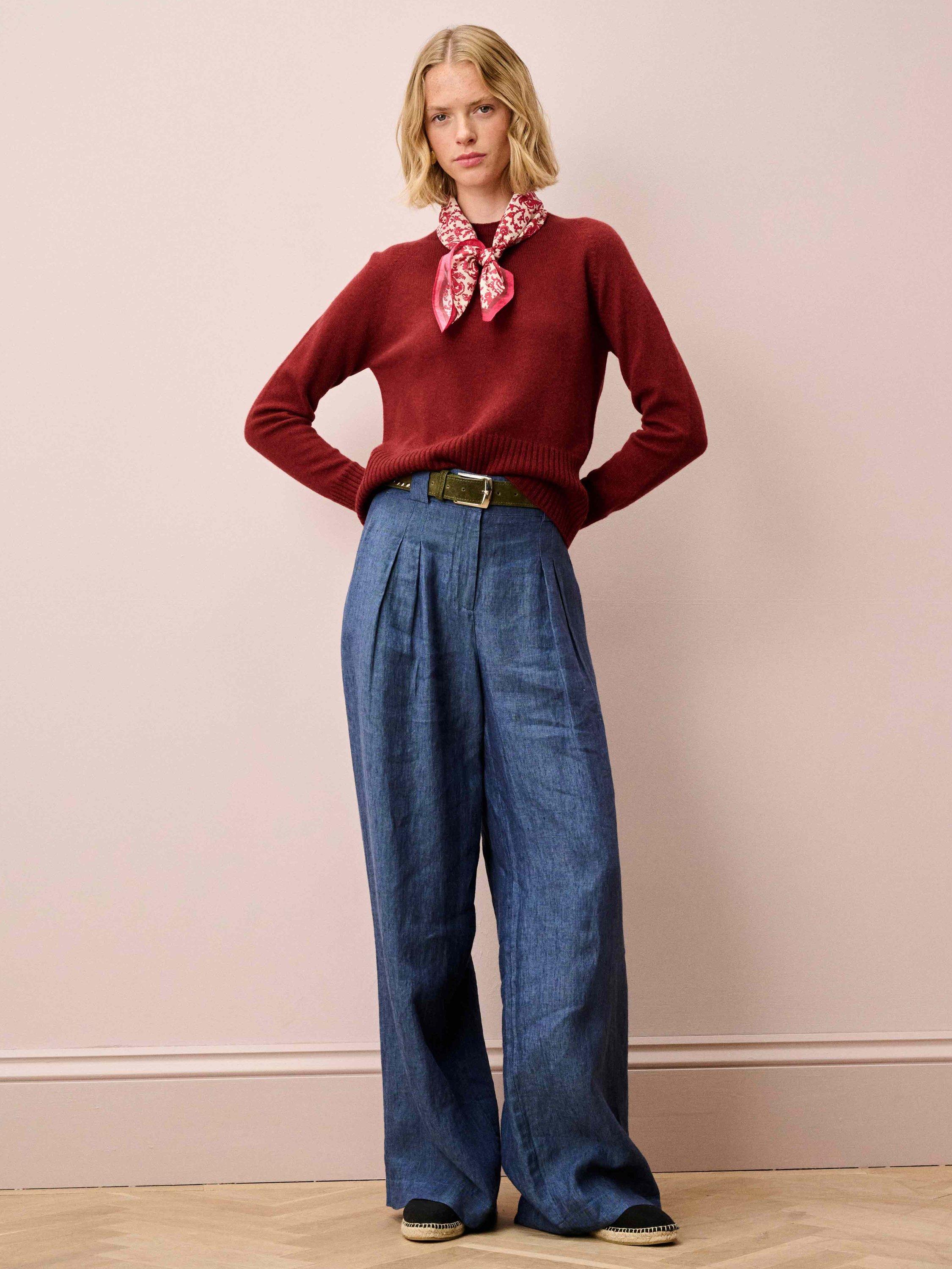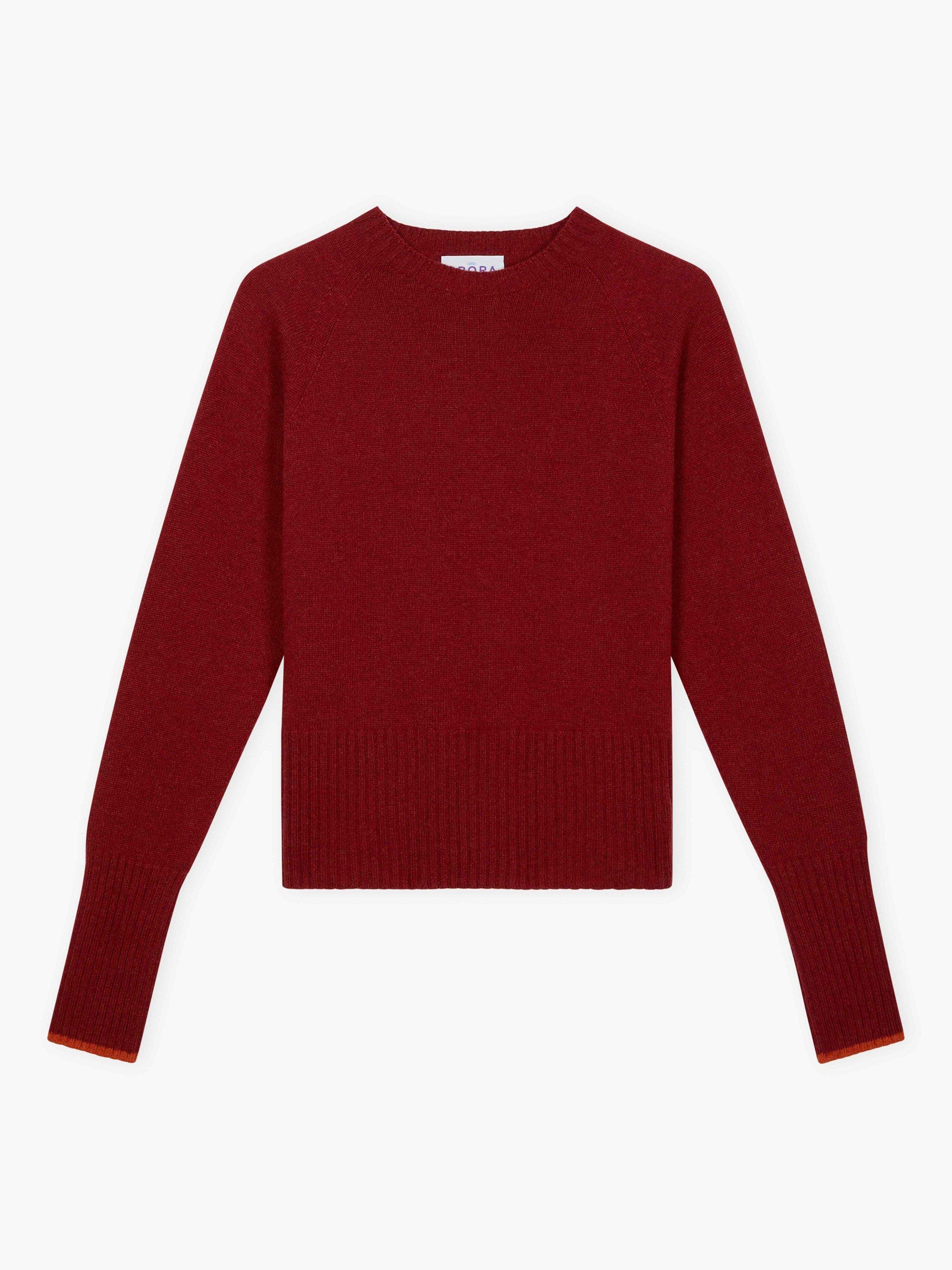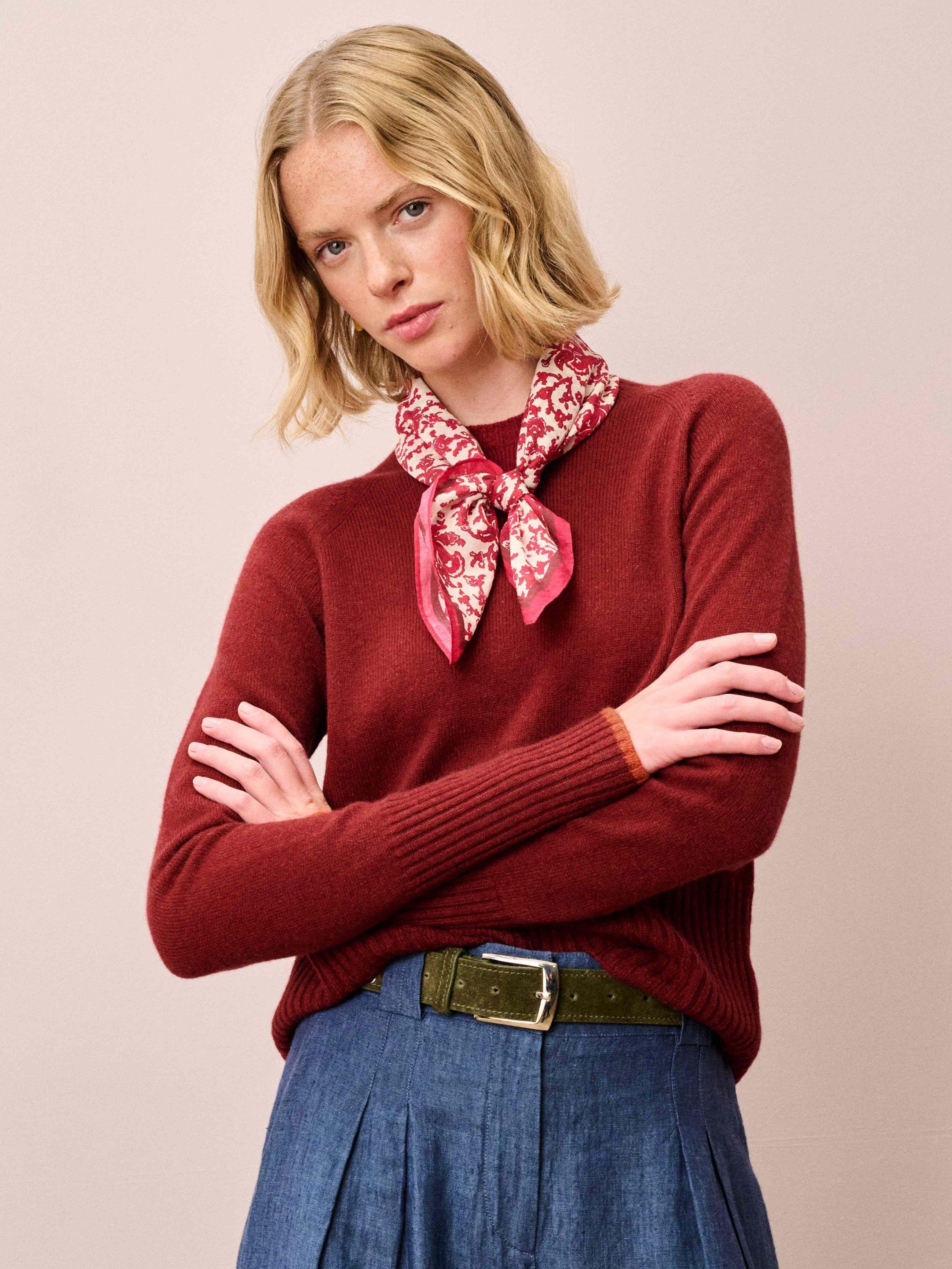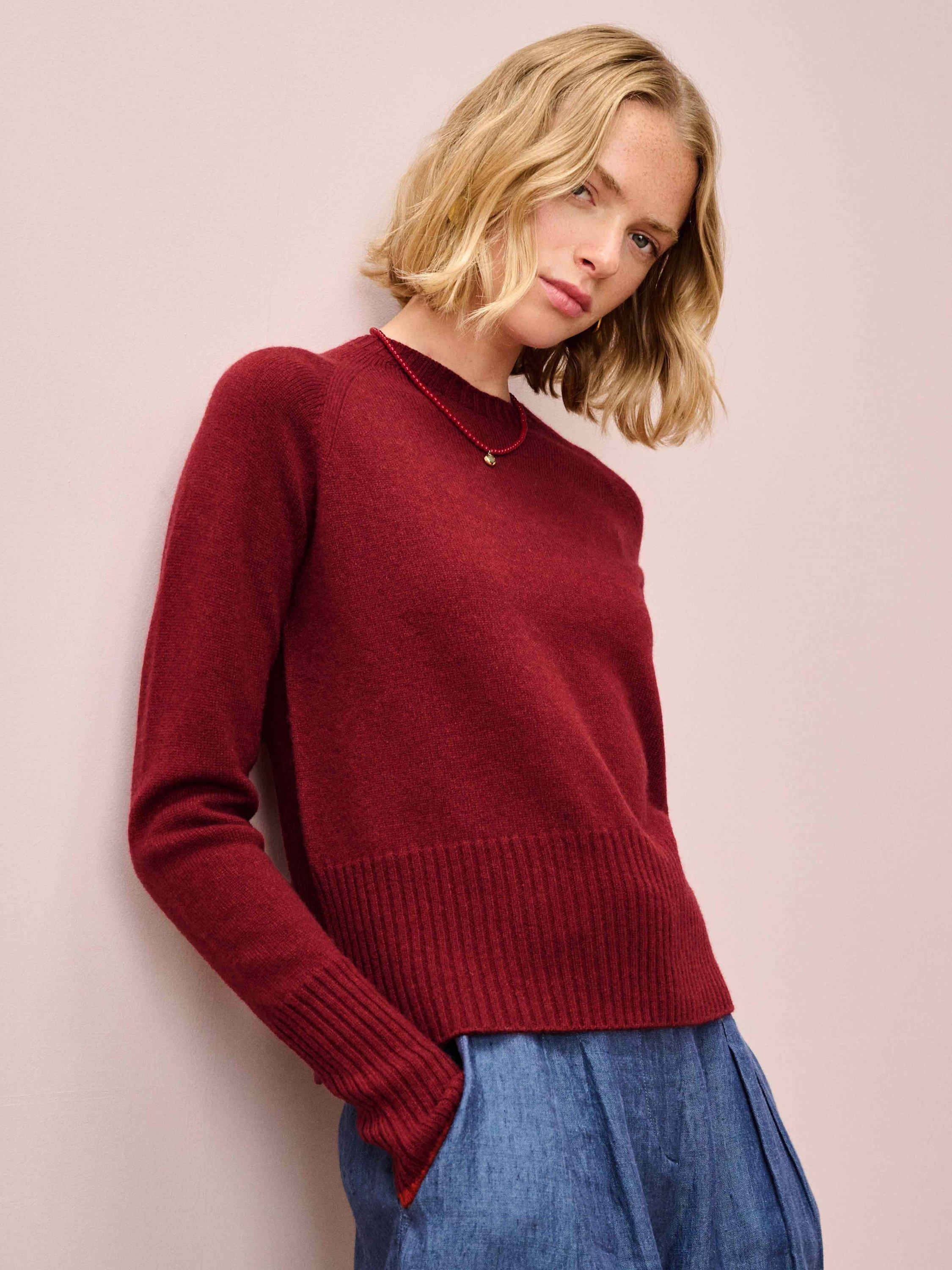 Knitted in Scotland using whole-garment machine technology, these super-flattering cashmere wonders are utterly adored for their neat-fitting, deep-rib waist, high round neckline and contrasting pop on the cuffs.