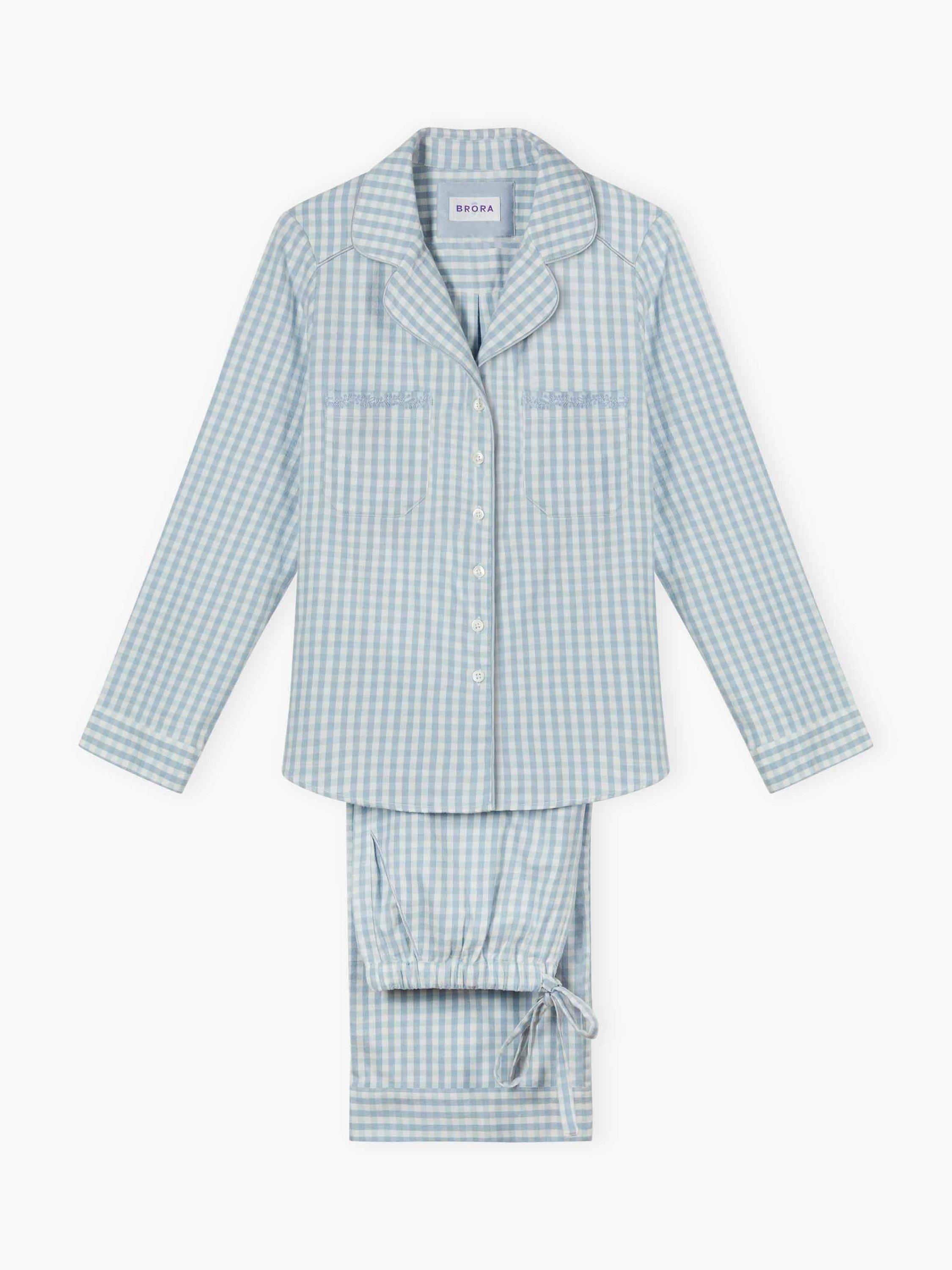 BroraBrushed Cotton Check Pyjama Set, Sky