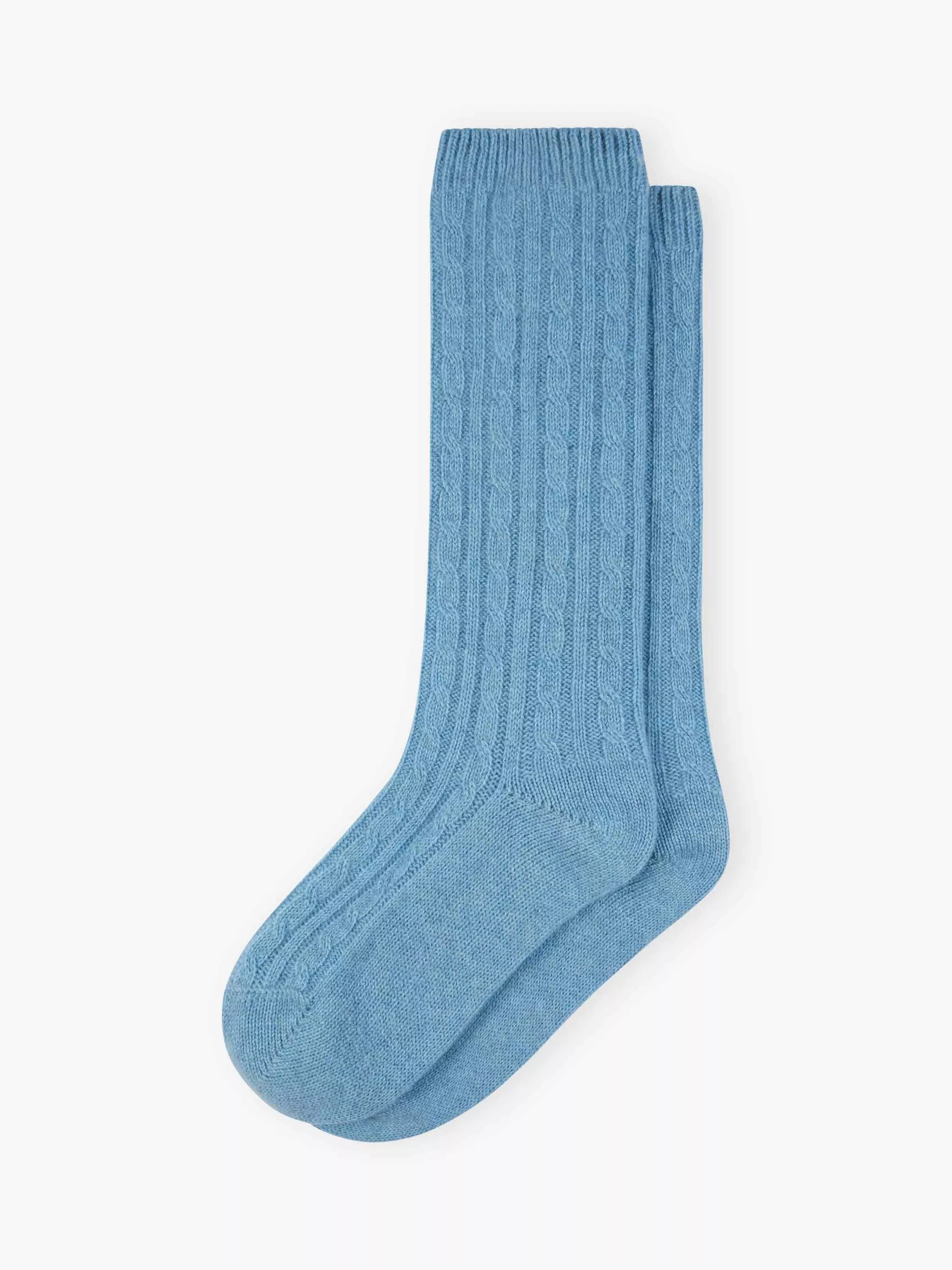 BroraCashmere Cable Knit Bed Socks, Wedgewood