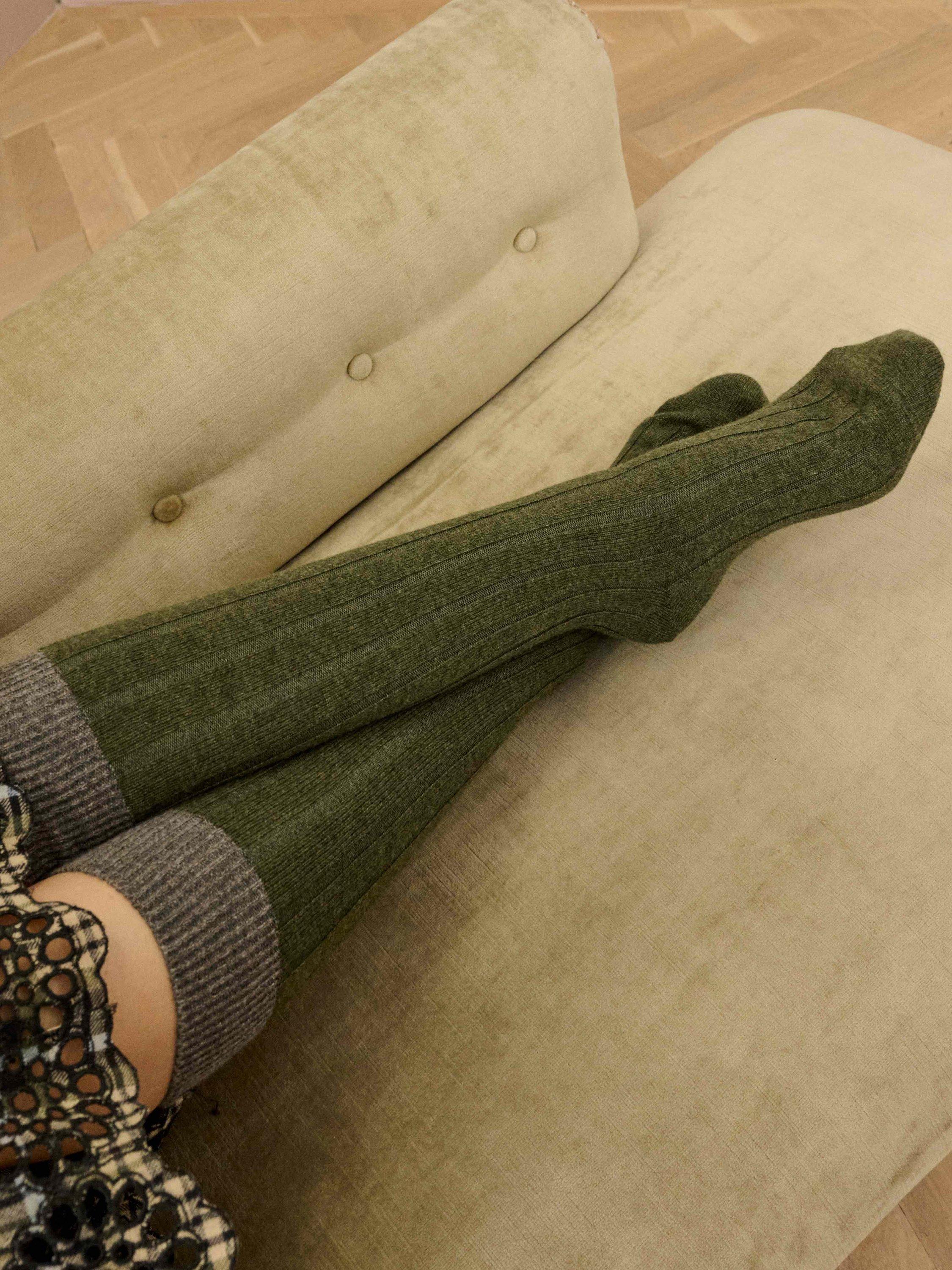Treat your feet to these long socks, expertly knitted in Scotland using Brora's blissfully soft cashmere and age-old techniques, perfect for styling with the contrasting rib trims poking out from beneath knee-high boots.