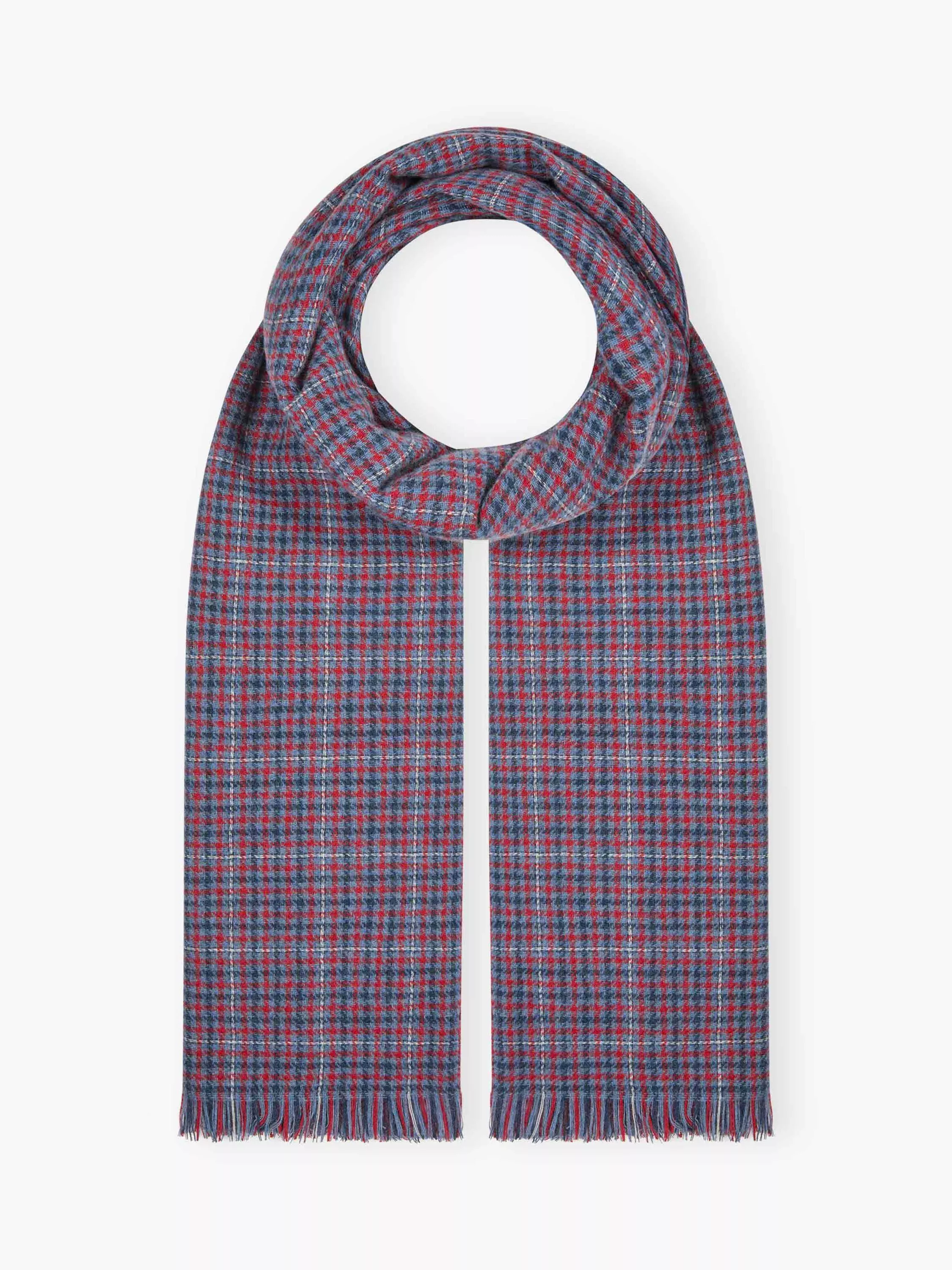 BroraCheck Chartouche Pure Cashmere Scarf, Chambray/Garnet