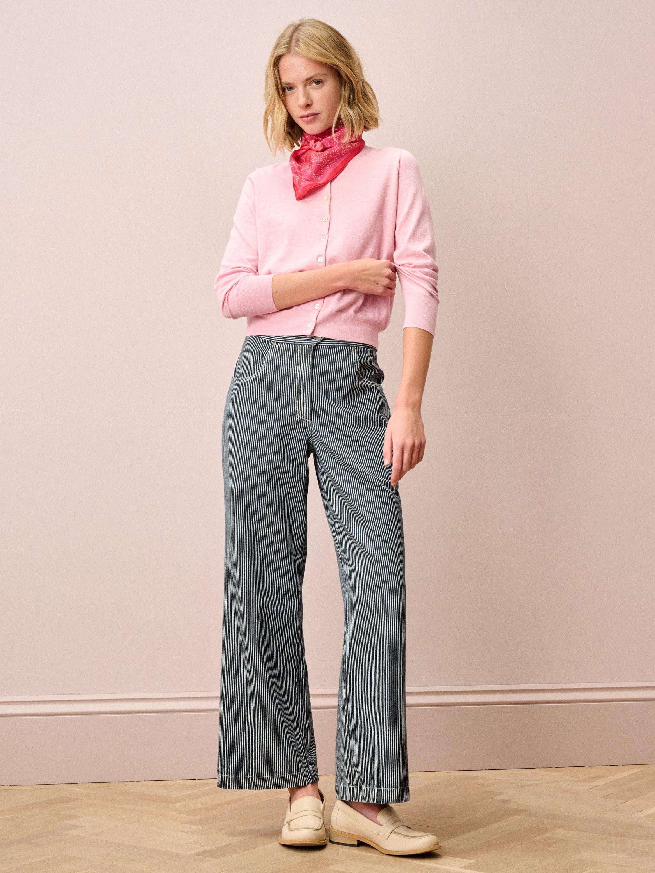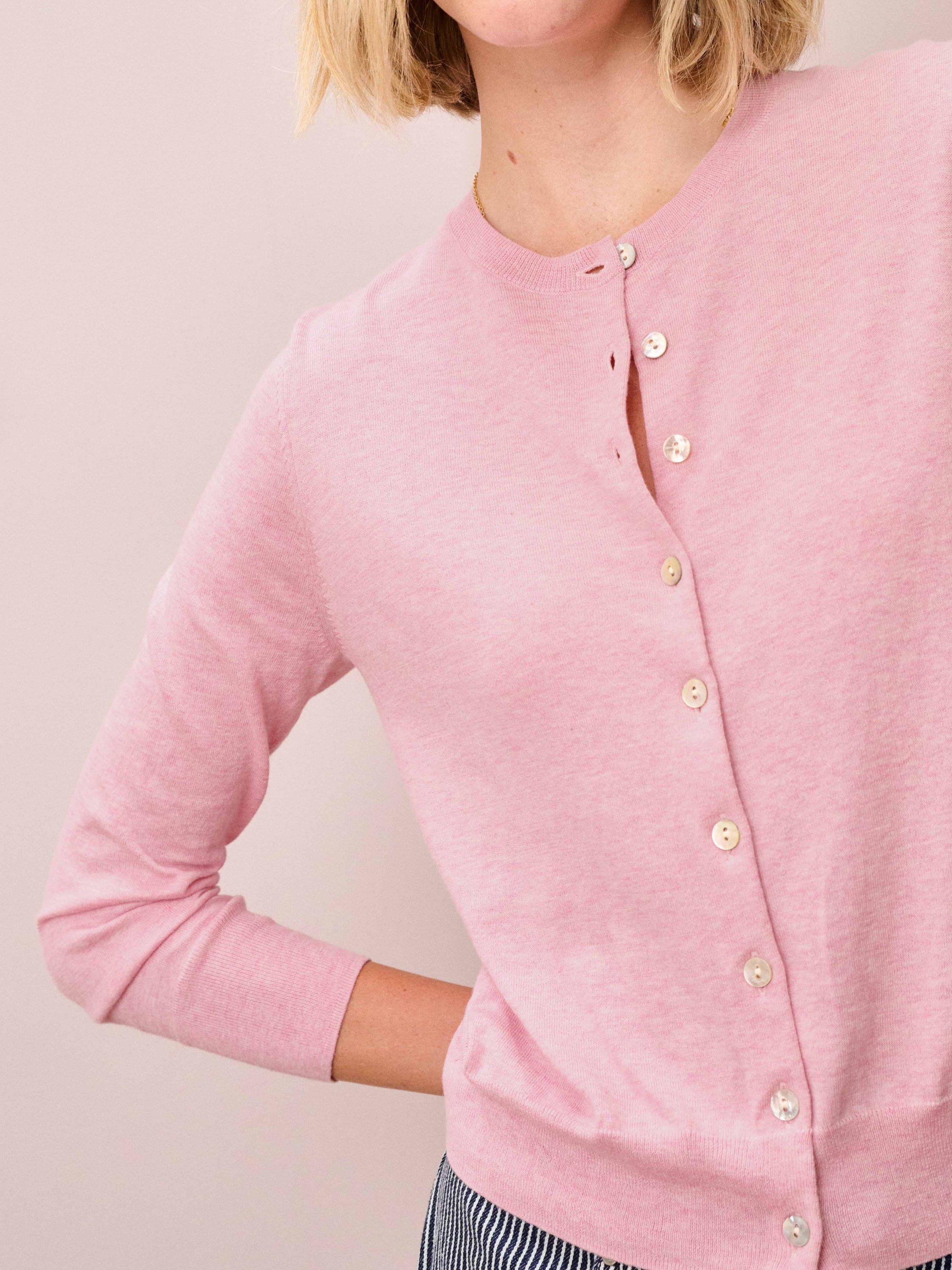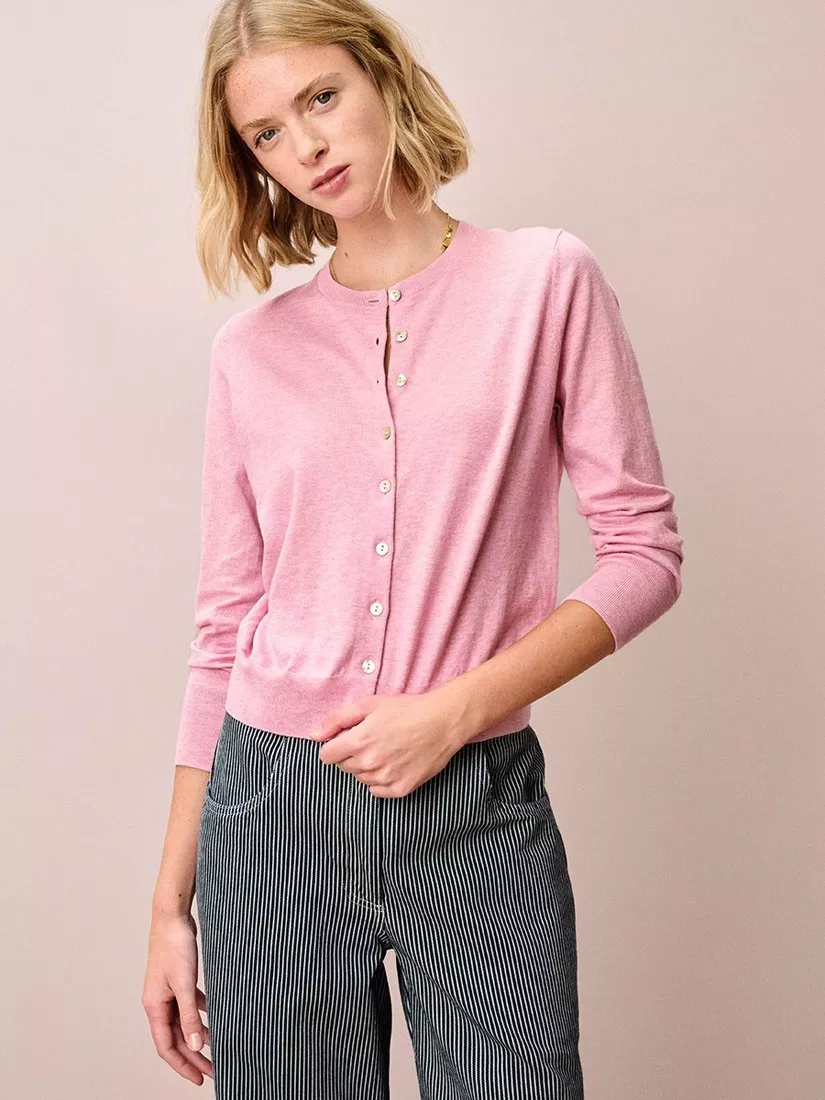 It's no surprise that this fine-gauge cotton knit button-up, with its rounded neckline, bracelet-length sleeves and ribbed trims, is deemed a wardrobe must-have.