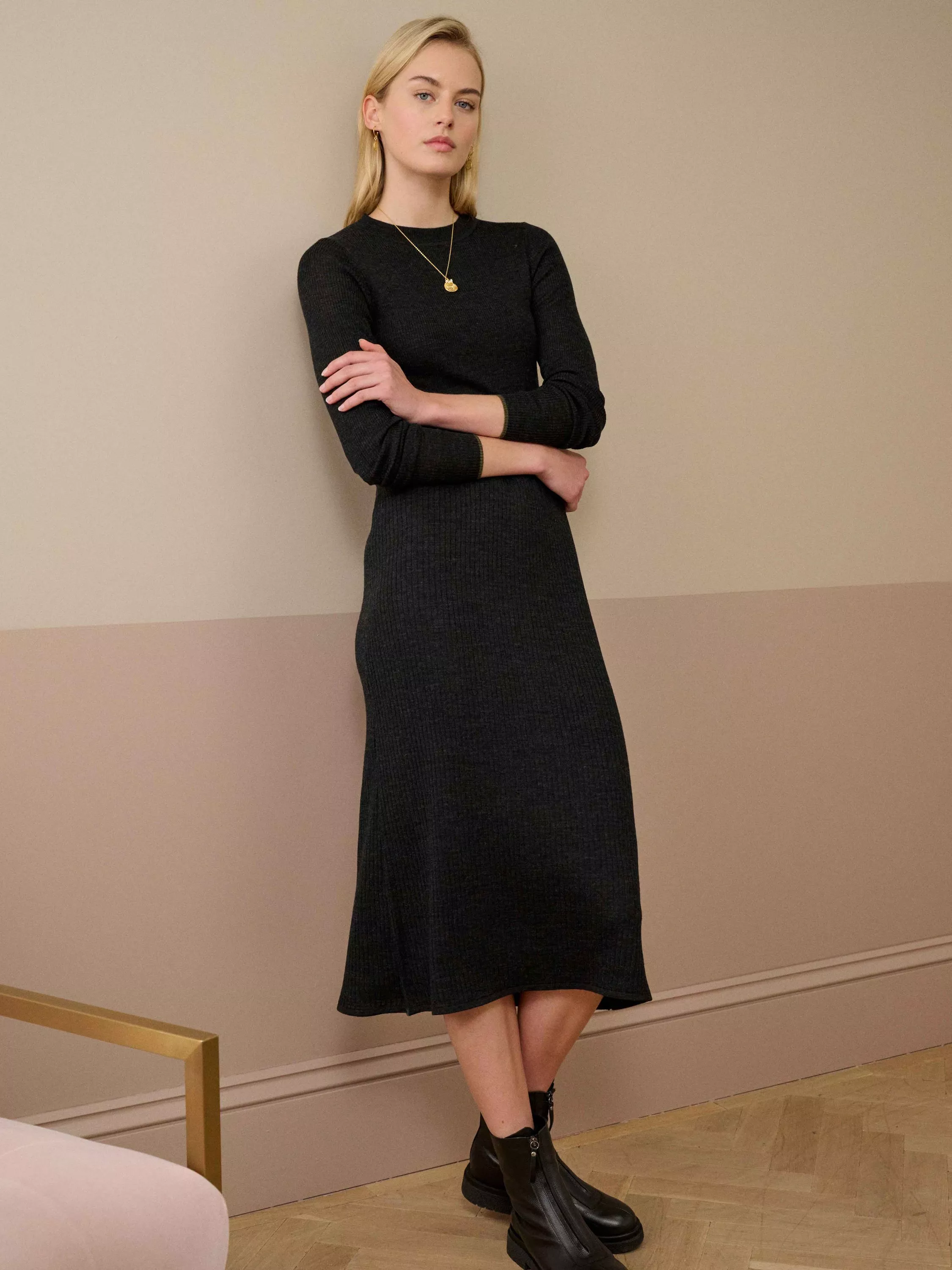 Feminine and super-flattering, this long-sleeve dress will soon be your everyday go-to, beautifully knitted from the finest natural merino wool with a stunning neat fit, contrast-tipped cuffs and all-over fine rib.