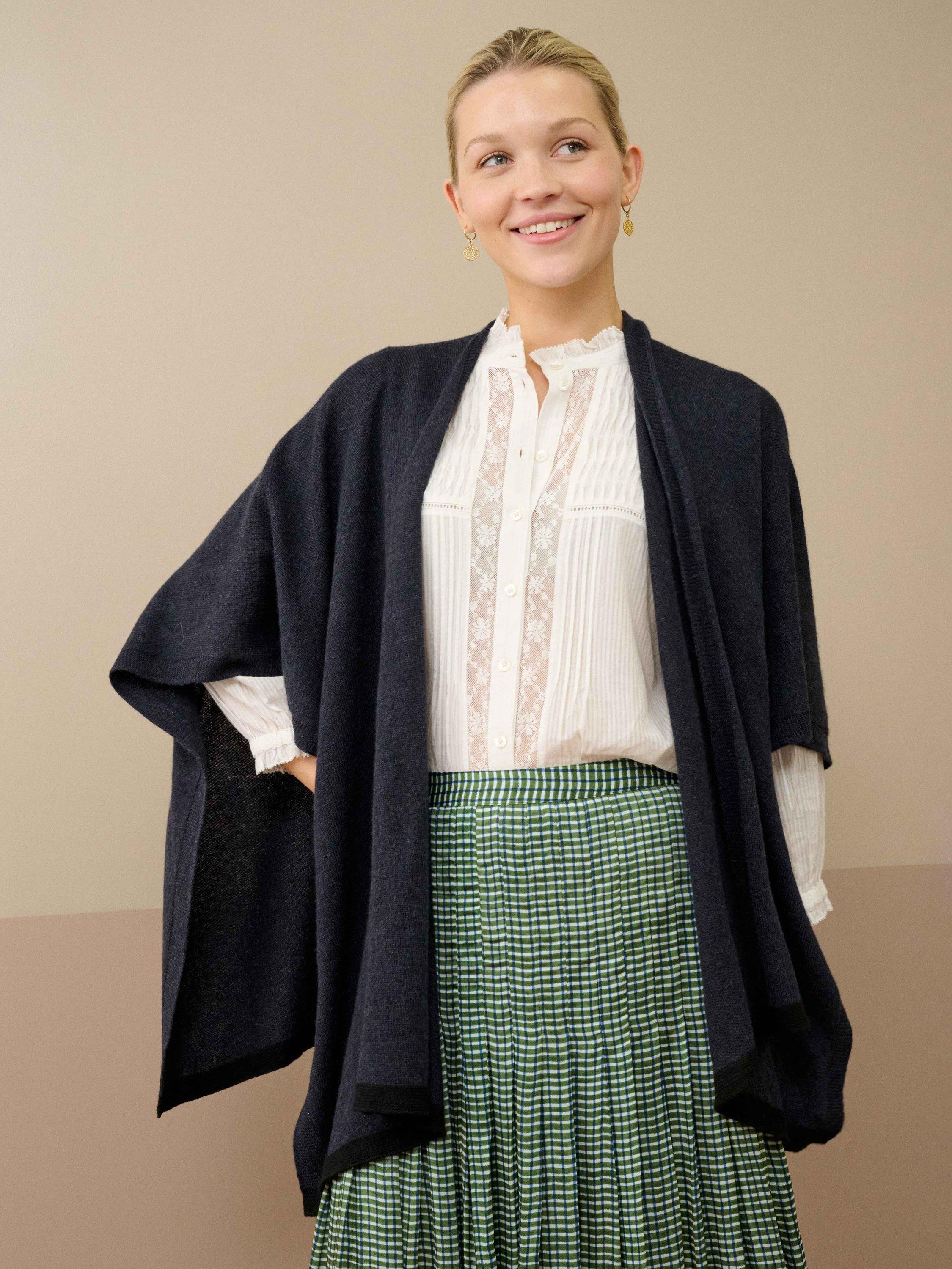 If you love the indulgent softness of Brora's cosy Scottish cashmere ponchos but are looking for something a little different, how about this Cashmere Contrast Trim Cape? It's the perfect throw-on layer for the months to come.
