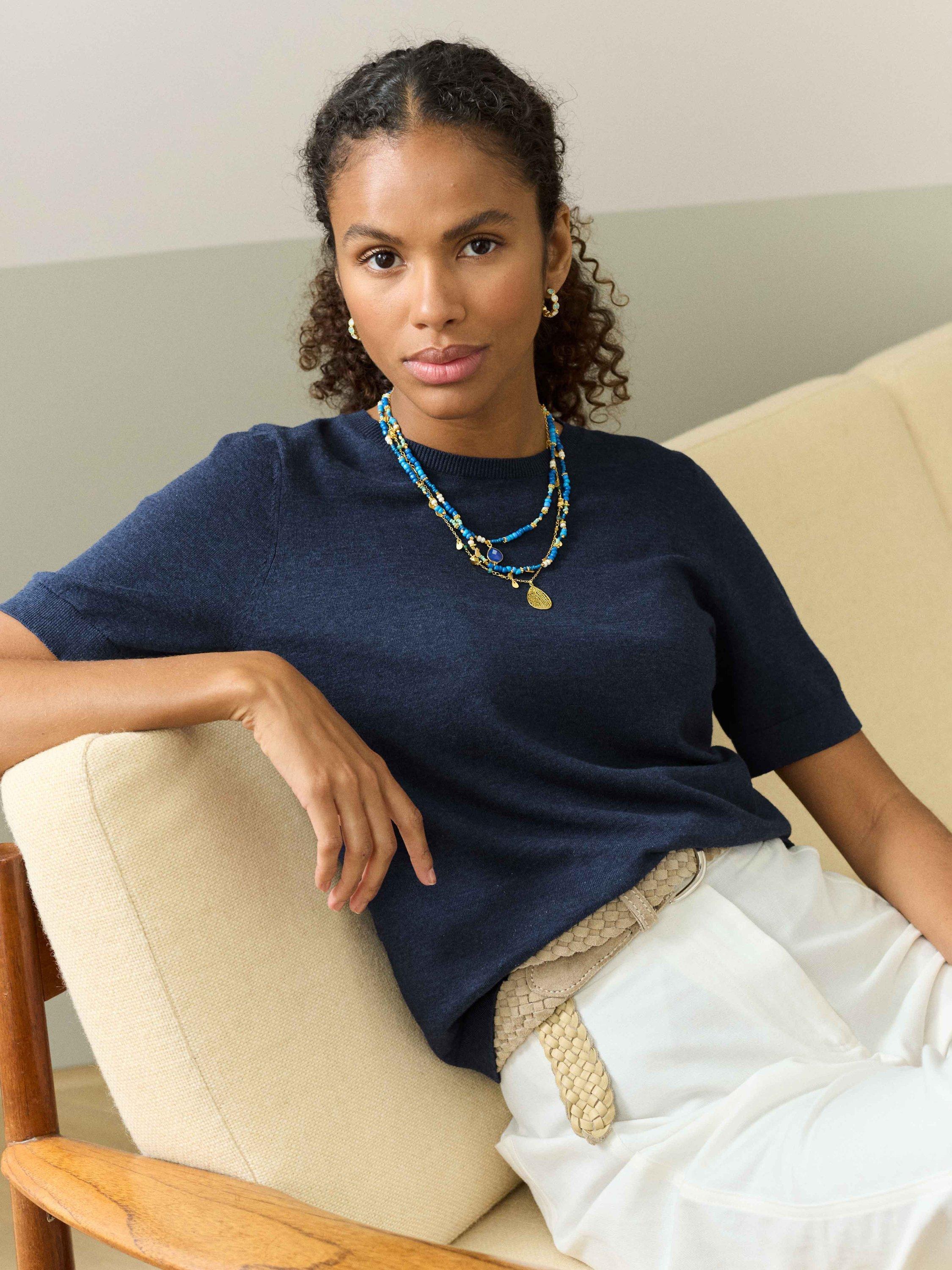 Knitted with fine gauge cotton, this Brora classic has been perfected over the years to ensure it has the perfect neckline, length and shape. Pair with the matching cotton cardigans to create the ideal summer twinset.