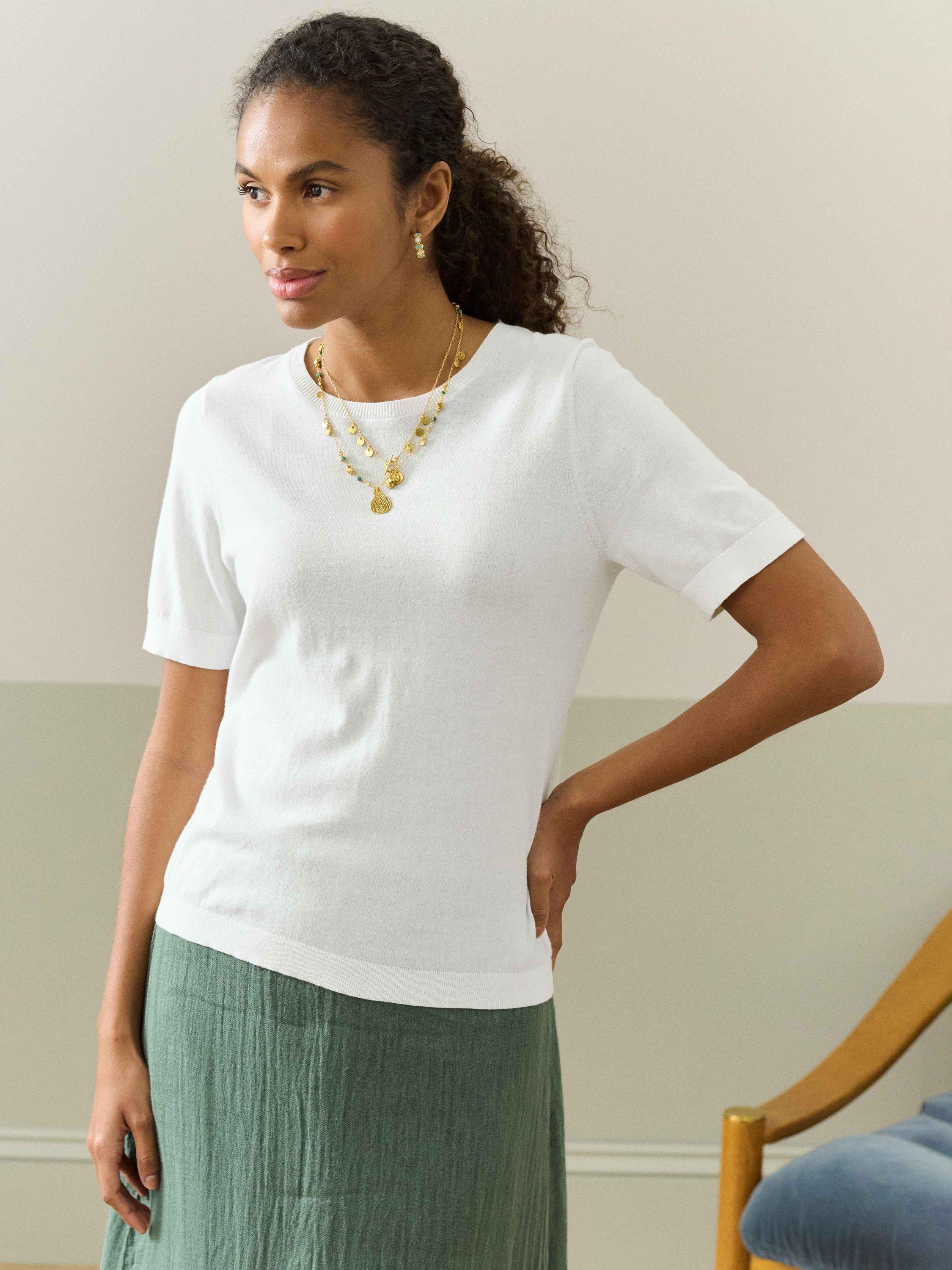 Knitted with fine gauge cotton, this Brora classic has been perfected over the years to ensure it has the perfect neckline, length and shape. Pair with the matching cotton cardigans to create the ideal summer twinset.