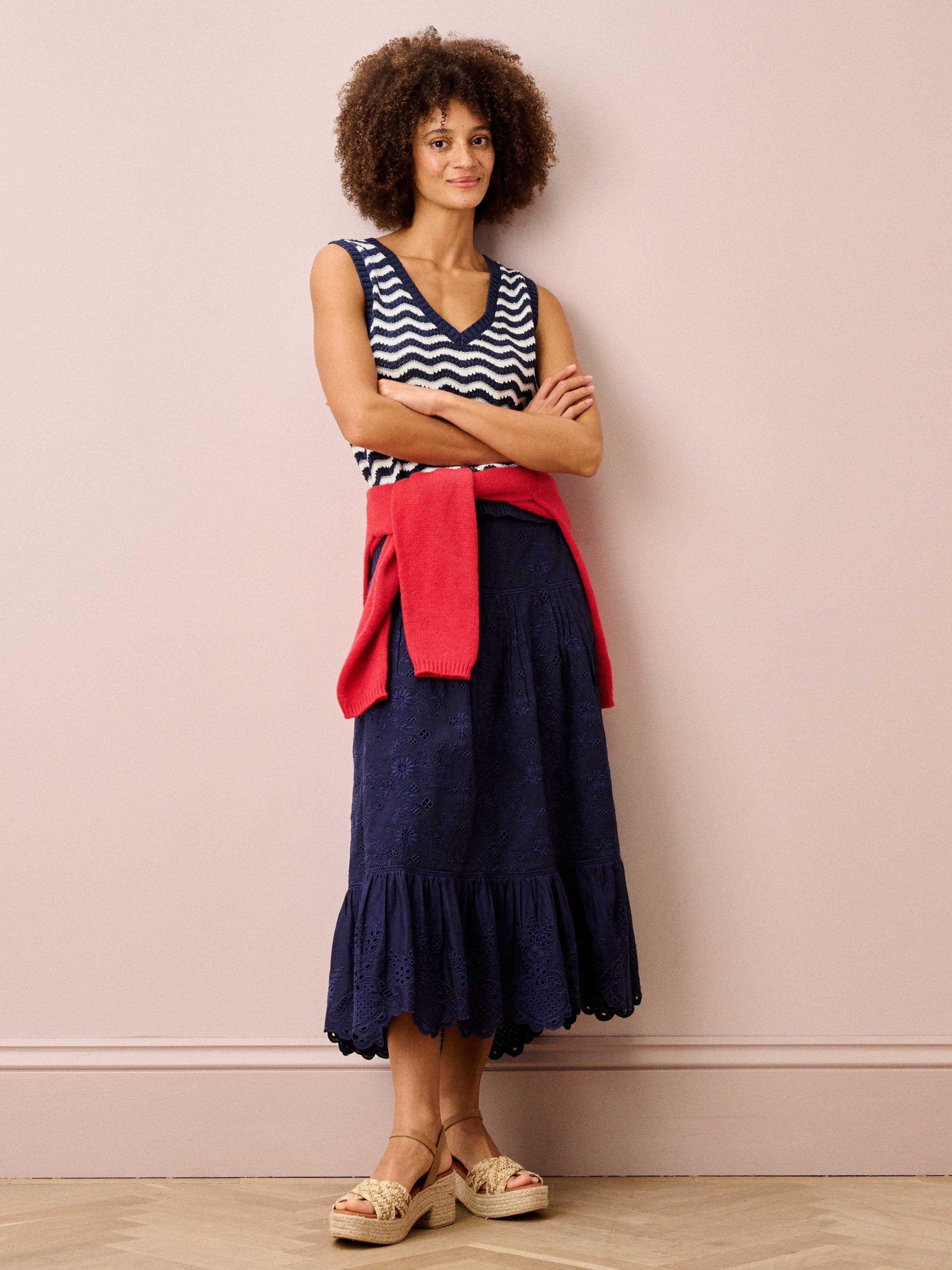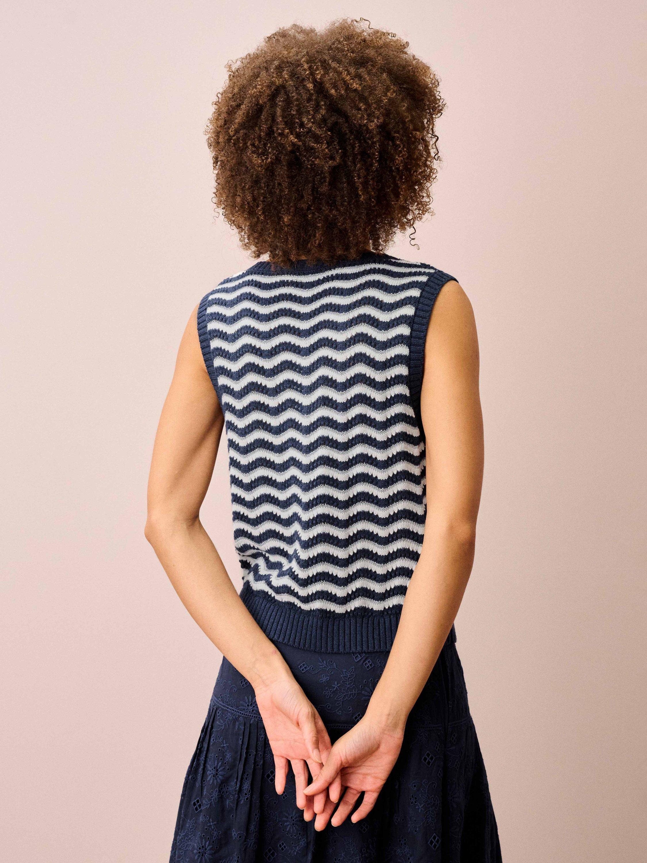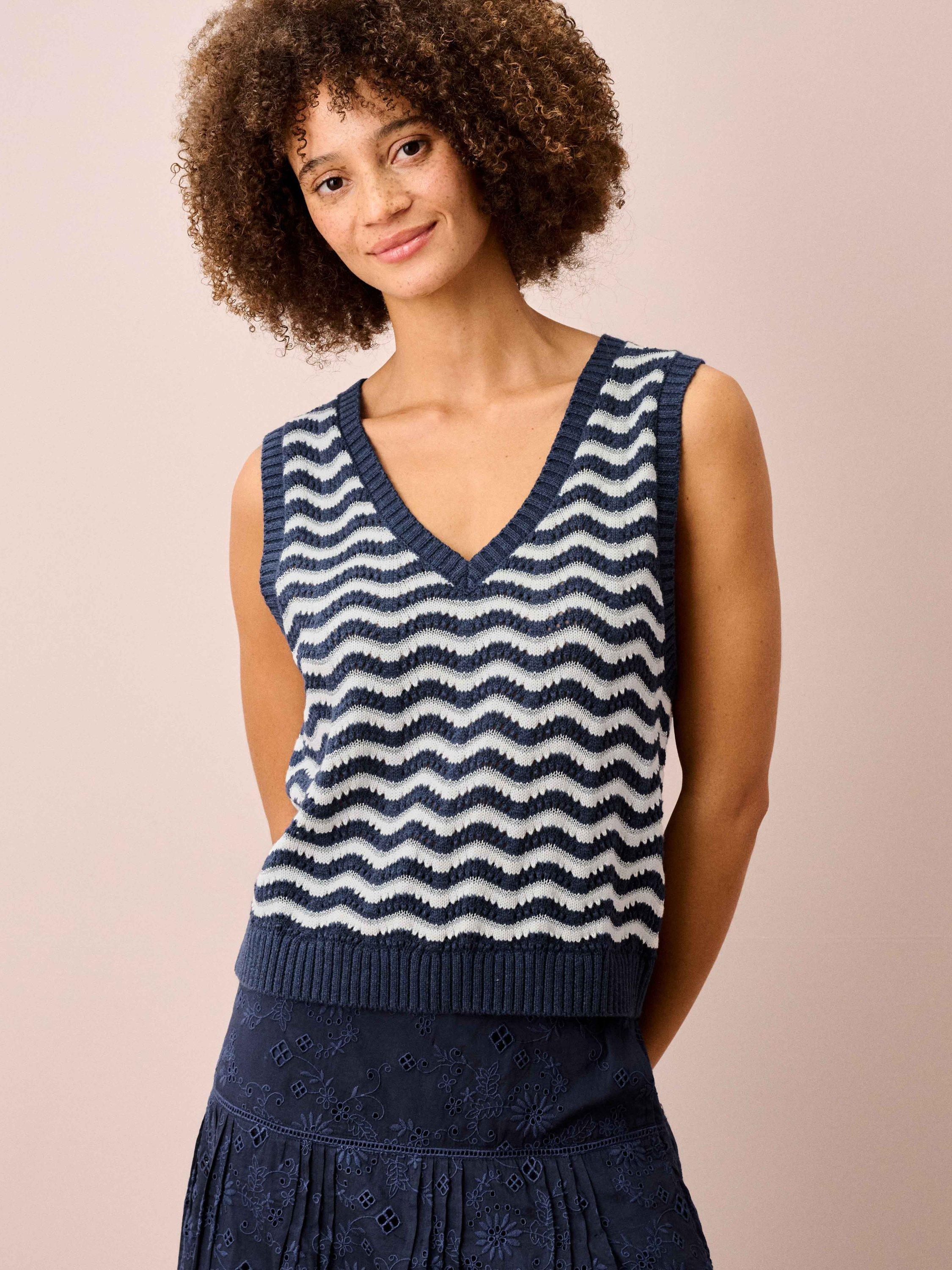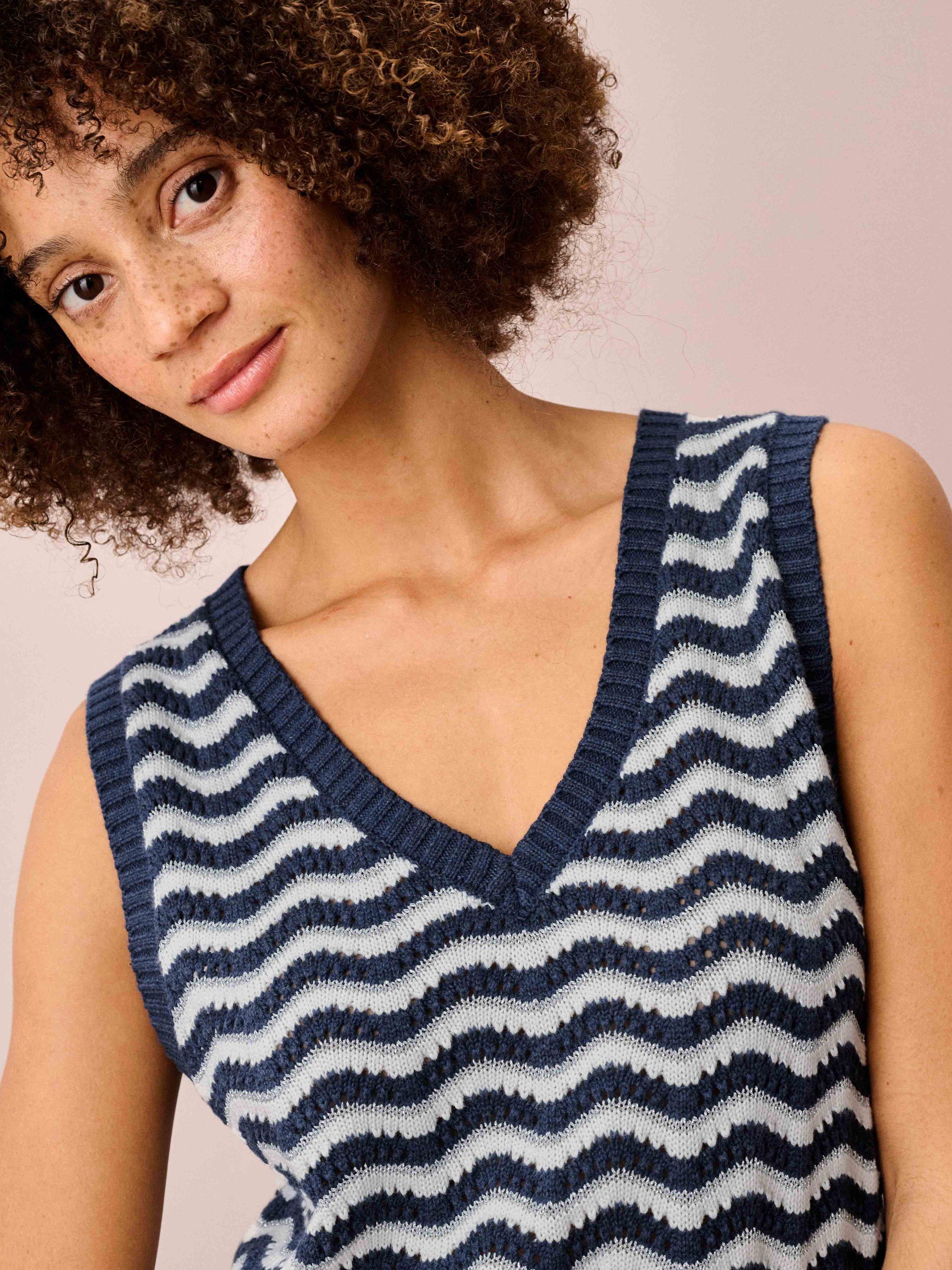 This lightweight layer comes complete with a flattering V-neck, ribbed trims, pointelle details, and an exclusive combination of vivacious, seasonal shades.