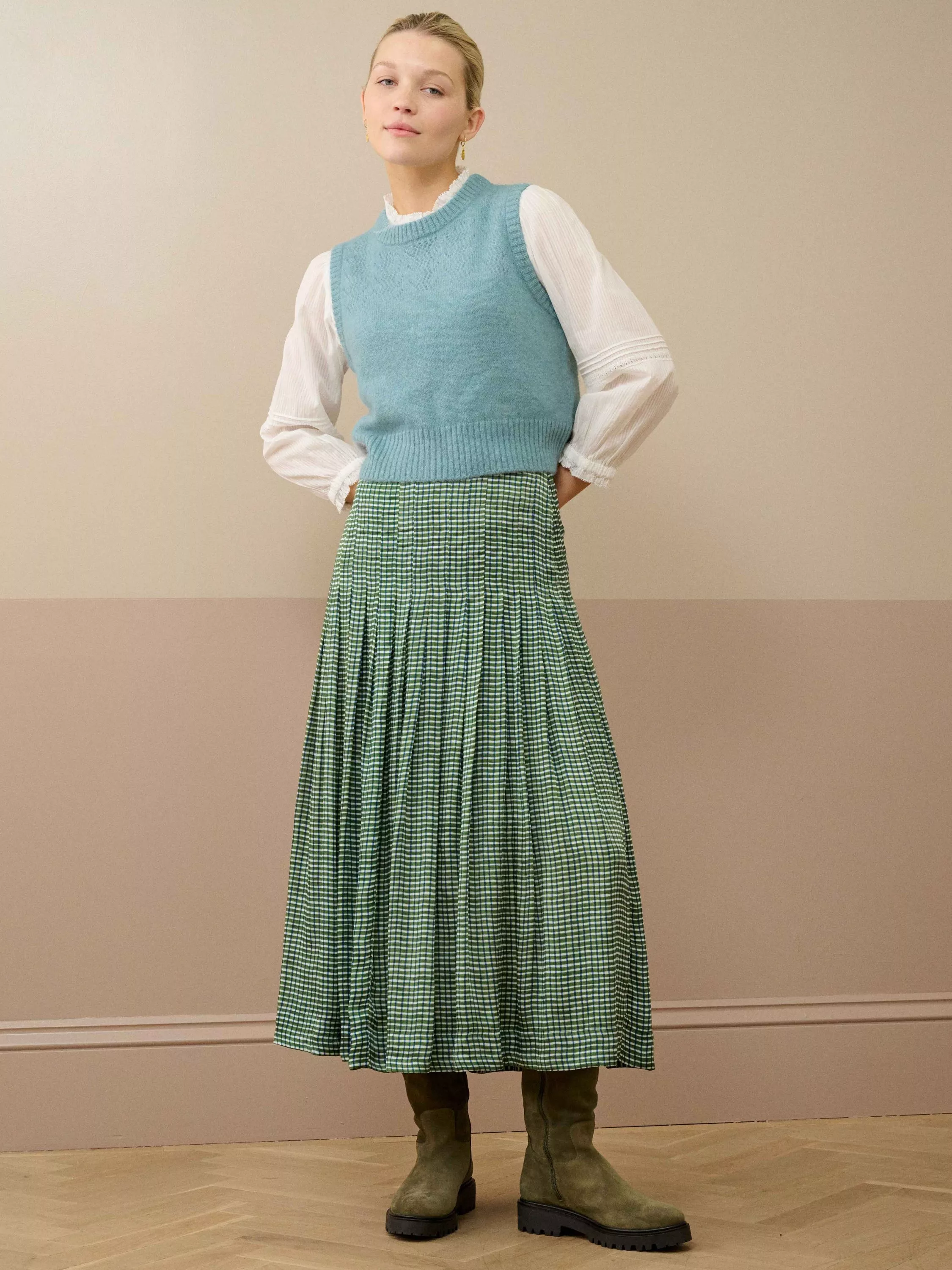 With a gorgeous pointelle yoke, this lightweight Textured Tank is truly a cut above the rest, exquisitely knitted in Europe from a supersoft alpaca-merino blend using only the finest yarns spun by specialists in Italy.