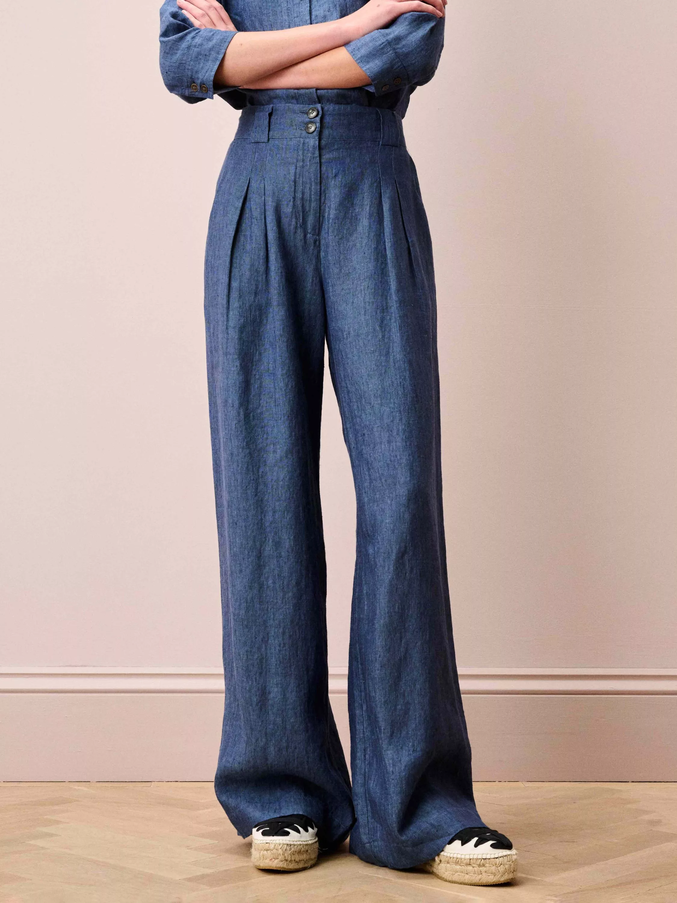 Featuring a wide-leg shape, an elasticated back waist, functional pockets and front knife pleats, these super-flattering Cross-Weave Linen Trousers have been made from start to finish in Europe.