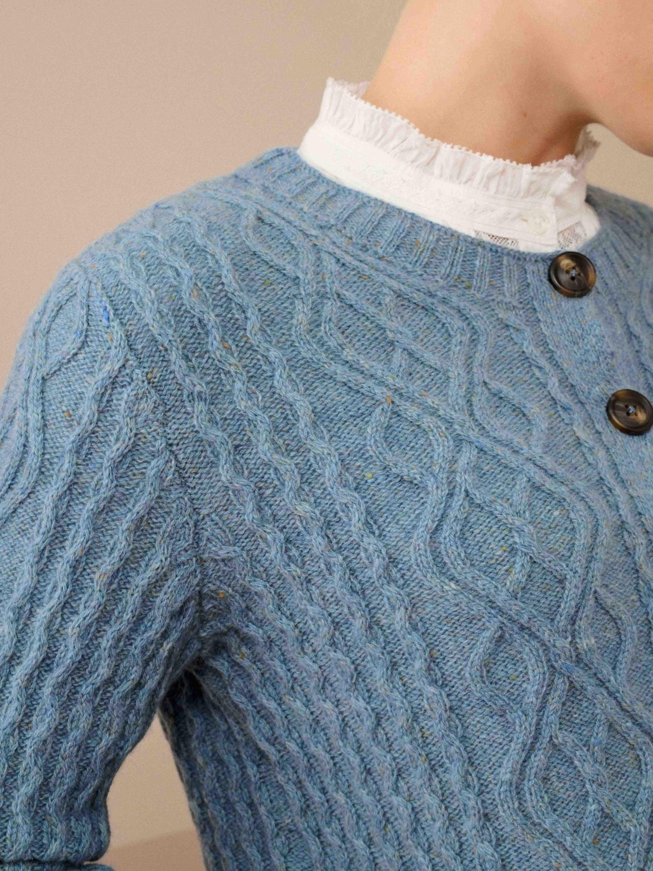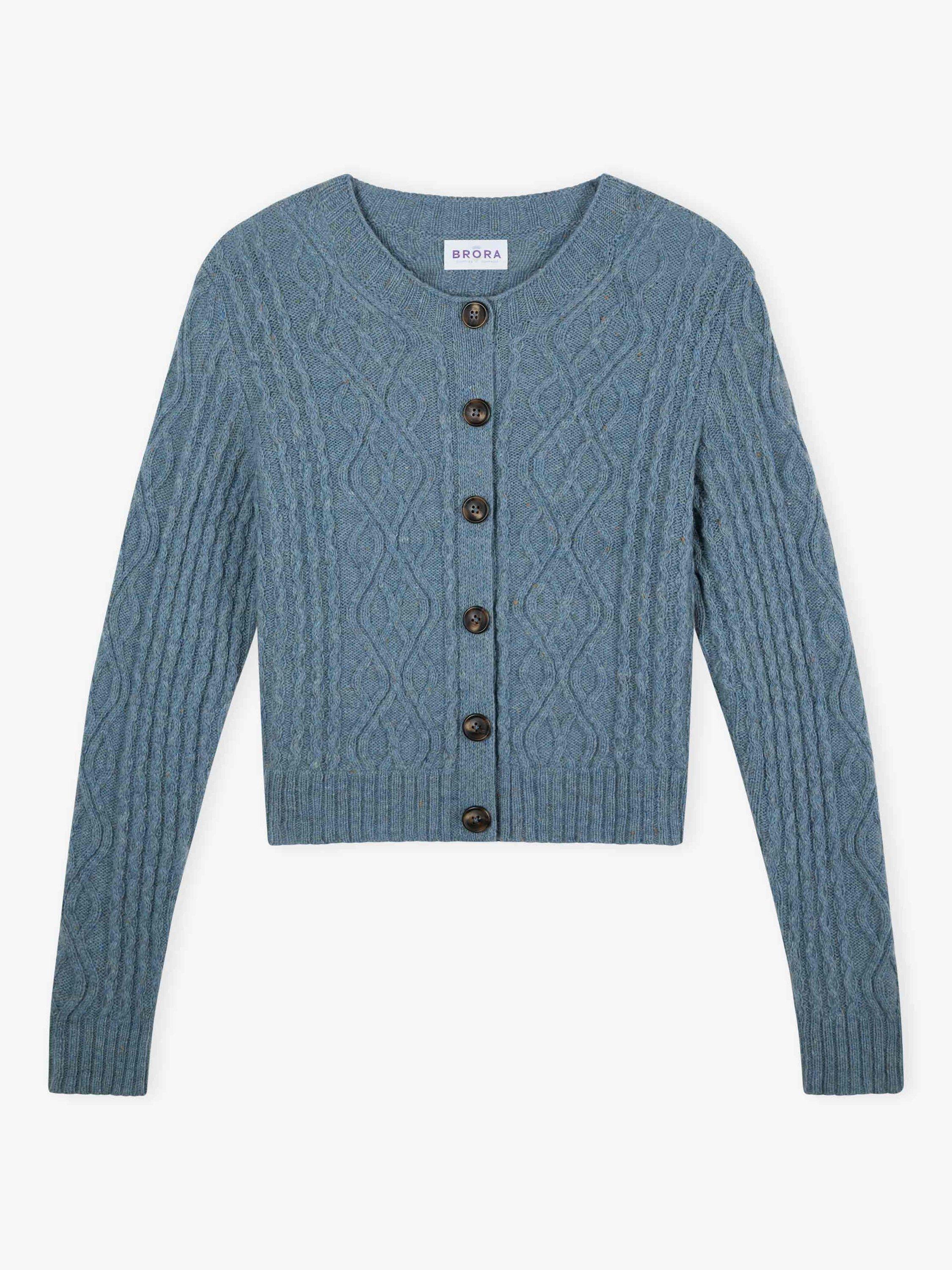 This charming cardigan has been knitted using pure, natural Donegal wool, known for its handpicked, multi-coloured flecks, and beautifully finished with a mix of statement Aran cables for a very Brora heritage twist.