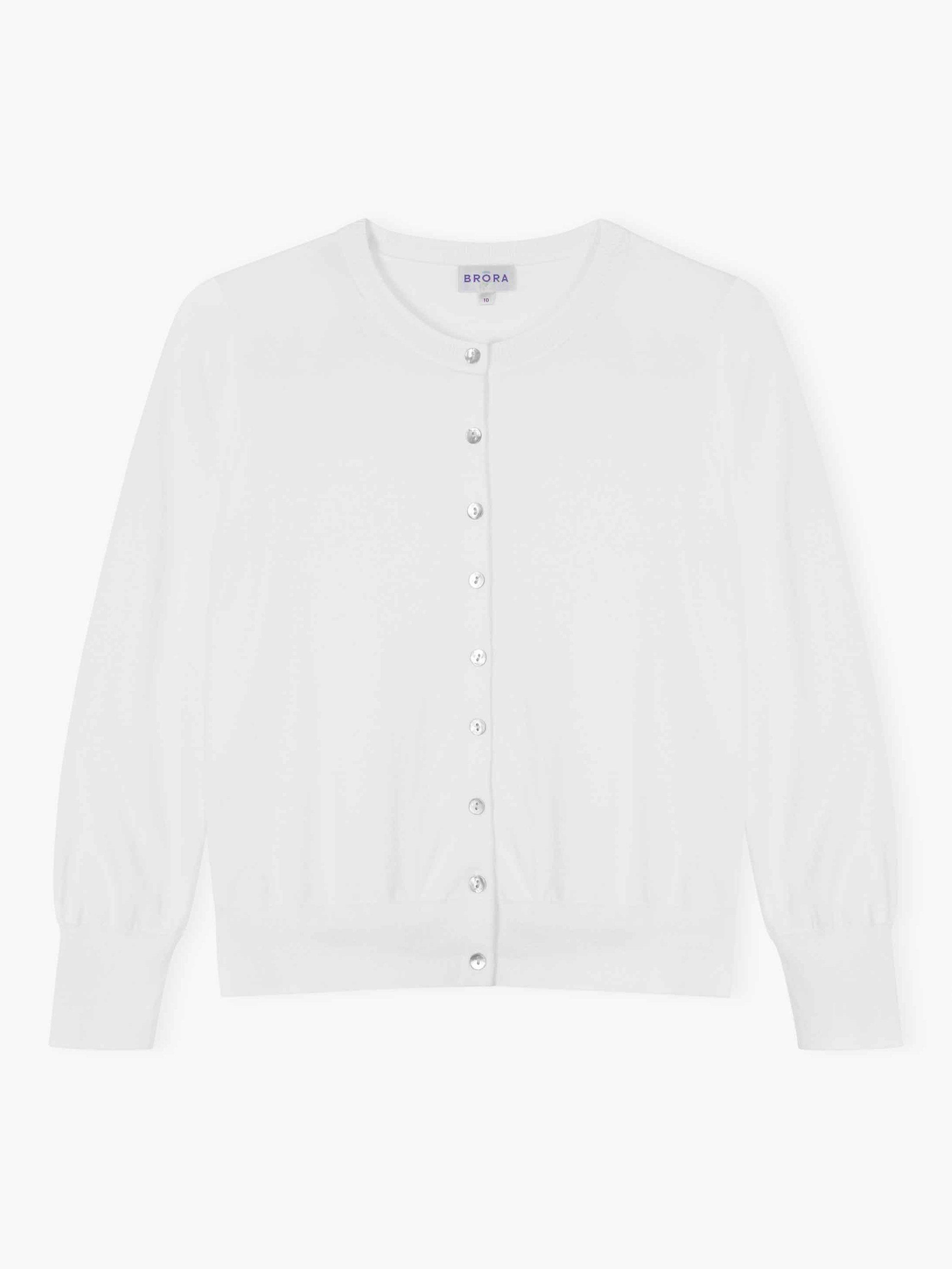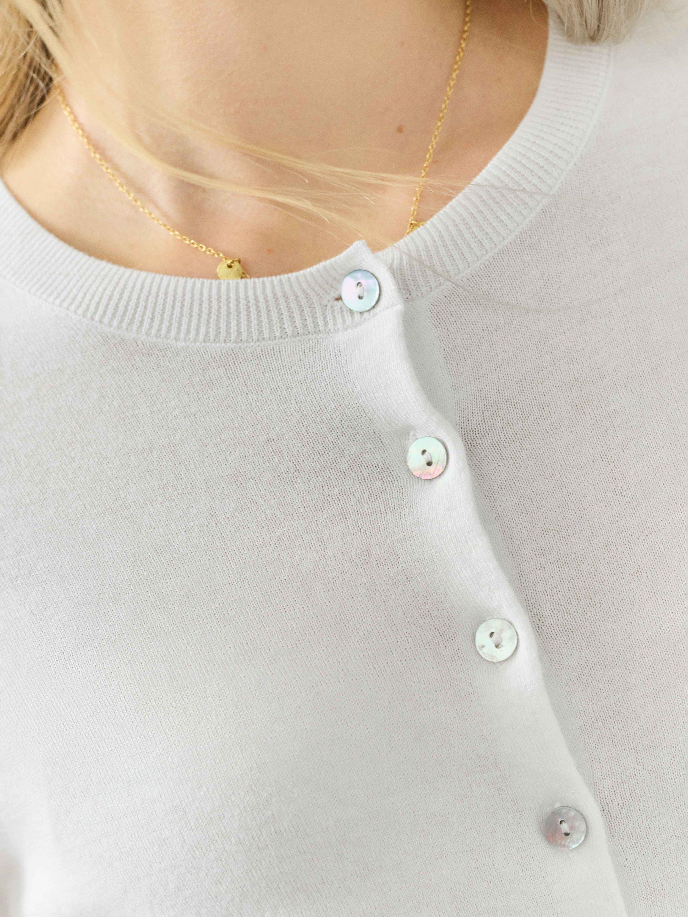 Simple and understated, this fine gauge cotton knit cardigan is lightweight, compact to pack, and easy to wash.