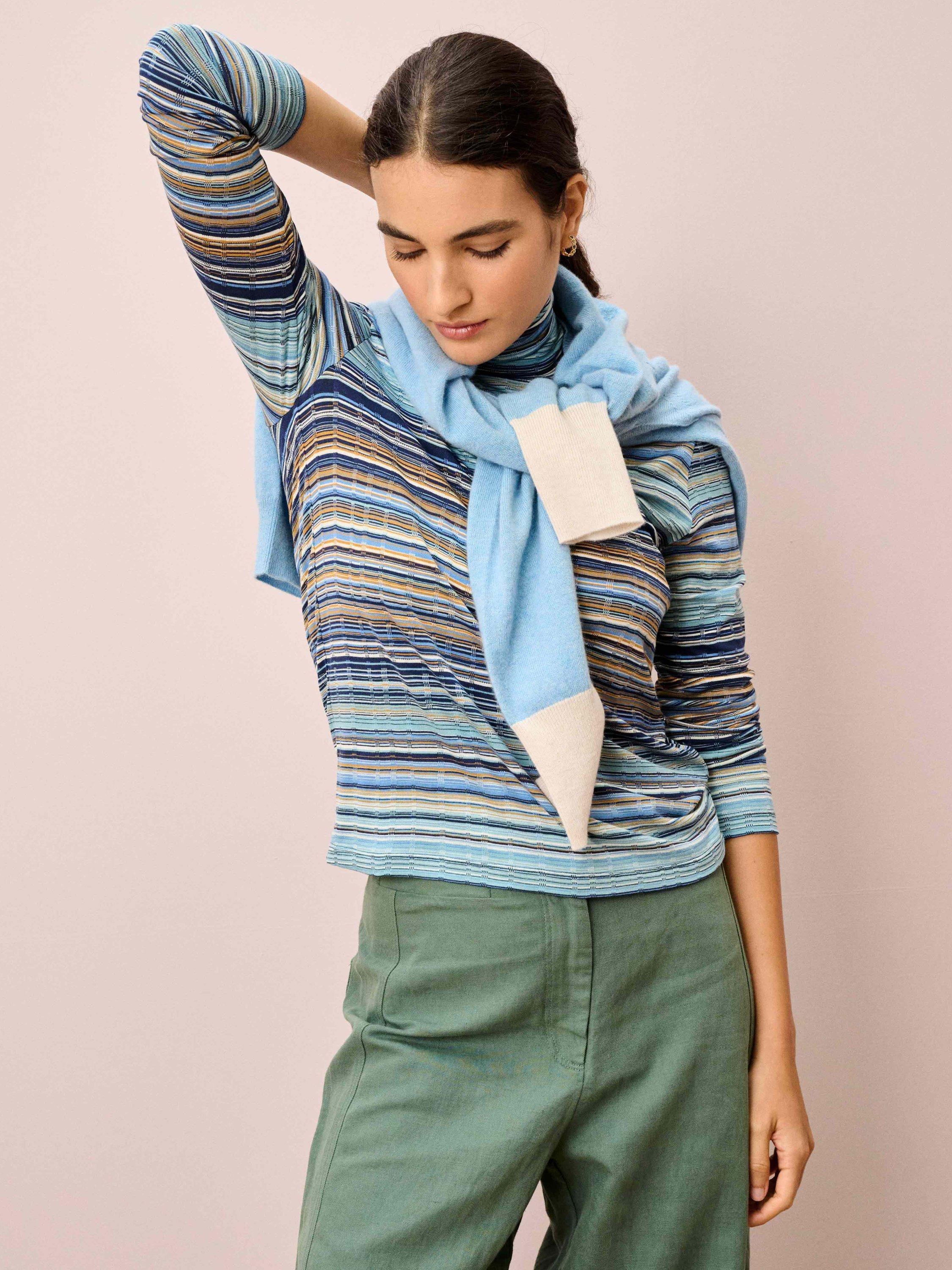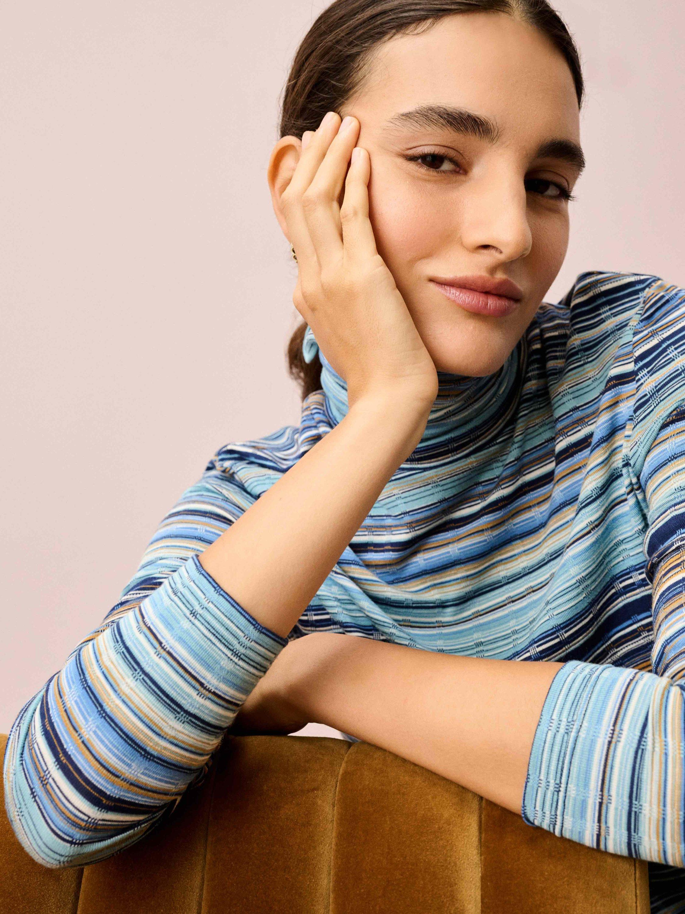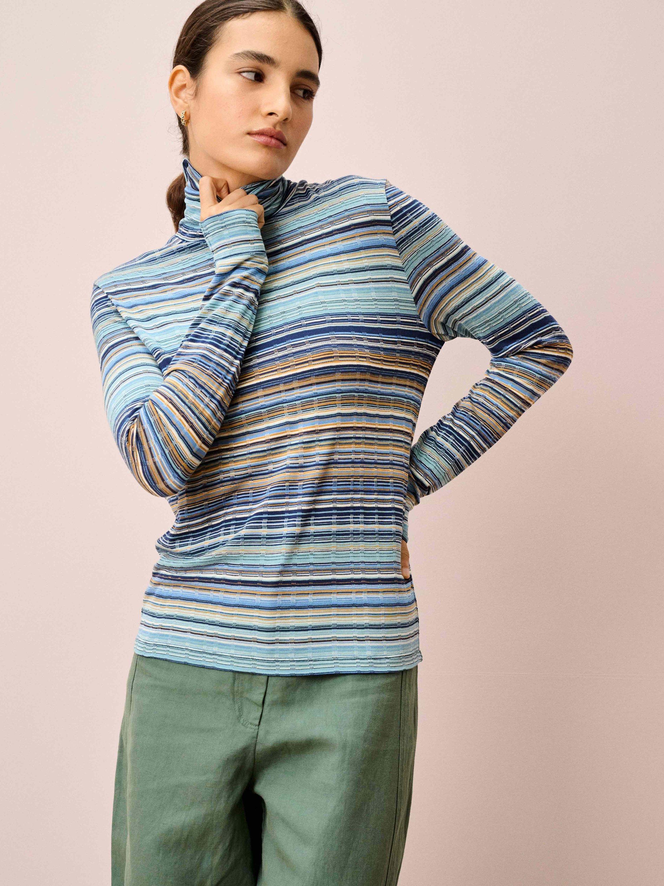 An absolute essential in your wardrobe, this super-soft, striped jersey polo neck is back again in a refreshing colour update to level up your layered looks. Add a playful dose of pattern to your day-to-day outfits.