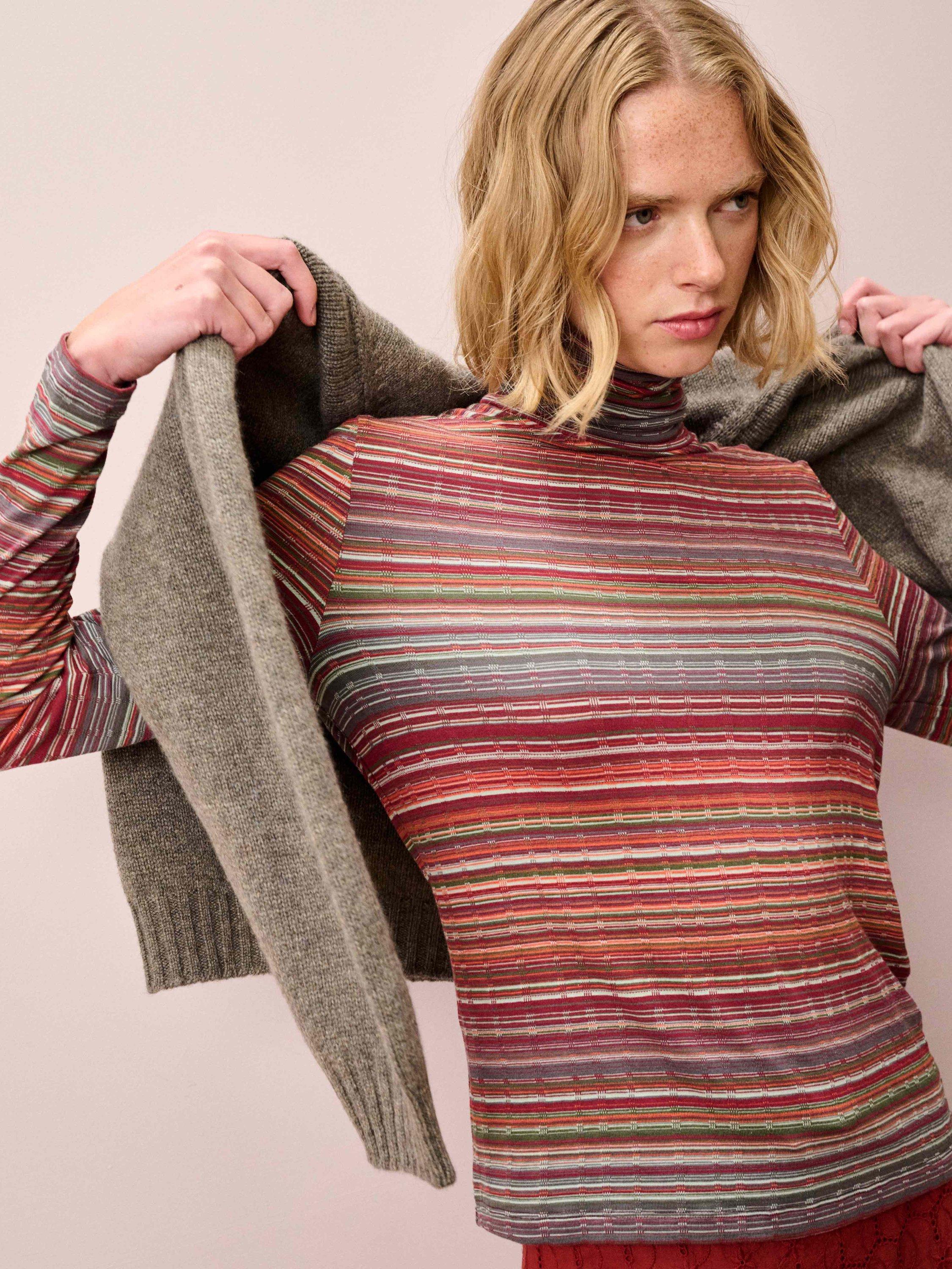 An absolute essential in your wardrobe, this super-soft, striped jersey polo neck is back again in a refreshing colour update to level up your layered looks. Add a playful dose of pattern to your day-to-day outfits.