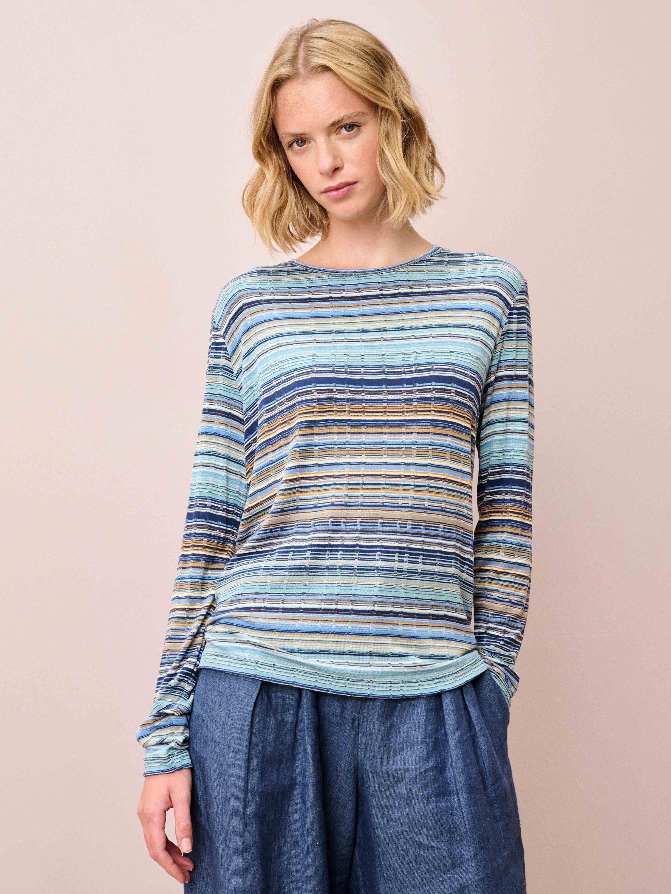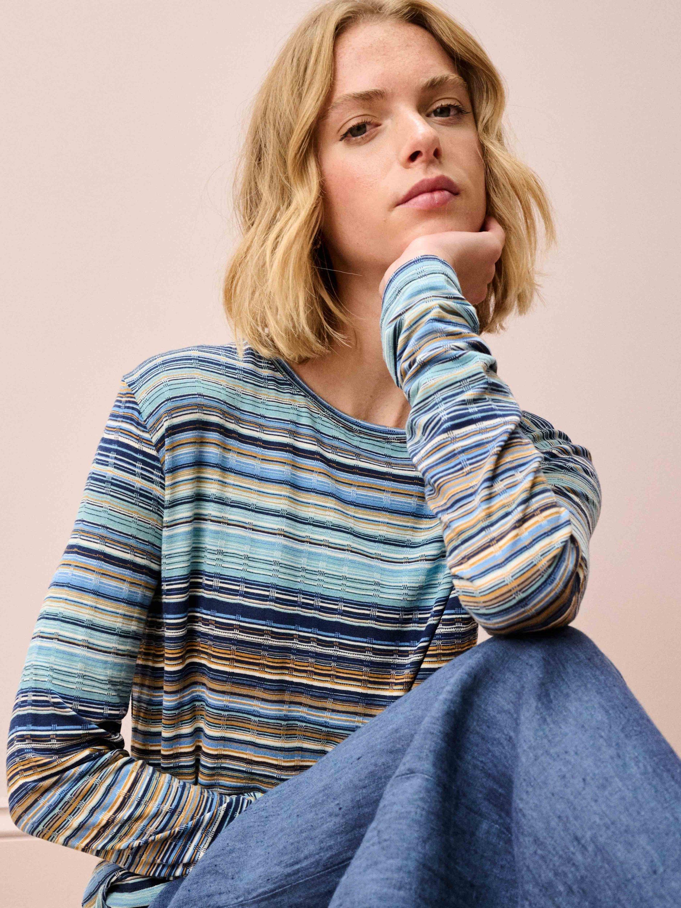 The layering essential every woman needs: this striped, long-sleeve top is back for a reason, exquisitely made from a super-flattering stretch jersey fabric, which has been refreshed into an exclusive, new-season palette.