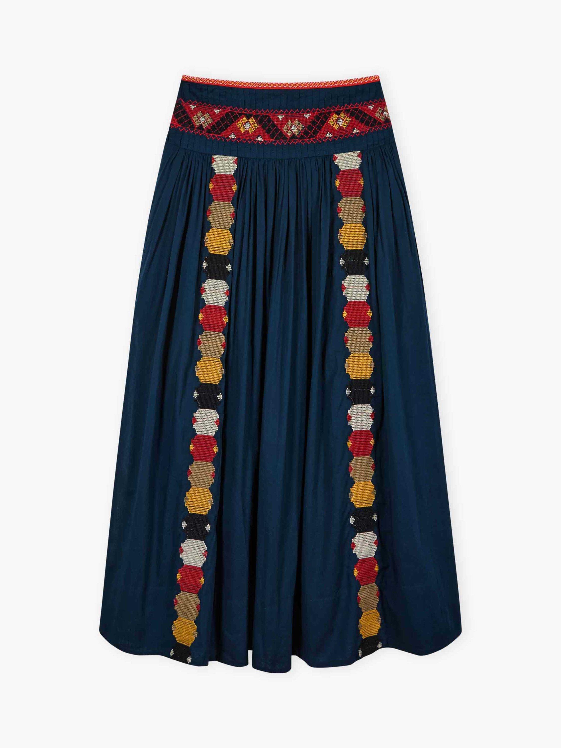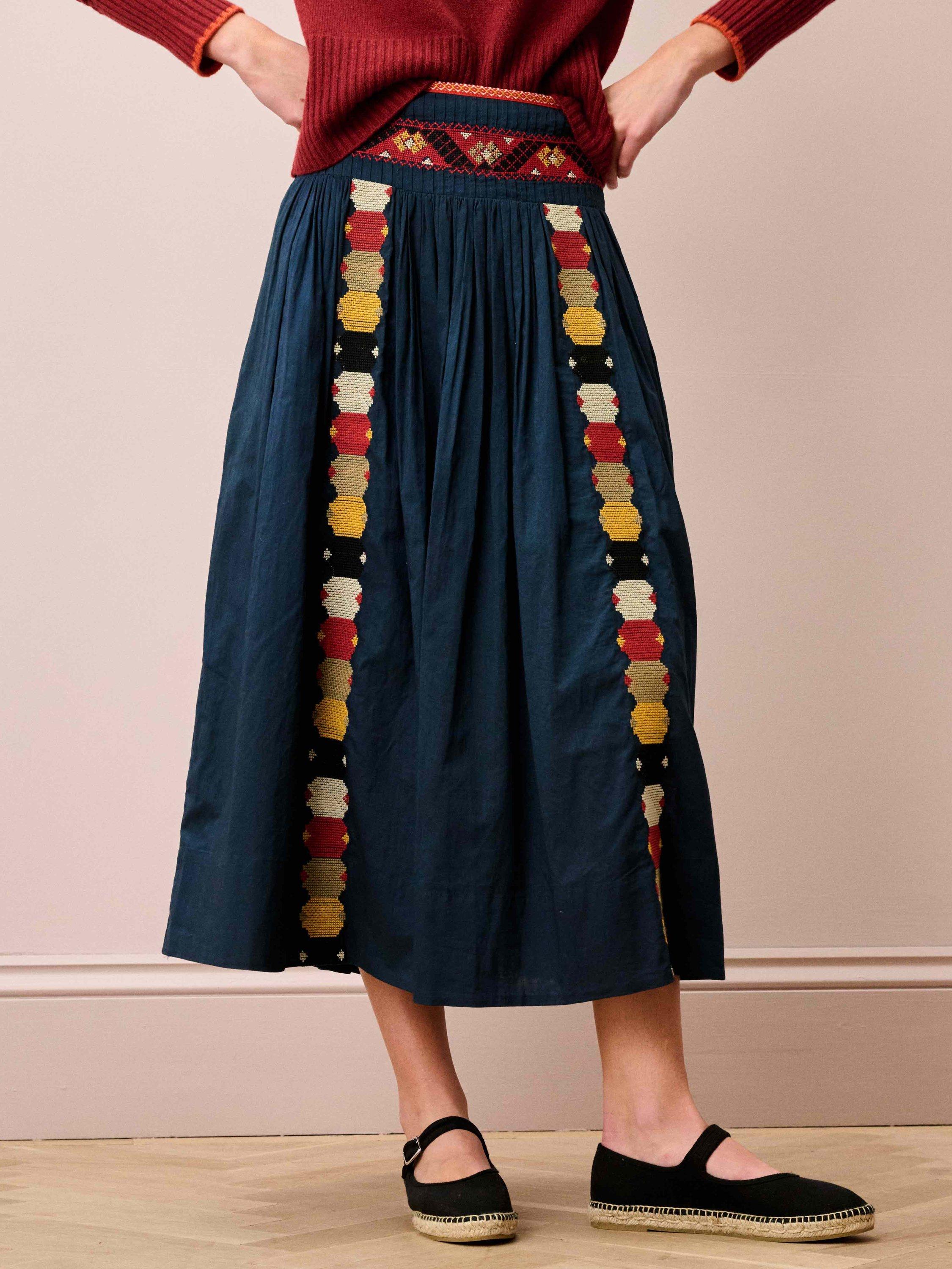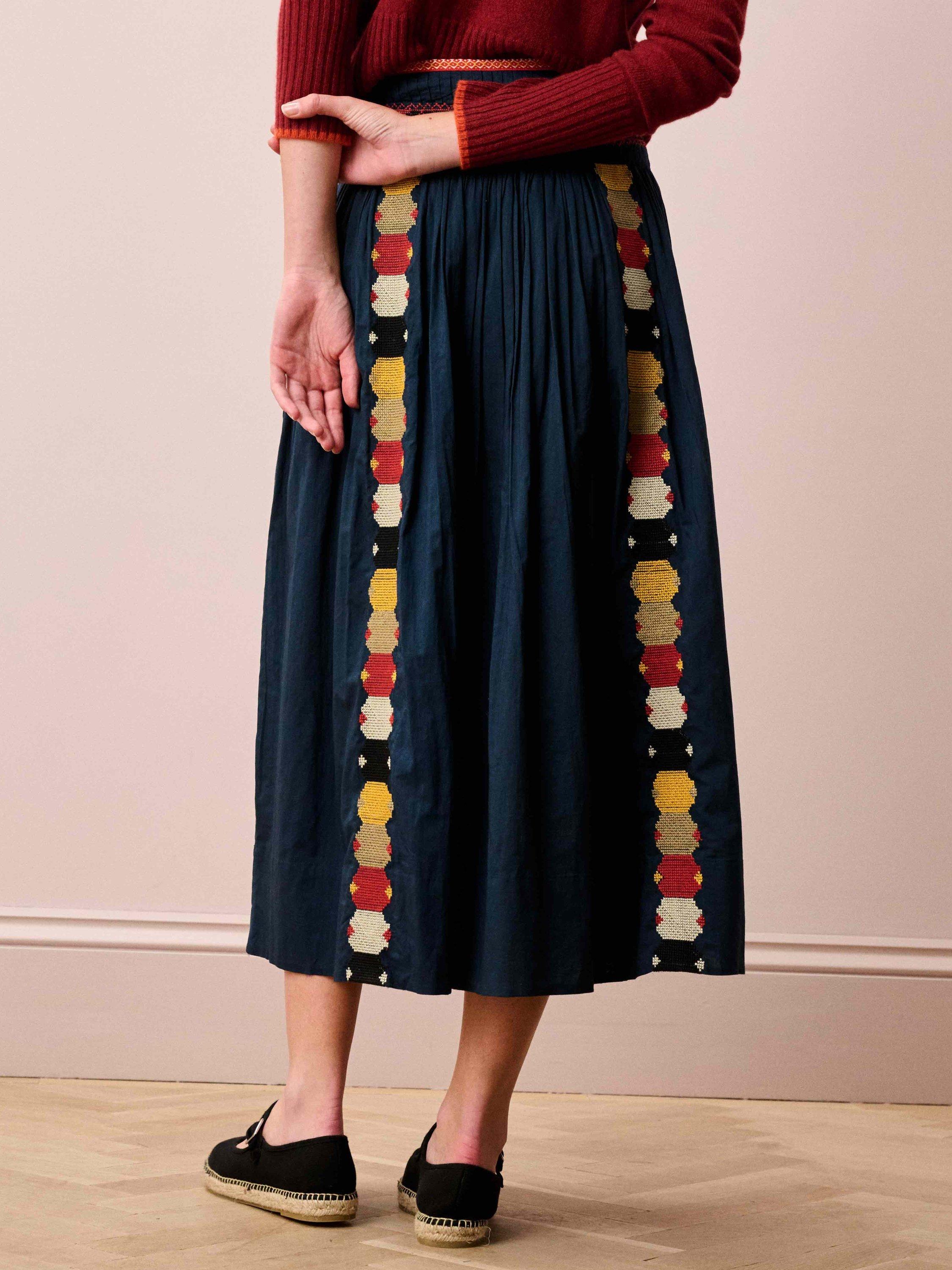BroraFolk Embroidered Maxi Skirt, Indigo