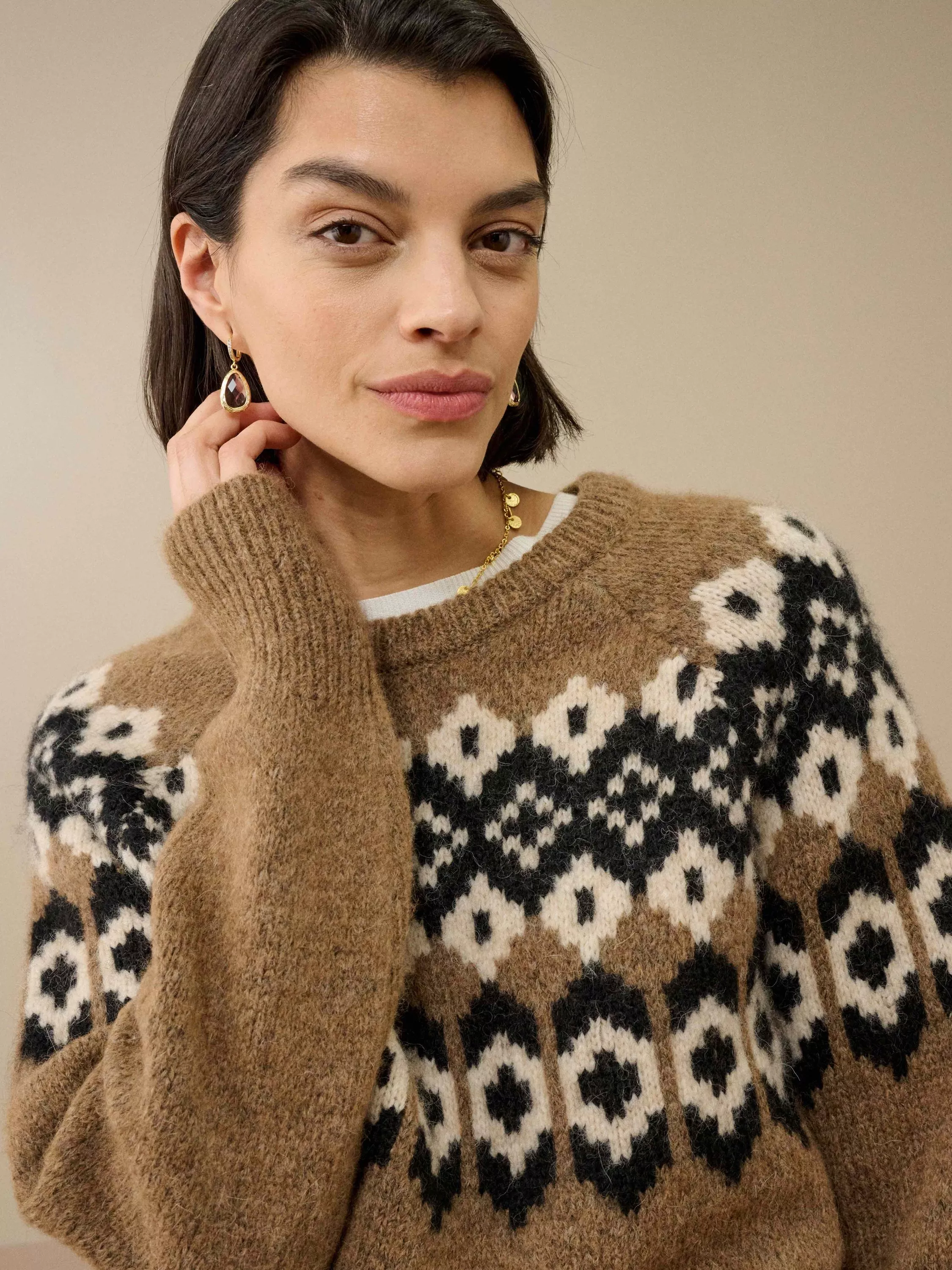 Fabricated using an alpaca wool blend, this thick round neck jumper from Brora gives a traditional feel to your look with its fair isle pattern.