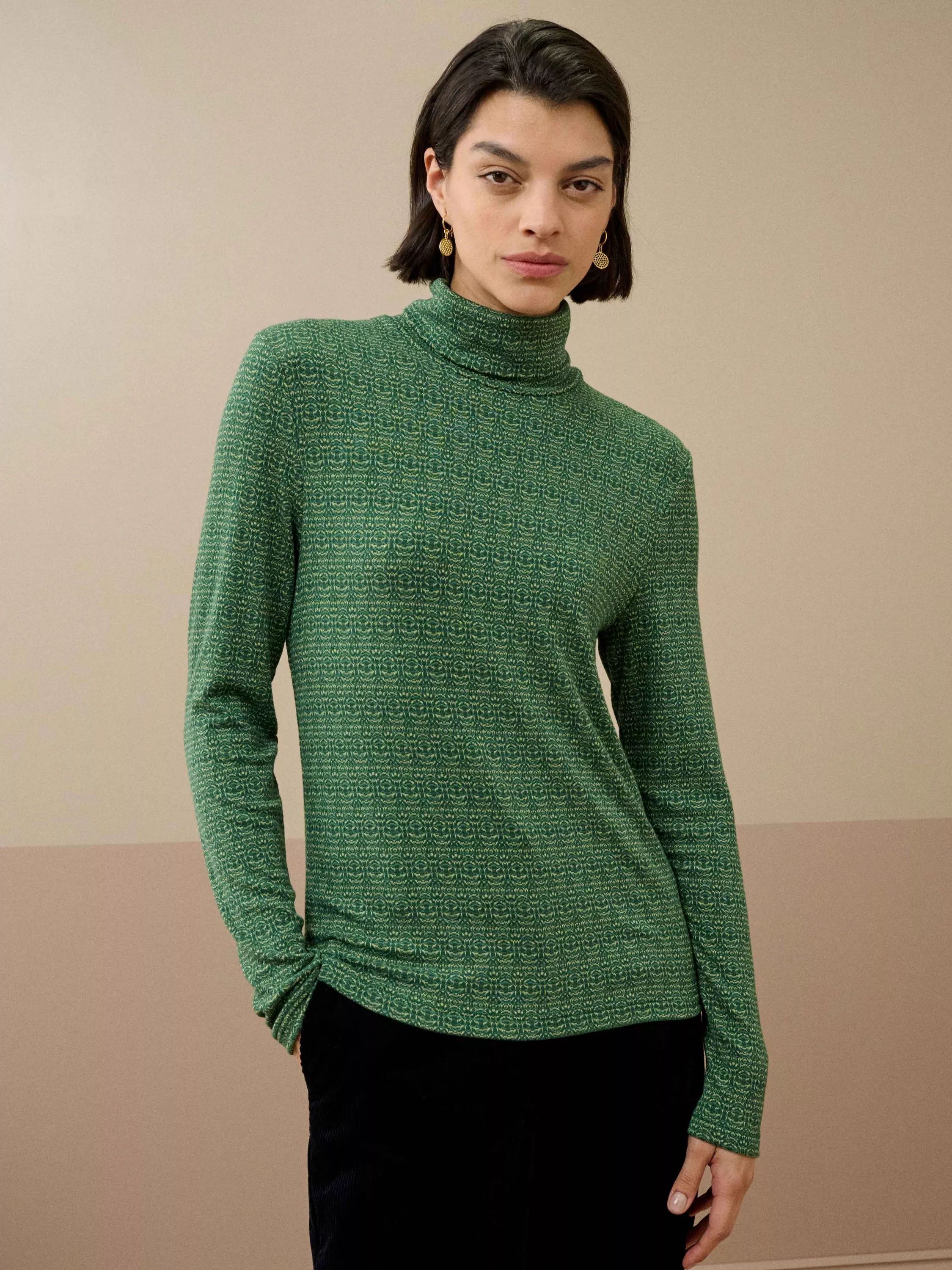 An all-year essential, this jersey top by Brora is fashioned with a cool, geometric pattern to give your look added edge. Framed with a turtleneck neckline and long sleeves, it is made with light yet robust blended fabric for longevity of wear.