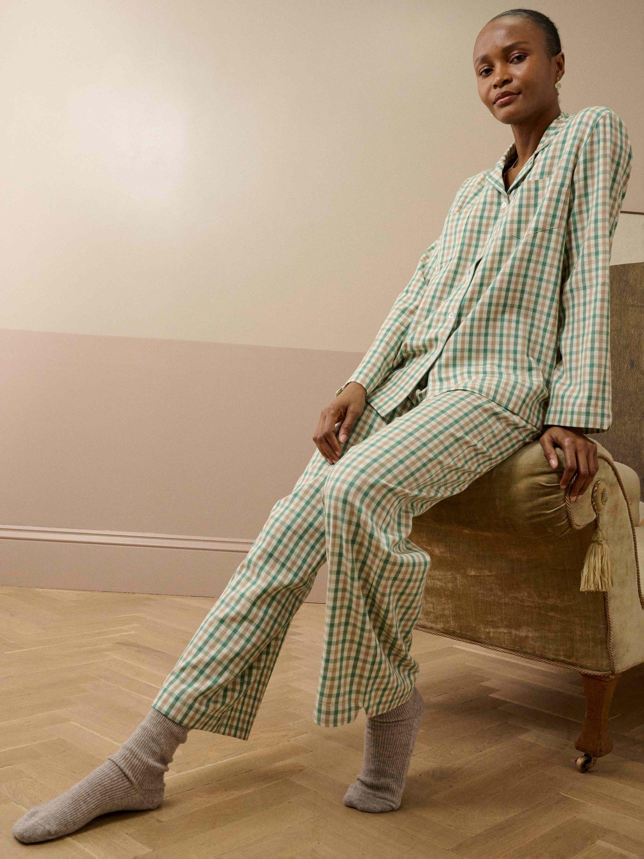These dreamy pyjamas, made from pure, butter-soft cotton, have been exquisitely finished with a single patch pocket to the front, a drawstring waist, and luxurious silk trims.
