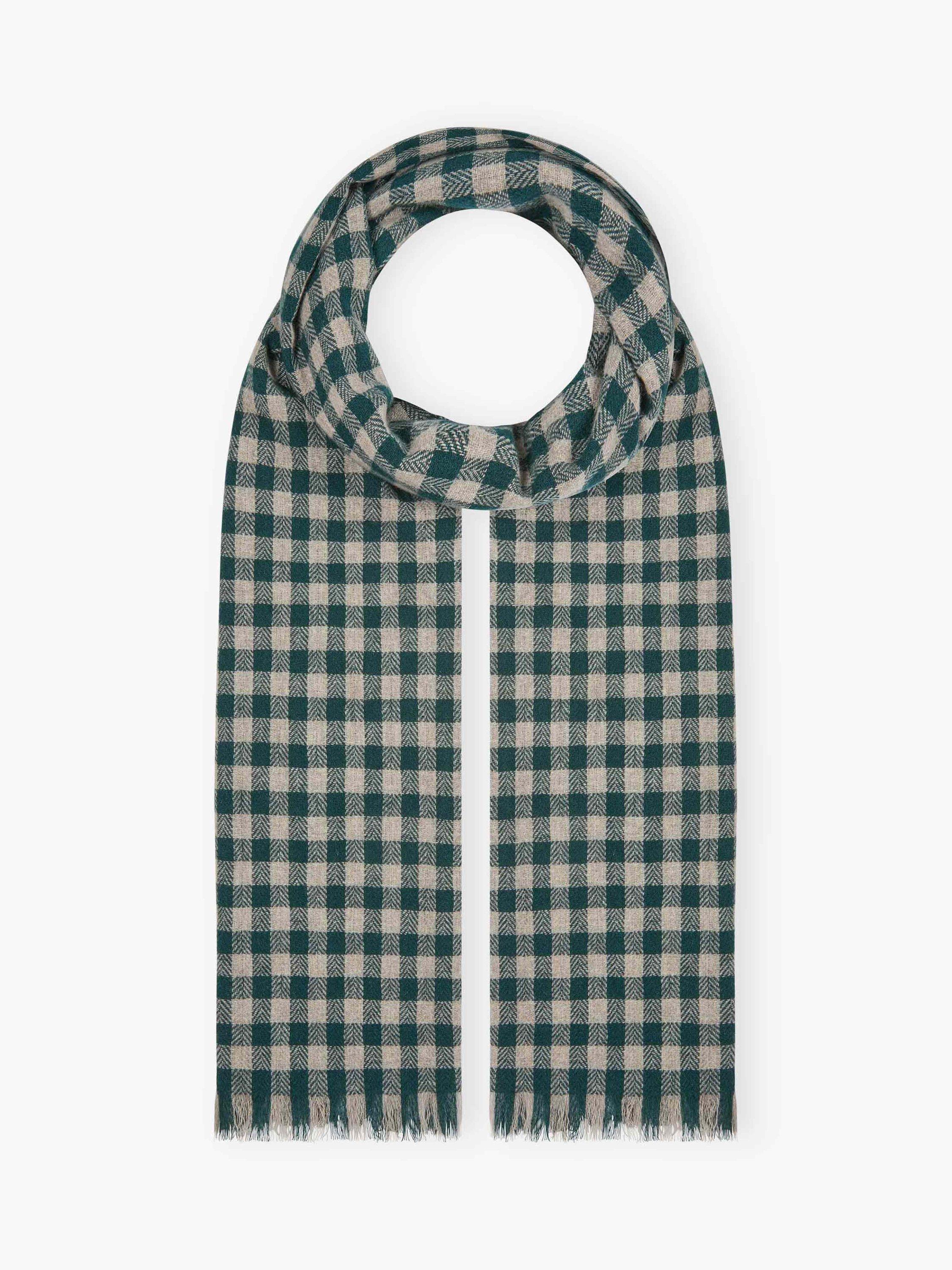 Envelop yourself in this luxurious gingham check stole with fringed edges, woven in a traditional Scottish mill using blissfully soft cashmere and cleverly combining contrasting, on-trend shades from a seasonal palette.