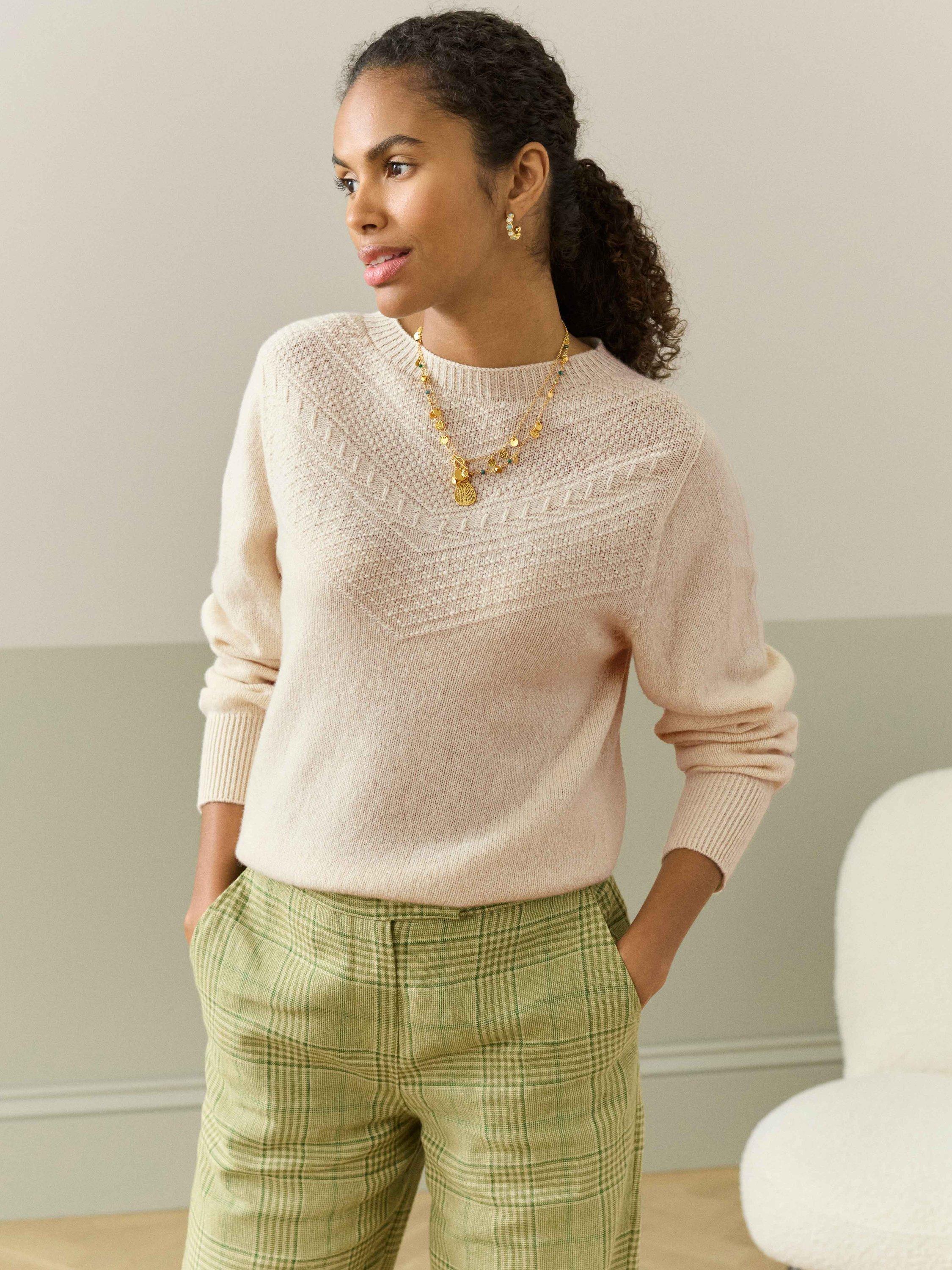 Knitted using only the finest yarn, spun and dyed in Scotland, this supersoft lambswool jumper with its chic, heritage-inspired Guernsey patterning across its front and back yoke is the new addition that can't be missed!