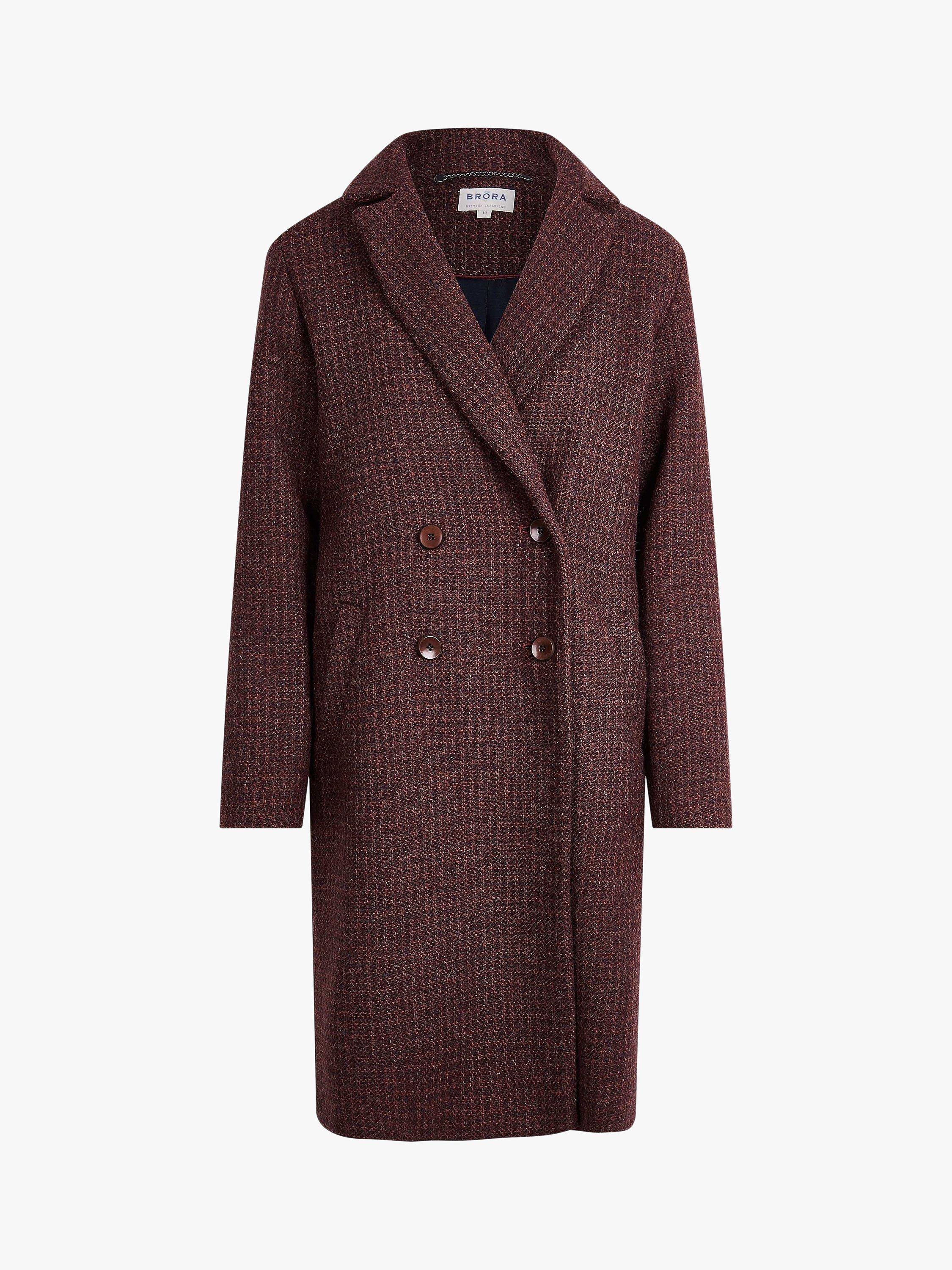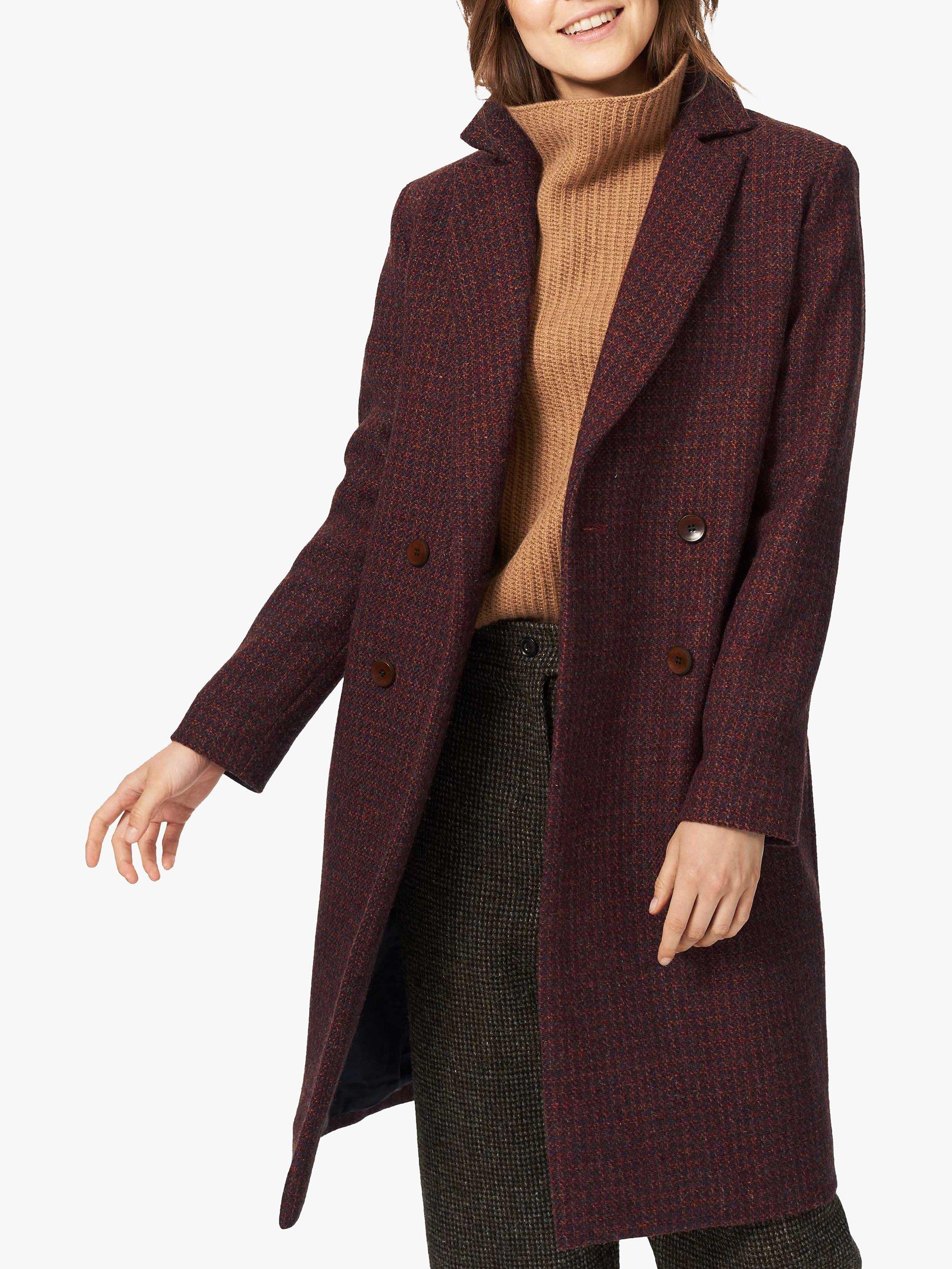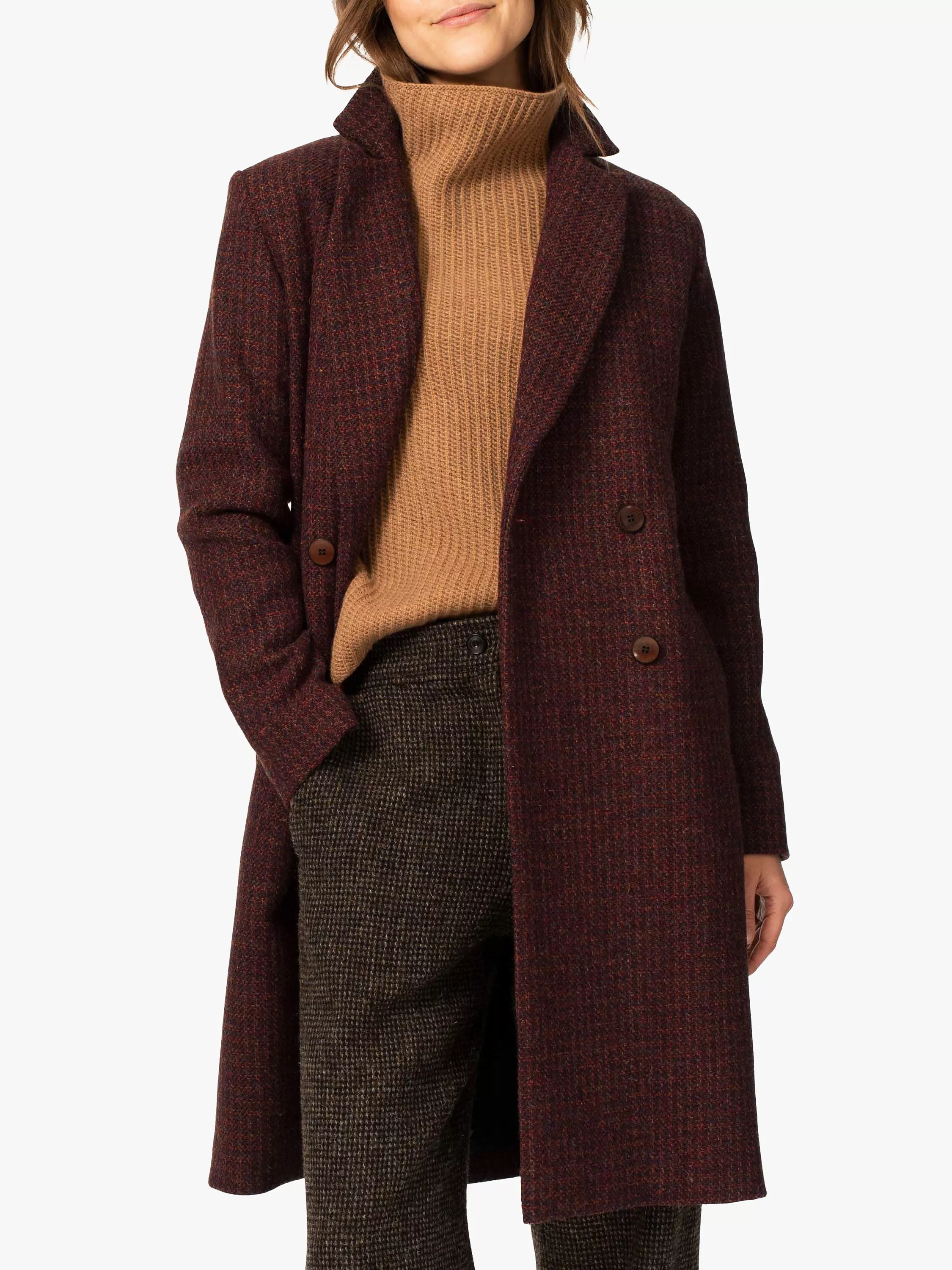Made from tweed wool, this classic coat from Brora is lined with a cotton-blend fabric for lasting softness and comfort, in a double-breasted shape with a square of buttons to the front that make it an easy seasonal staple.