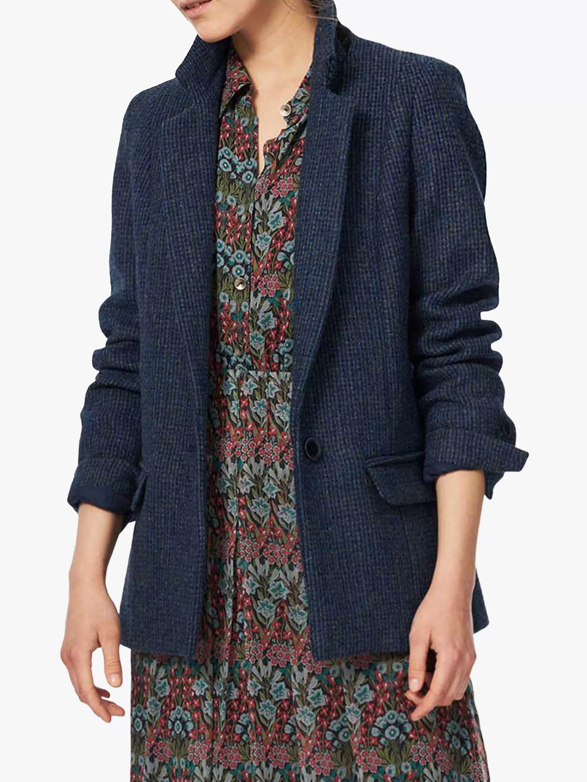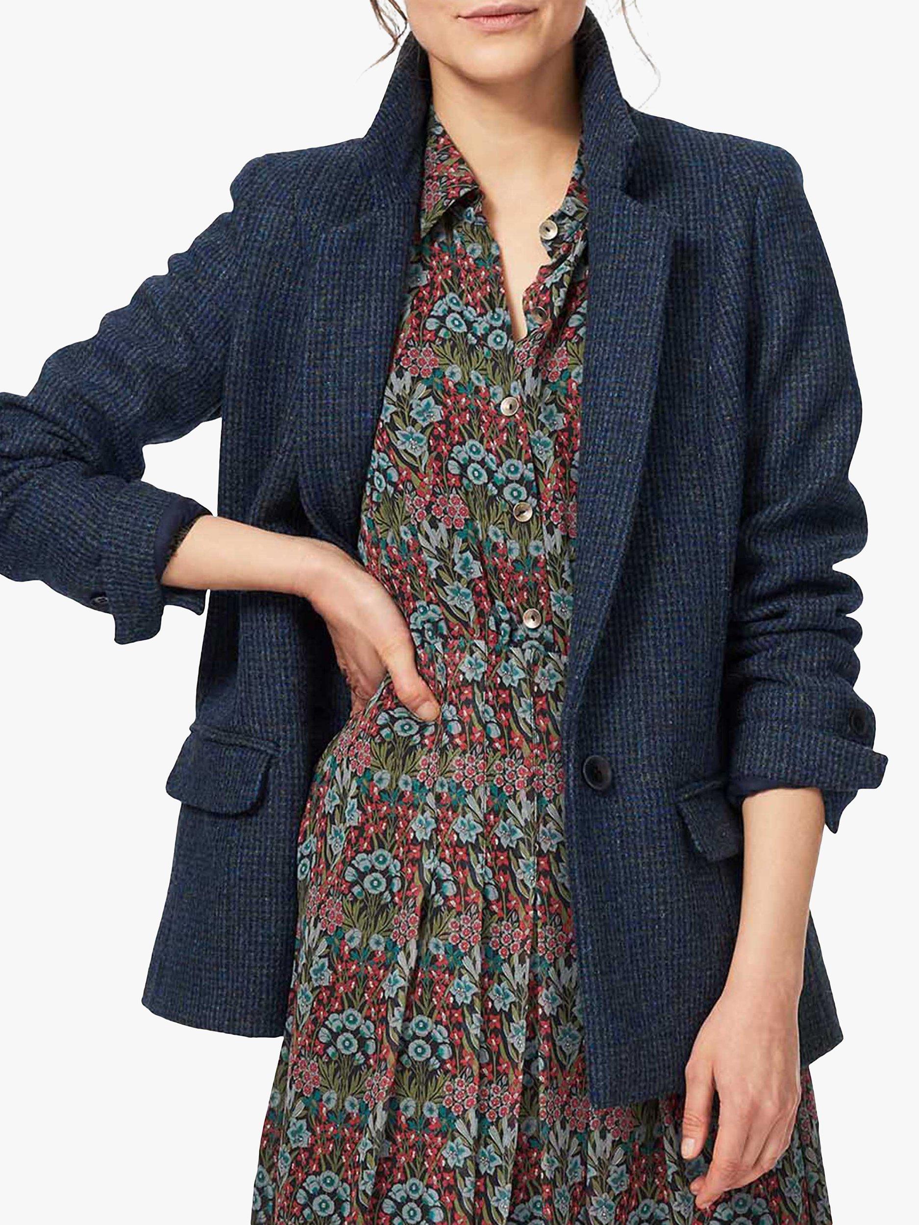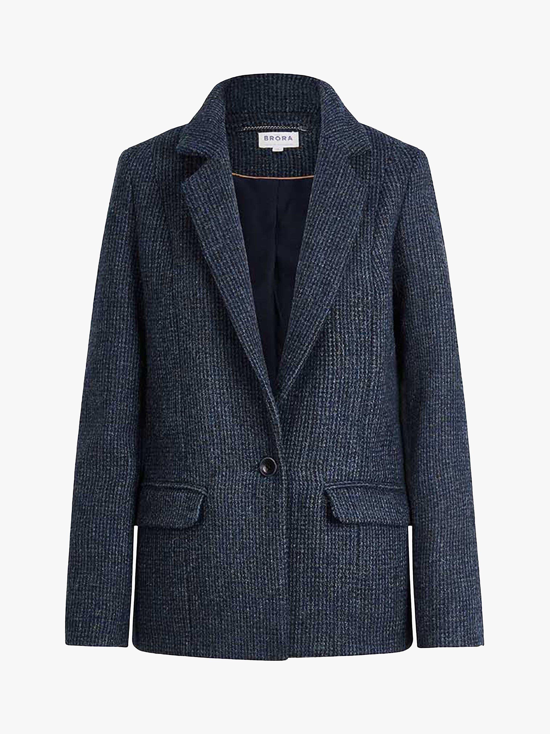 Made in the UK from traditional Harris tweed fabric, this jacket from Brora is a modern take on the classic design. Fashioned to a longline silhouette and framed with a classic collar neckline and button fastening, this piece can be worn with turned-up cuffs and a stand-up collar for fresh, chic style.