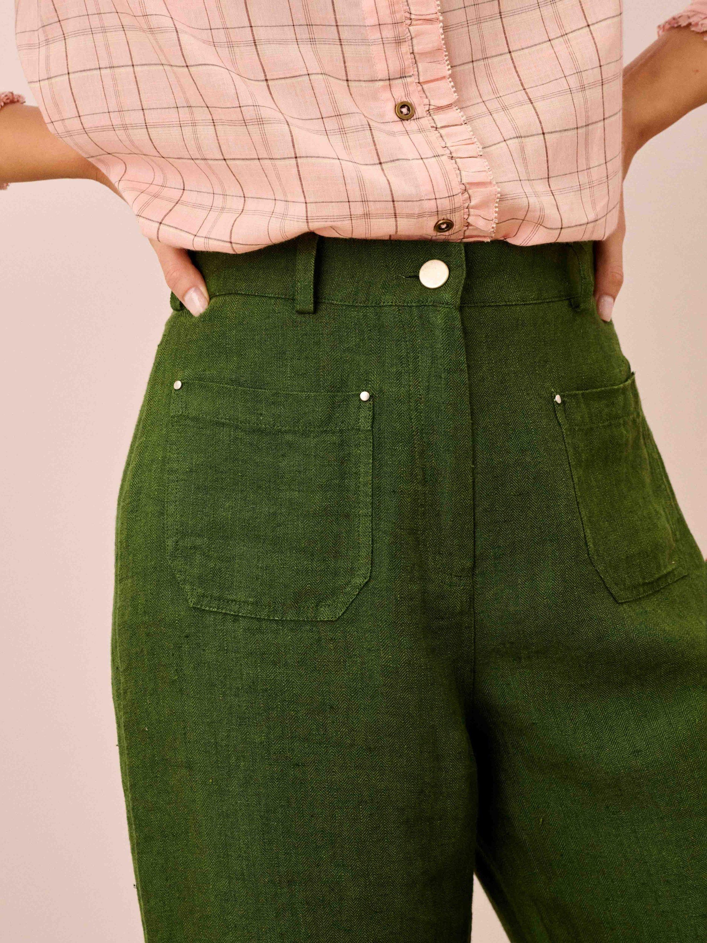 These flattering, high-waisted trousers are a cut above the rest, featuring an all-over herringbone design and made from linen, expertly grown, spun, dyed and woven in Europe.