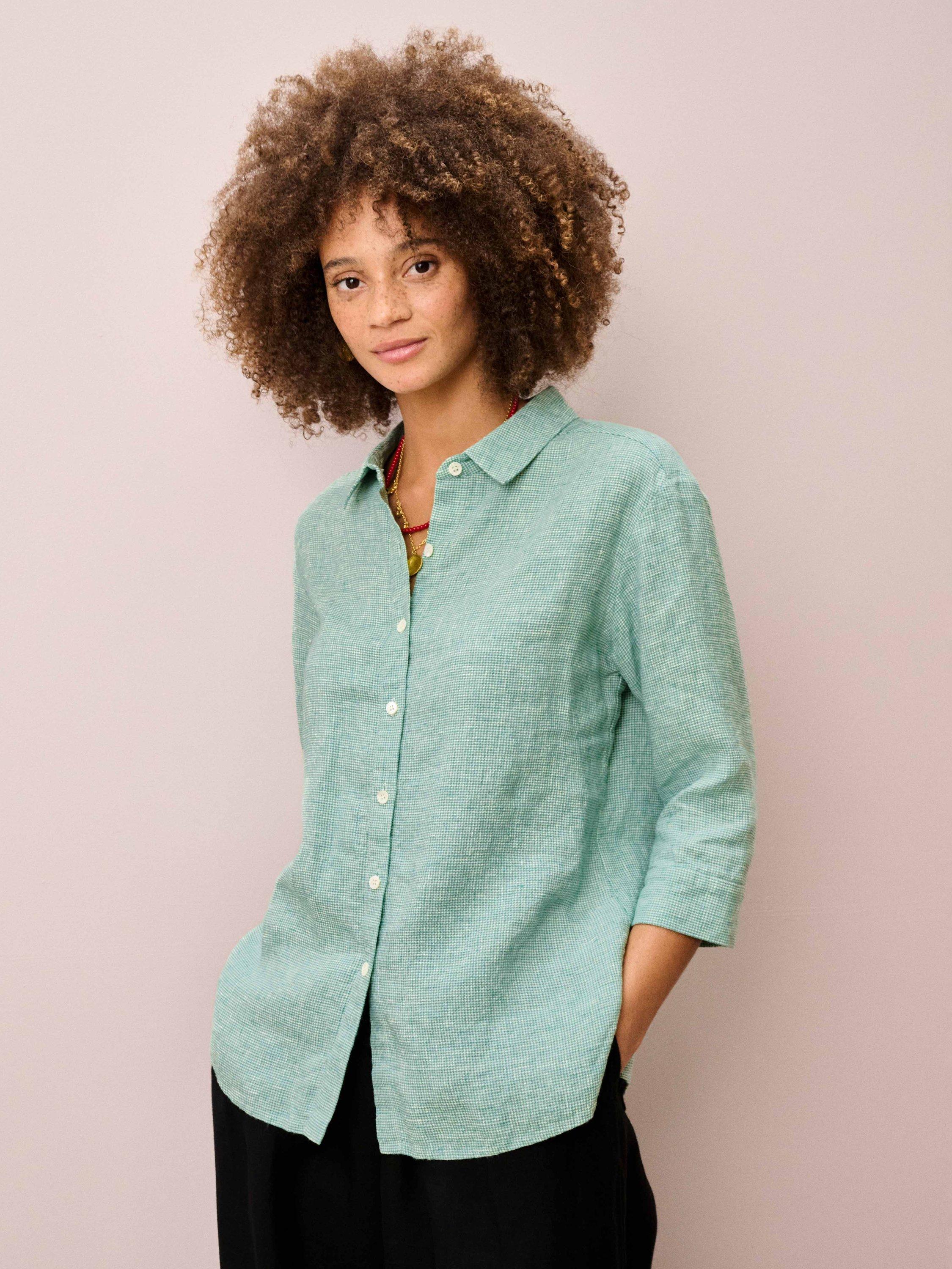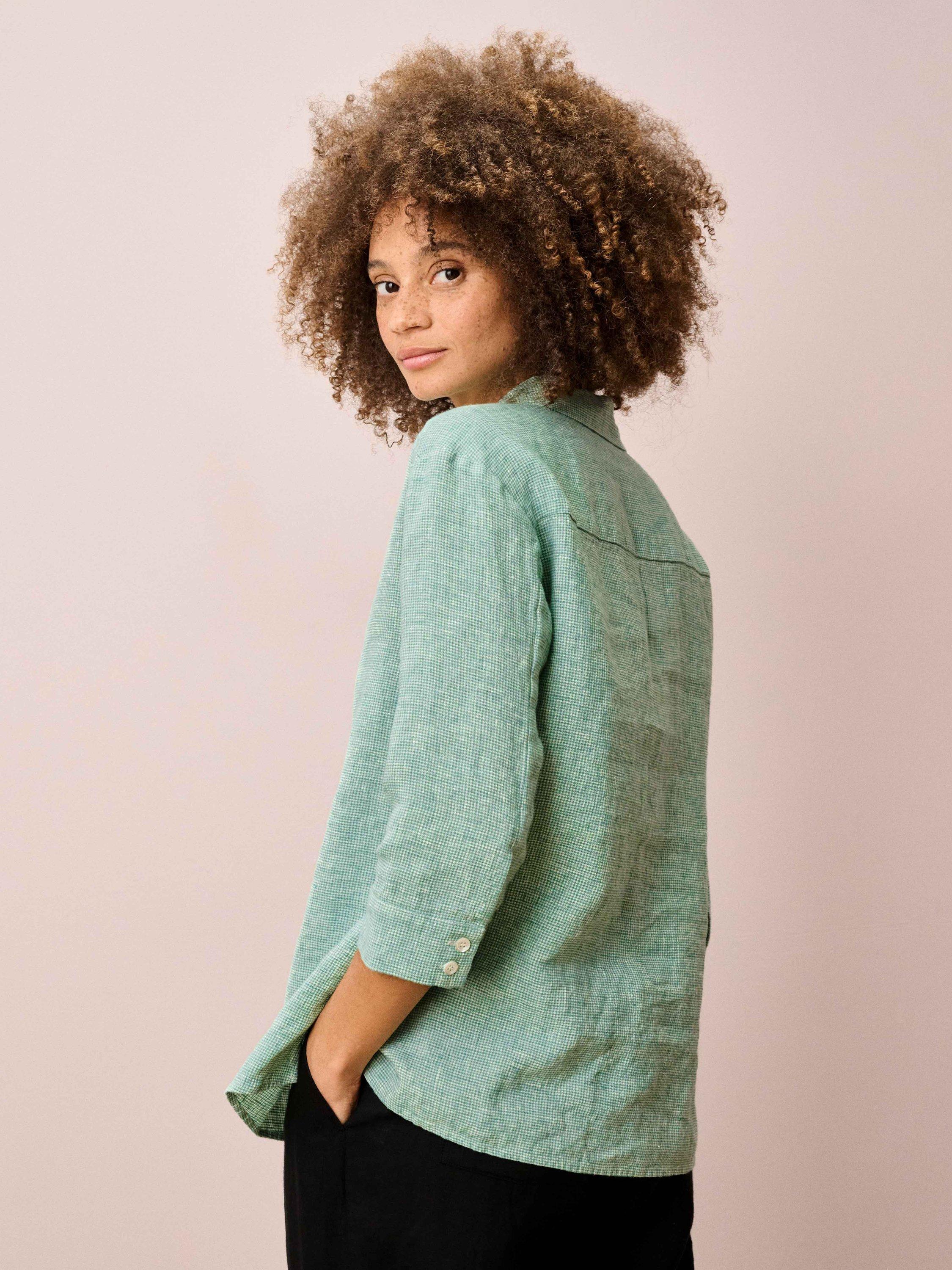 A bestseller year after year due to its beautiful weave and classic, timeless shape, this houndstooth-check shirt has been entirely grown, spun, dyed, finely woven and stitched in Europe using only the very finest linen.