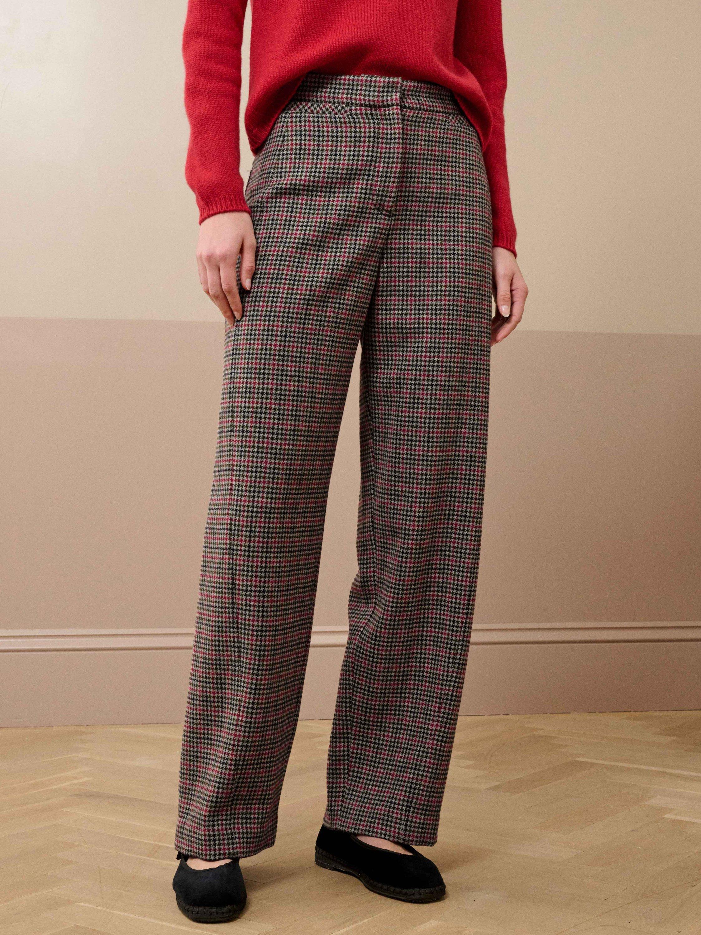 These gorgeous trousers deliver a very Brora heritage twist on the barrel-leg trend, made from a houndstooth wool cloth, exclusively woven in Yorkshire for Brora, and finished with a back V-notch, pockets and concealed placket.